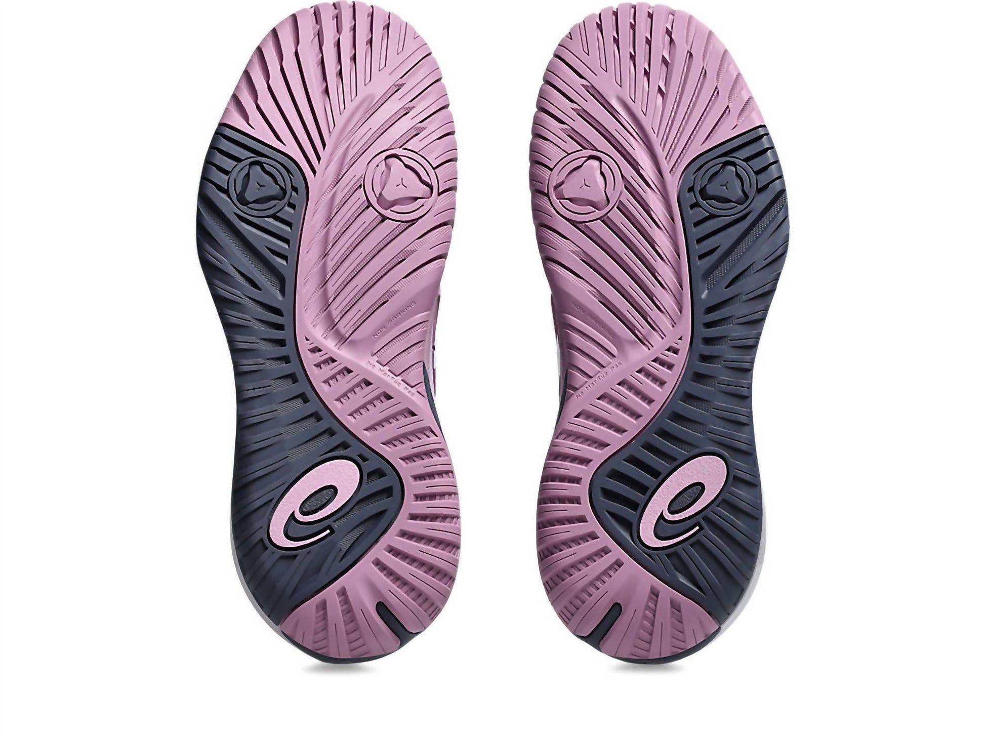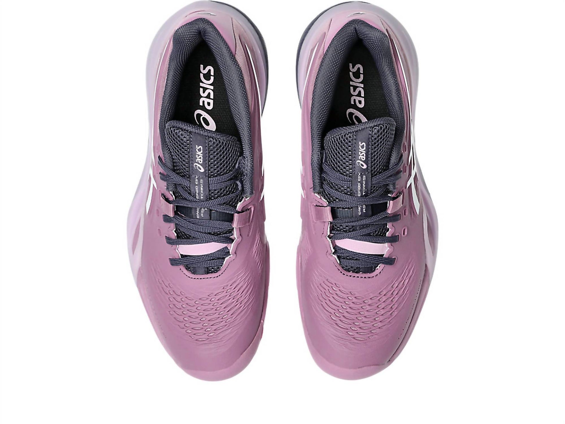 Stylish, comfortable and supportive. These athletic sneakers check all of the boxes. The GEL-RESOLUTION X tennis shoe offers advanced stability and cushioning for players who like to control the game from the baseline. DYNALACING™ technology ensures a secure, locked-in fit during quick transitions, while the two-piece midsole enhances stability on impact. DYNAWALL™ extends into the heel for extra support during lateral movements, and a higher medial collar helps protect against ankle twists during abrupt directional changes.