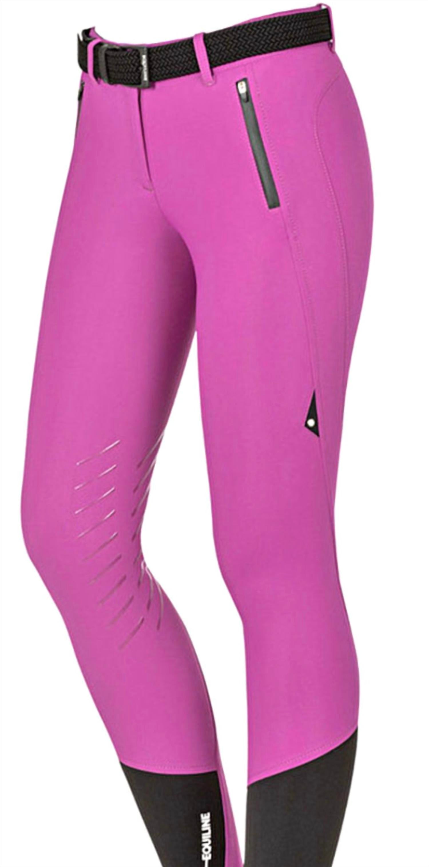 Made with the B-MOVE 4 seasons fabric, the knee grip breeches are the perfect breeches for every season. The popular tech knee grip system offers all-day comfort for the rider. These stylish breeches feature a black trim along front pockets and a rubber belt loop on backside.