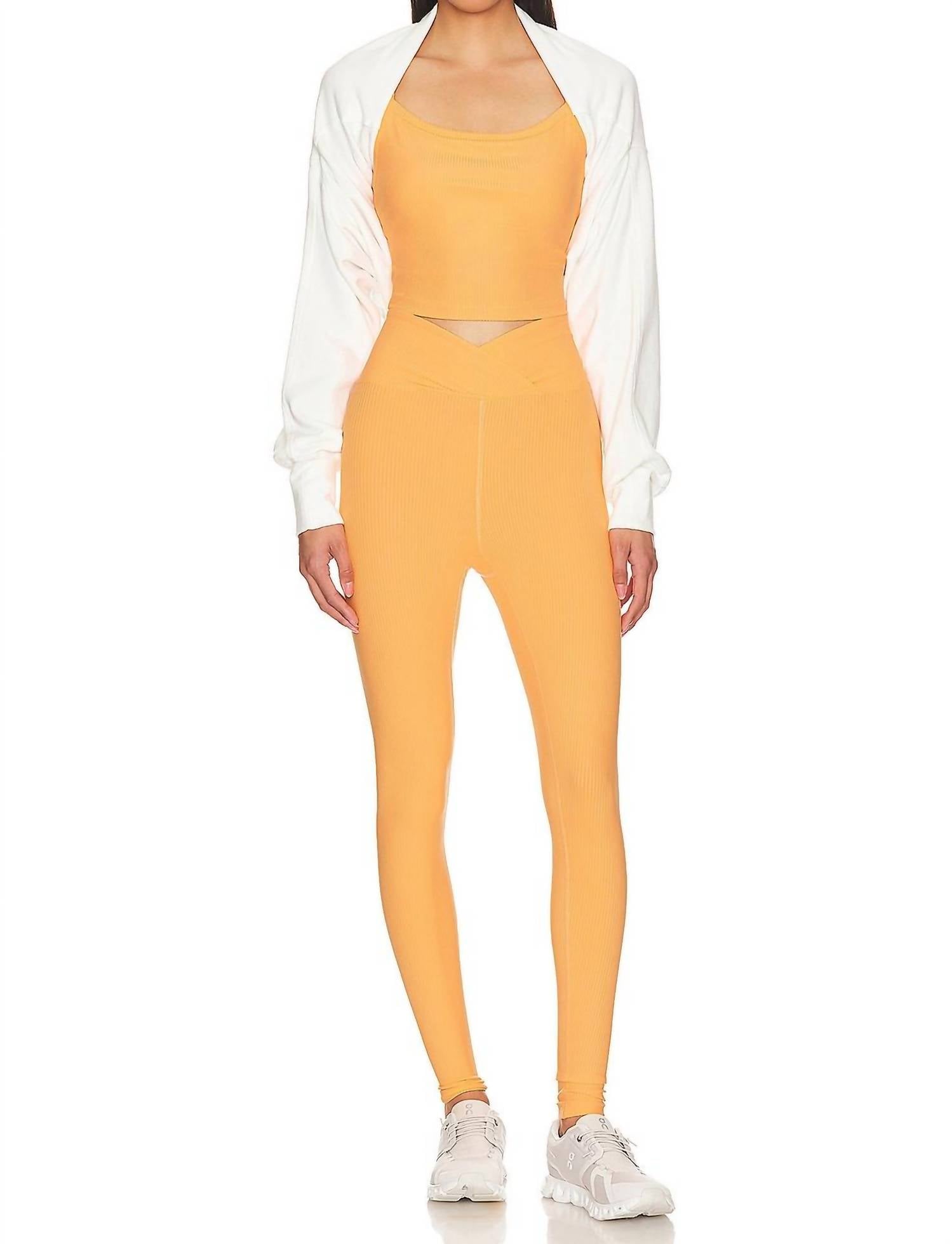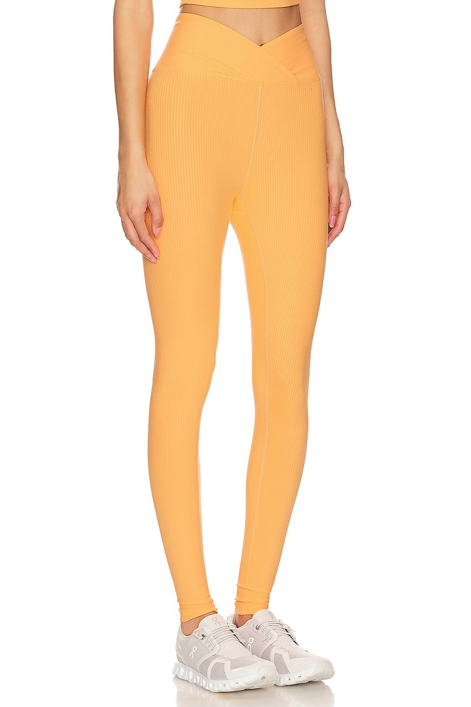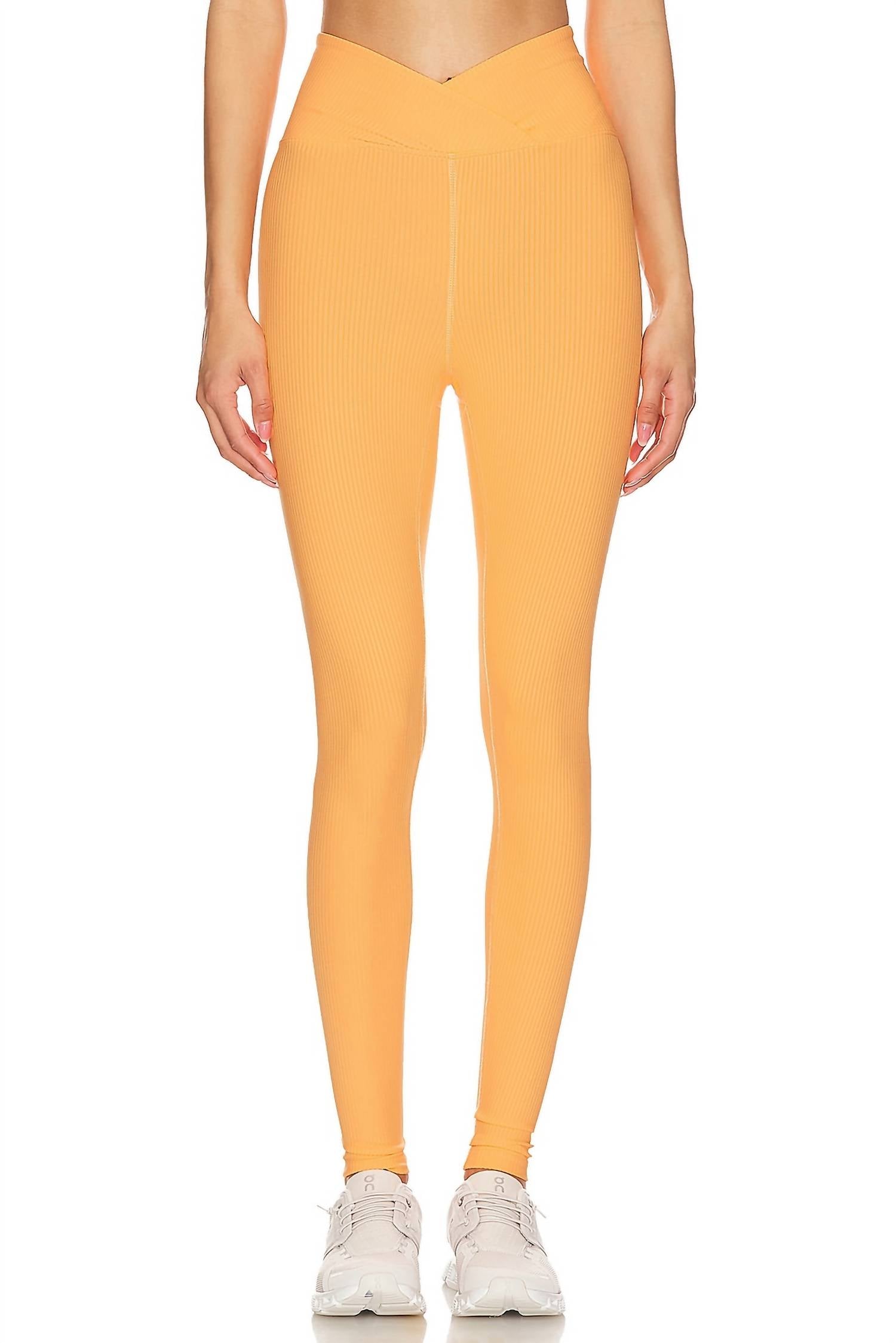 Experience the perfect blend of style and comfort with the Ribbed Veronica Legging by YEAR OF OURS, crafted in a stunning Apricot Crush. These high-rise leggings feature a skinny leg style and a pull-on closure, ensuring a sleek and seamless look. With a composition of 85% nylon and 15% spandex, these leggings offer just the right amount of stretch. Made in the USA, they boast a fashionable surplice front and ribbed fabric, suitable for everyday wear. Care instructions: machine wash cold and lay flat to dry, with an inseam of 26.5 inches.