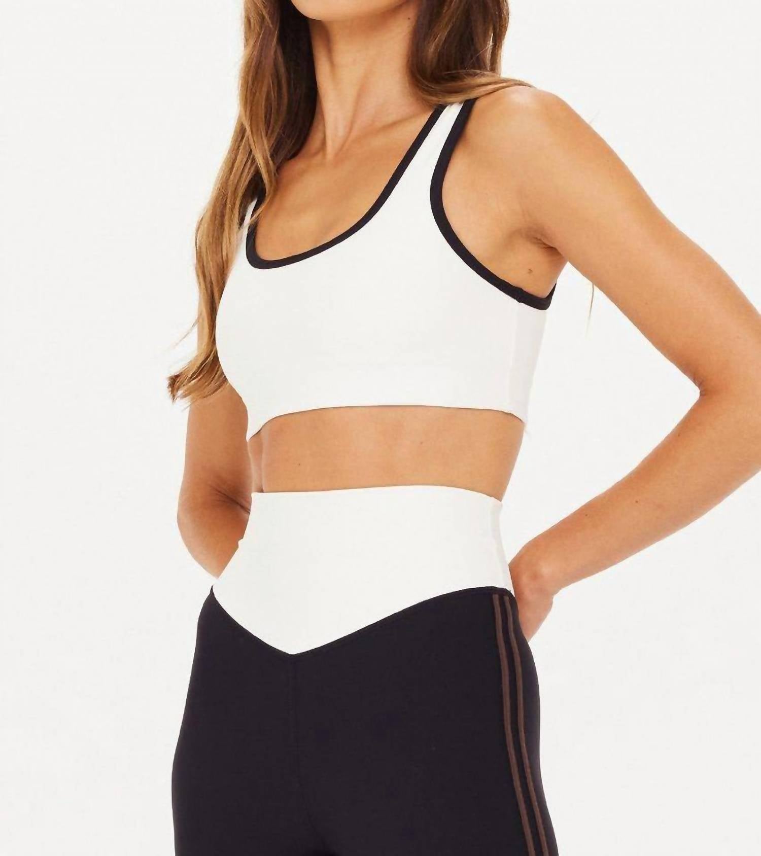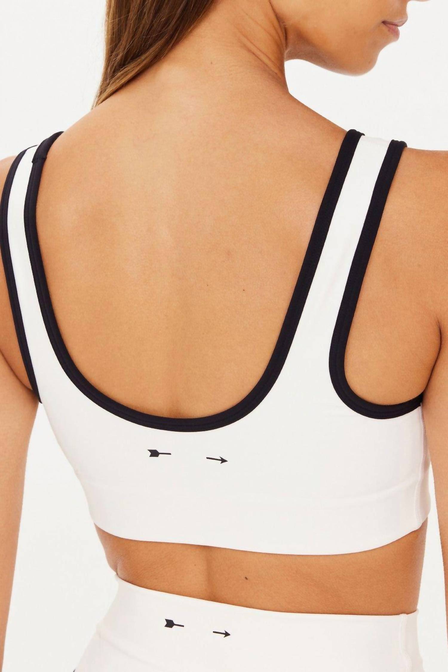 A sports bra that has it all - style, function and support. Introducing the Alcaraz Harley Bra by THE UPSIDE, the ultimate athleisure essential for your fitness wardrobe. This cream sports bra features a scoop front and back neckline, providing mid coverage with a soft elasticated underbust complemented by removable cups. Crafted from 75% recycled Polyamide and 25% Elastane, it offers a breathable, moisture-wicking, quick-drying experience with a luxurious peached and brushed handfeel. Care: Cold machine wash inside out with similar colors; avoid soaking, bleaching, and tumble drying for best results.