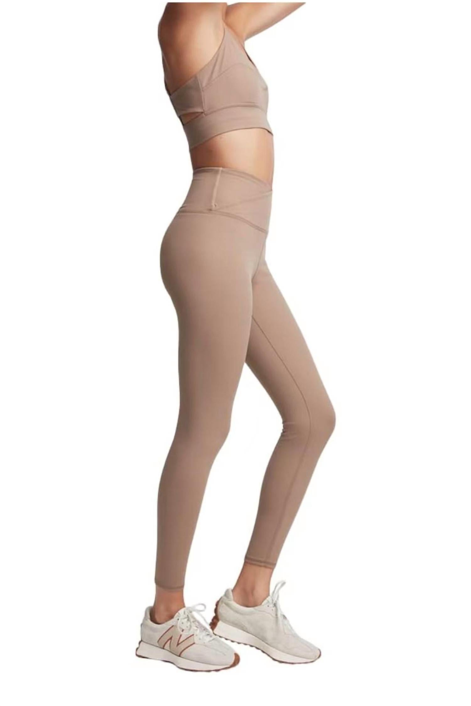 Leggings you can dress up or down for any occasion. Discover the Rue Crossover Leggings by BANDIER, a staple for any activewear collection in a chic Nutmeg hue. Crafted with a high-rise crossover V-front panel, these leggings feature a slim fit and skinny leg design. Made from a moisture-wicking blend of 76% Nylon and 24% Lycra, they are ideal for intense workouts. Closure: Pull-on style. Care: Machine wash cold and tumble dry. These leggings boast a 29" inseam and are a perfect choice for fitness and workout routines.