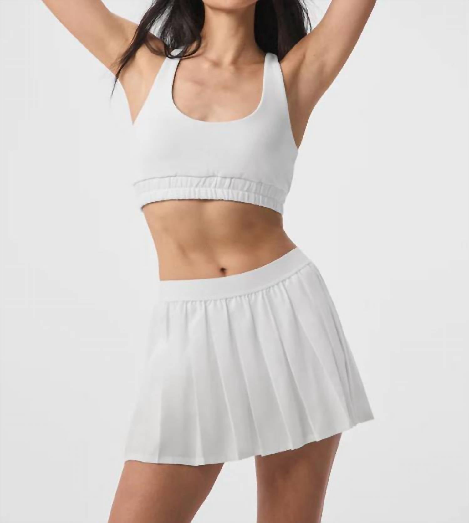 Show just the right amount of leg in this fit flattering mini. Discover the Varsity Tennis Skirt by ALO YOGA, designed for an active lifestyle with a sleek, solid white finish. This mini length skirt, crafted from 92% polyester and 8% spandex, features an elastic pull-on waistband for ultimate comfort. With a practical attached bike short lining and slip pockets, it's made in Vietnam for quality you can trust. Care for this versatile piece is simple with machine wash instructions, making it a perfect choice for effortless style and functionality.