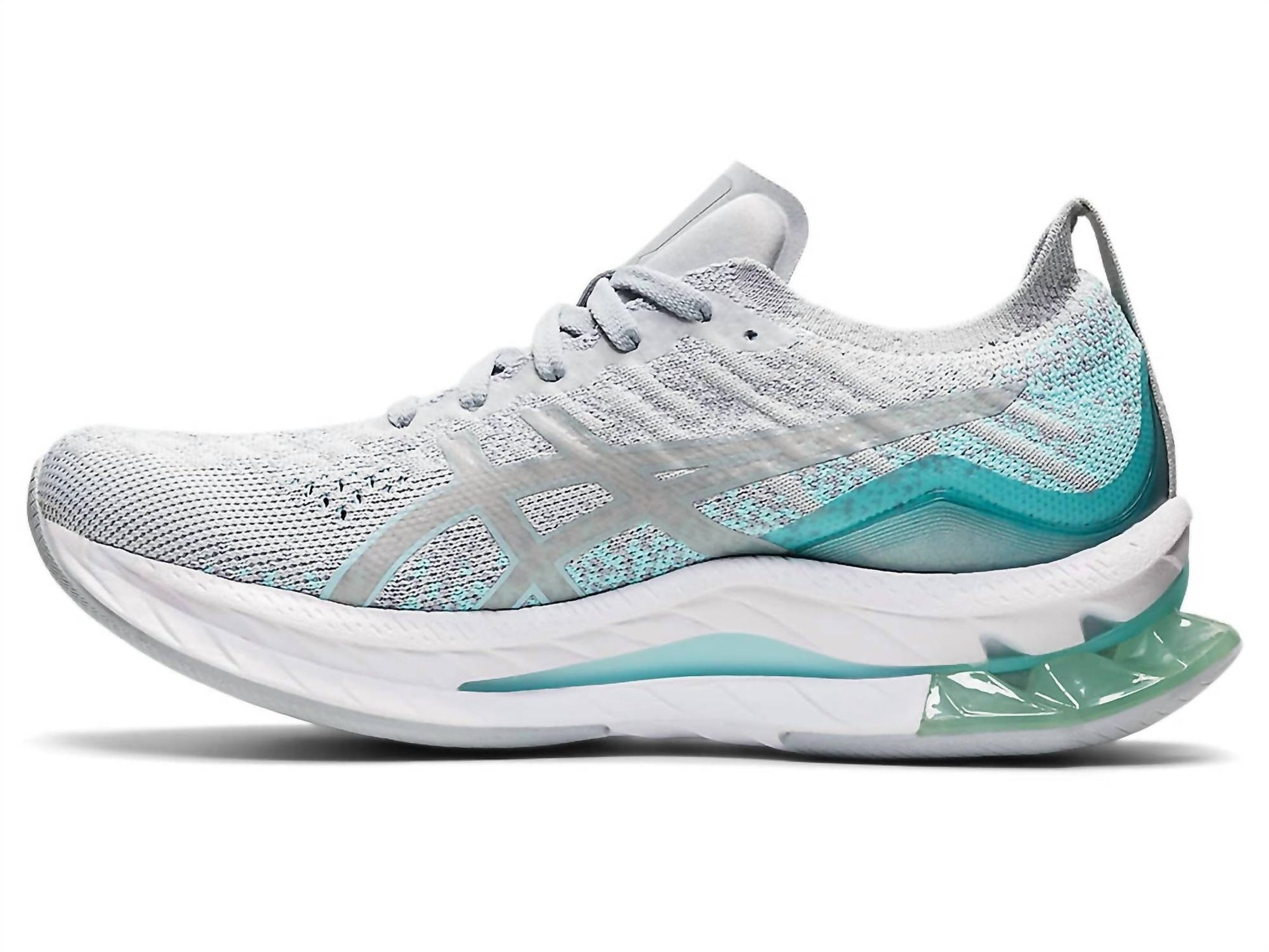When fashion meets function. Elevate your running experience with the ASICS Women's Gel Kinsei Blast Sneakers in Glacier Grey/Piedmont Grey. These shoes combine the heritage of Japanese craftsmanship with modern running technology, featuring a PEBAX™ propulsion plate and FF BLAST™ PLUS midsole cushioning for an energetic and smooth stride. The innovative engineered knit upper, inspired by samurai armor, offers flexibility and support, while the shock-absorbent GEL™ technology ensures comfort over any distance. Ideal for the athleisure trend this spring, these nylon athletic shoes provide a secure medium fit and a flat heel under 1 inch, perfect for both style and performance.
