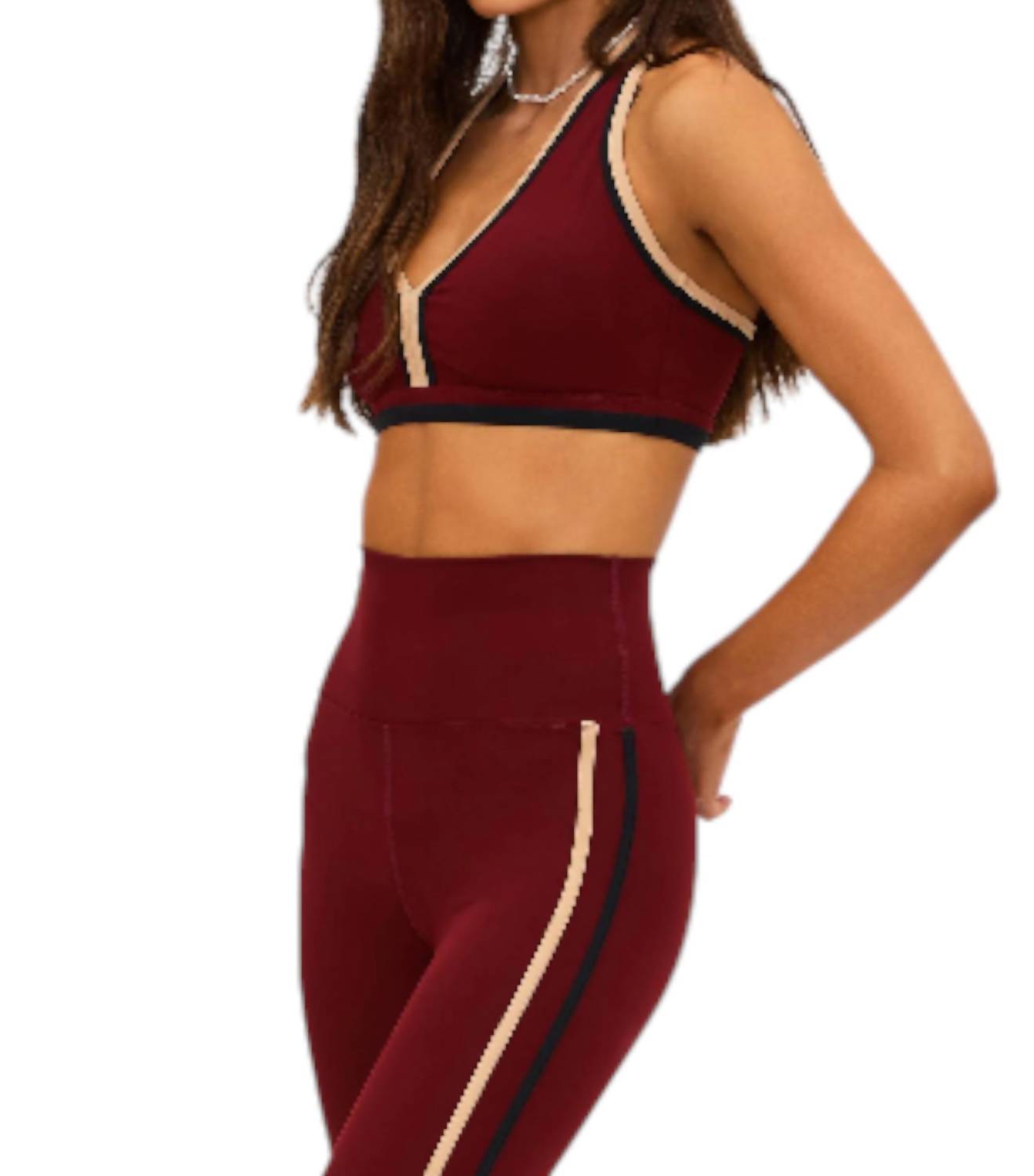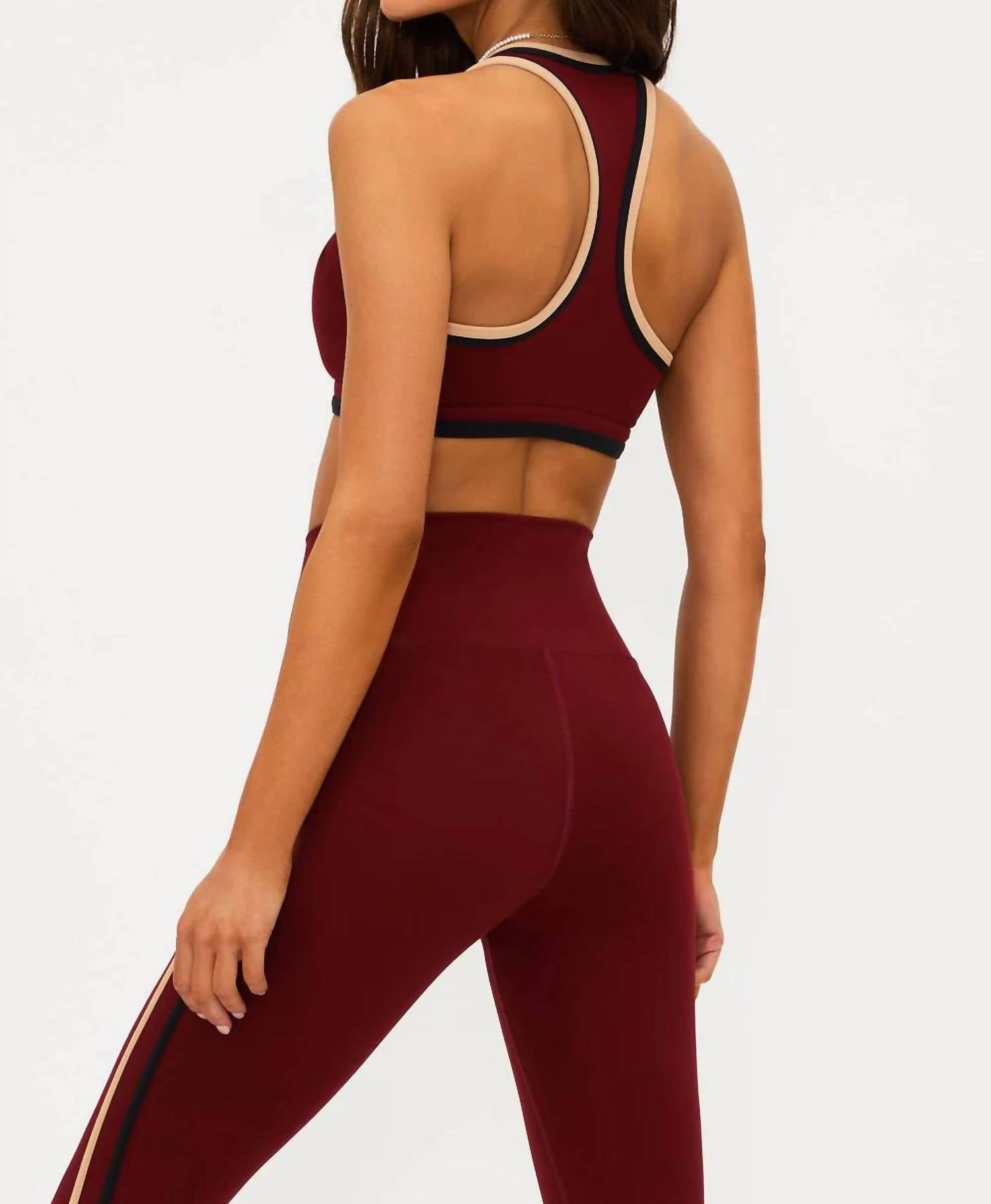 Introducing the Ida Athletic Top by Beach Riot, a solid maroon merlot sports bra perfect for your workout wardrobe. Crafted from a durable nylon blend, this top is designed for women who appreciate both style and functionality. Care is simple with hand washing recommended and drying laid flat, ideal for maintaining its shape. Great for fitness sessions during spring or any athleisure occasion, it also makes a thoughtful Valentine's Day gift.