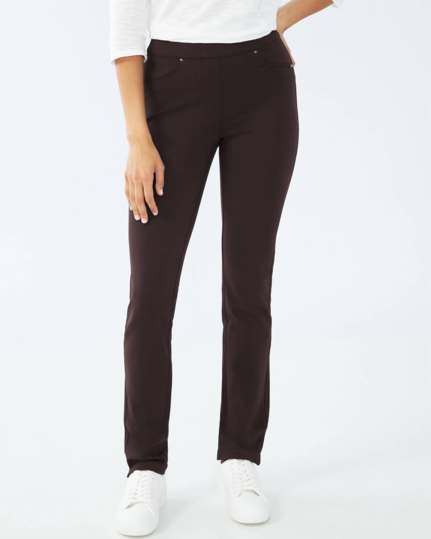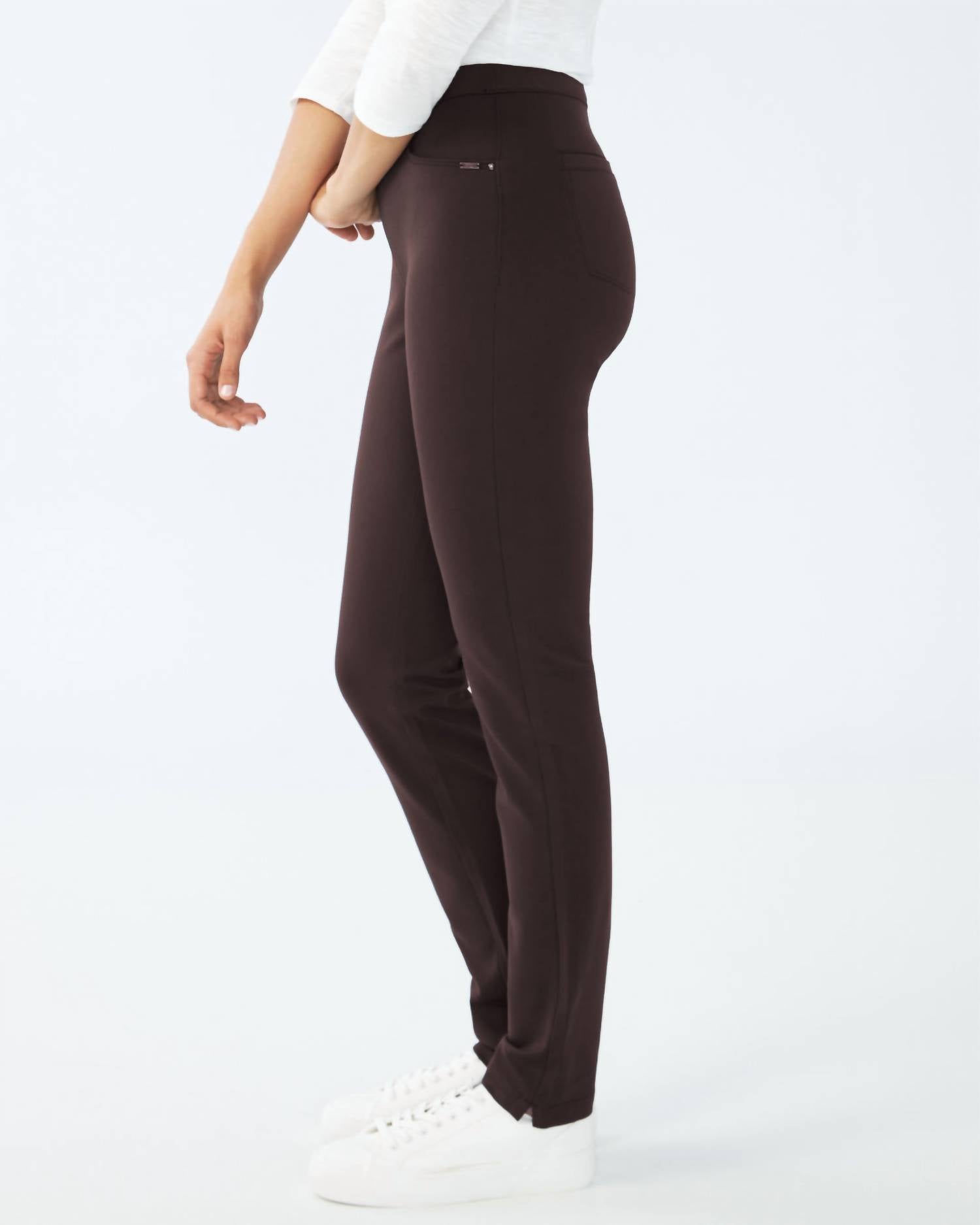 Leggings you can dress up or down for any occasion. Elevate your wardrobe with the Women's Pull On Slim Fit Legging by FDJ, a chic addition in a solid brown that embodies style and comfort. Featuring a mid-rise and a slim leg design, these leggings boast an elegant fit thanks to the exclusive Wonderwaist tummy-tuck panel. Crafted with a viscose blend of 69% Viscose, 27% Nylon, and 4% Elastane, they offer a flattering and comfortable pull-on closure. Ideal for minimalist trends, these leggings have a 32" inseam and are perfect for vacation or everyday wear. Care: Machine wash only.