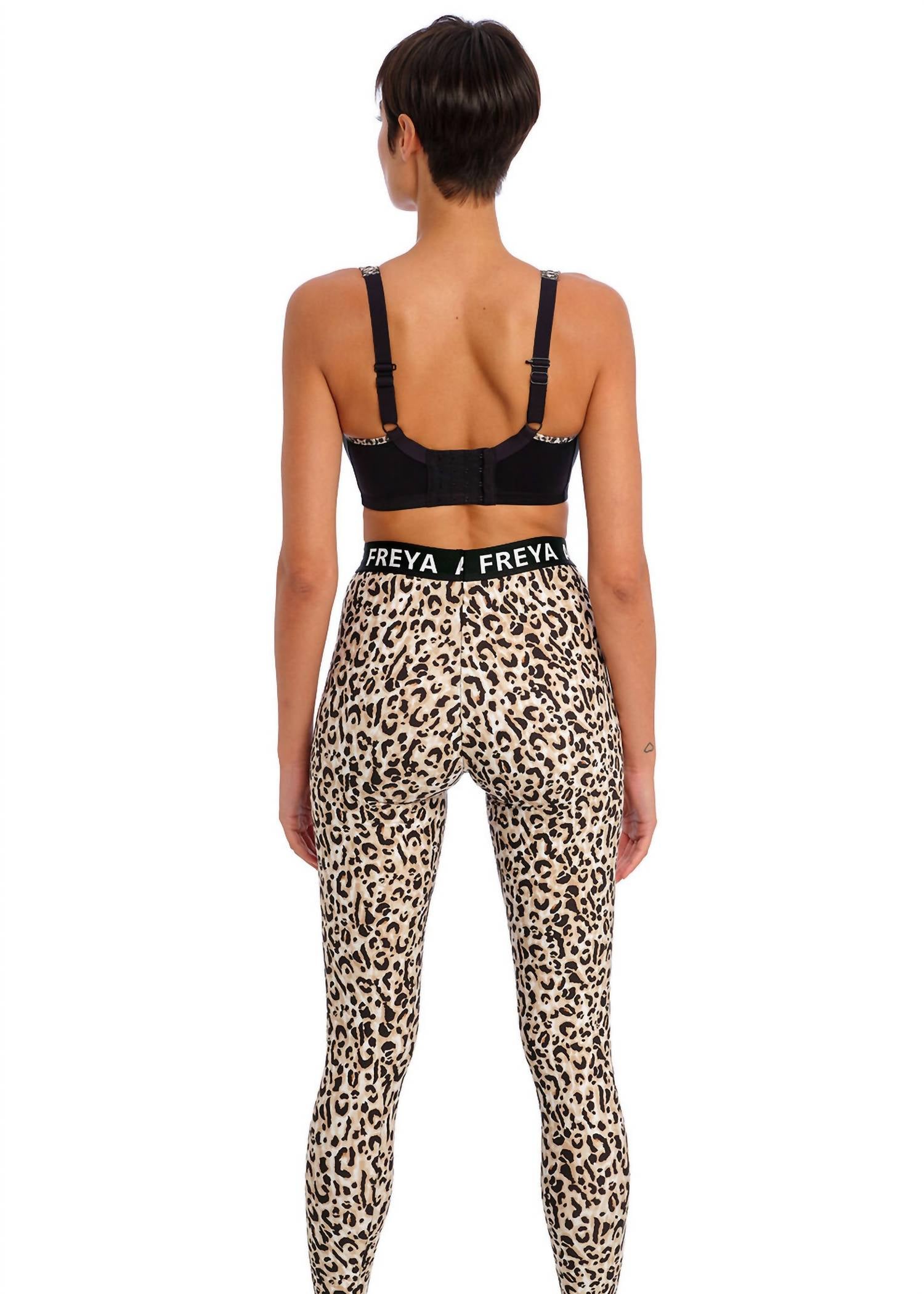 The most comfortable and supportive sports bra you'll own. Introducing Freya's Sonic Sport Moulded Sports Bra in Pure Leopard Black, designed for optimal performance and comfort. This stylish sports bra features breathable spacer fabric moulded cups, wide curvature wire, and built-up padded straps for enhanced support. Composition includes 62% Polyester, 32% Polyamide, and 6% Elastane. Closure is made easy with a slide J Hook fastening, offering a racerback option. Care instructions recommend hand wash only.