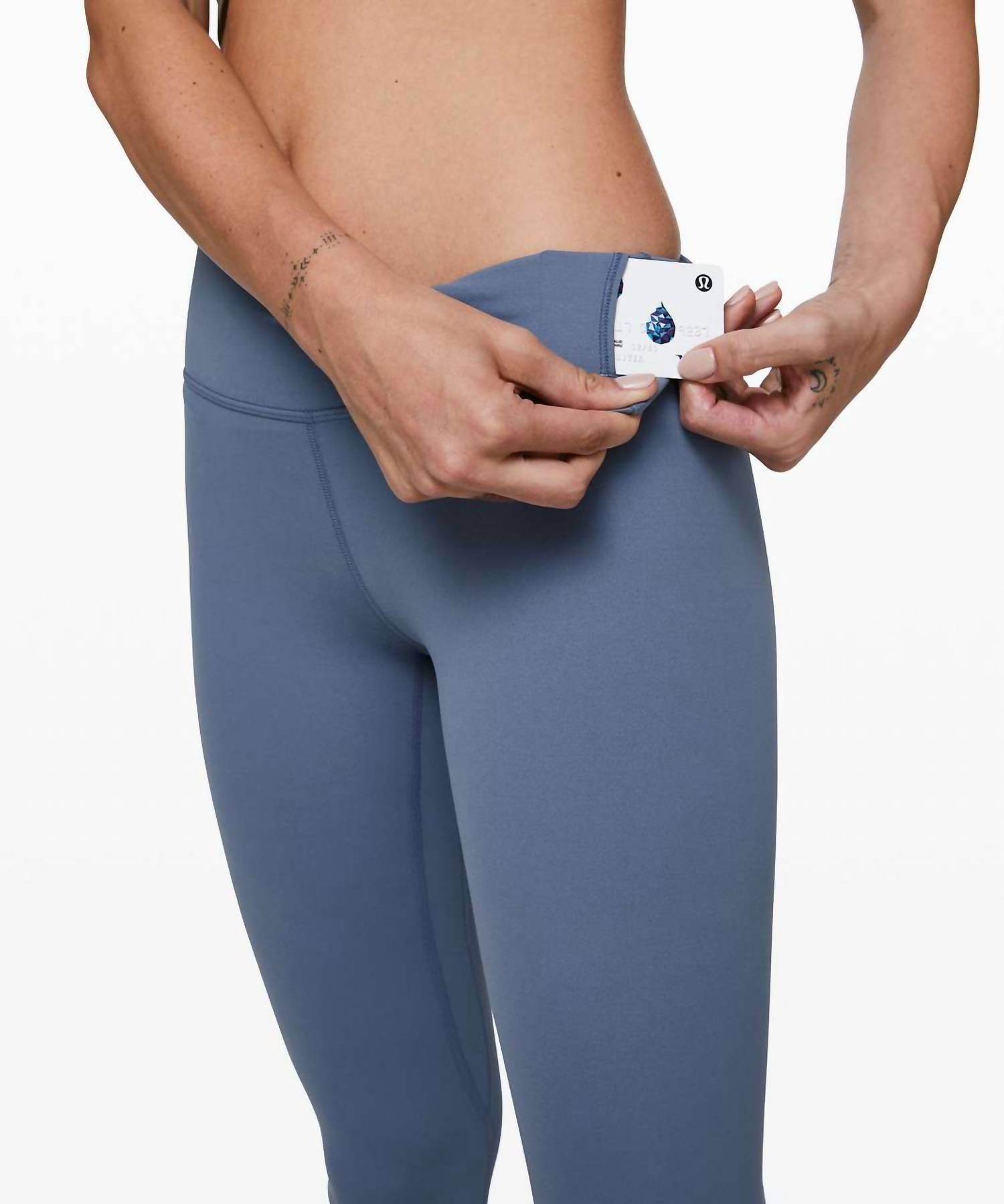 Leggings you can dress up or down for any occasion. The Align High Rise Pant by Lululemon in Oasis Blue is the perfect choice for a sleek athleisure look, blending style with functionality. These skinny-leg leggings are designed with a high-rise waist for a secure, flattering fit and include handy pockets for convenience. Made for a slim fit, they feature a pull-on closure system, ideal for workouts or casual summer outings. With an inseam of 25", these leggings cater to fitness enthusiasts seeking comfort and style.