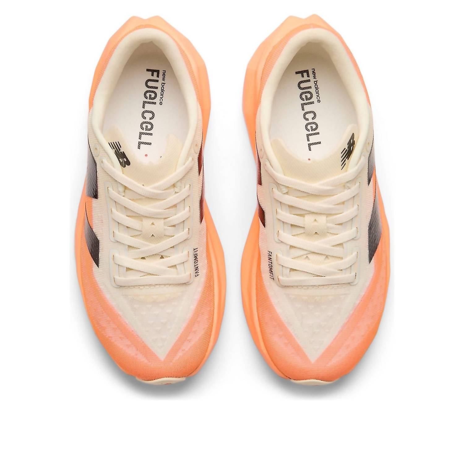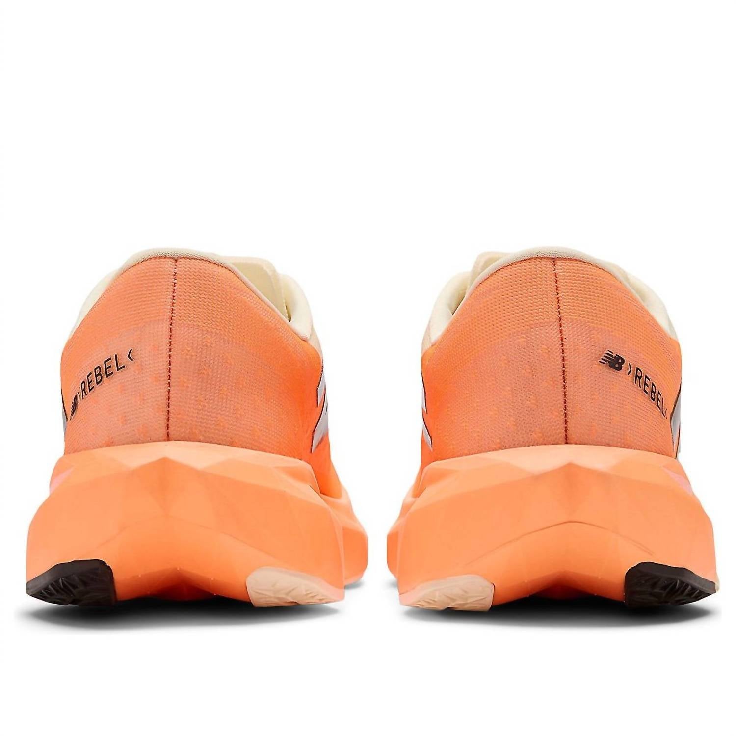 Stylish, comfortable and supportive. These athletic sneakers check all of the boxes. Introducing the New Balance Women's FuelCell Rebel V4 Shoes, an essential addition to your athletic footwear collection. This lightweight daily trainer seamlessly transitions from faster paces to longer road miles, making it perfect for fitness workouts. Featuring a supercritical PEBA blend FuelCell foam midsole for a lively feel, it includes additional cushioning and a wider base for enhanced comfort and stability. The round toe design and engineered upper with FantomFit technology ensure ultralight support, complemented by no-sew overlays for a high-performance fit. Ideal for summer and athleisure trends, this shoe comes in a dynamic colorway of Hot Mango, Angora, and Black.