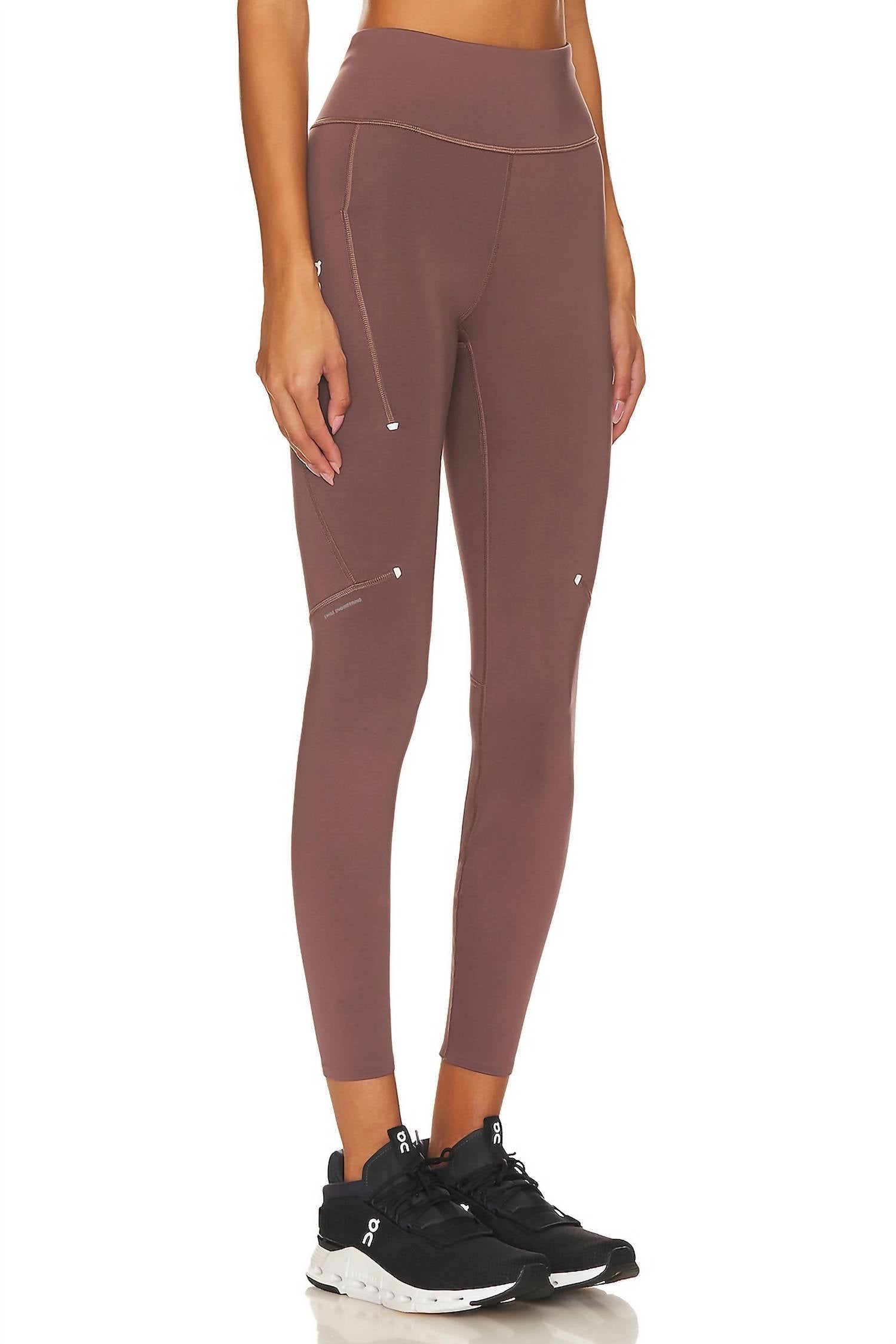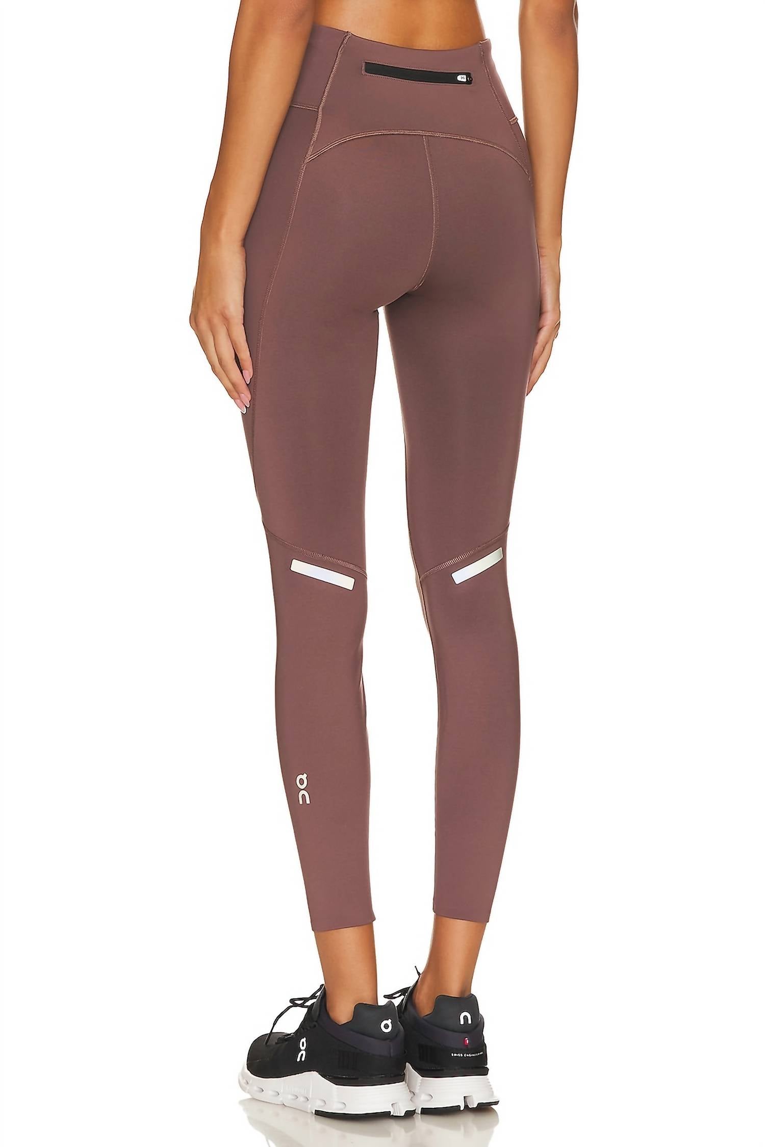Leggings you can dress up or down for any occasion. Enhance your workout wardrobe with the Performance Winter Tights by On Running, tailored for both functionality and style in a striking grape color. These leggings feature a high-rise waist with a pull-on styling, complete with a wide elastic waistband and an exposed back zipper closure. Made from a polyamide blend, they are crafted in Vietnam for women who seek comfort in their fitness apparel. Care for them is simple with machine wash instructions, and a line dry ensures longevity. With inseam and rise measurements of 25" and 10" respectively, they boast a reflective logo detail for added visibility.