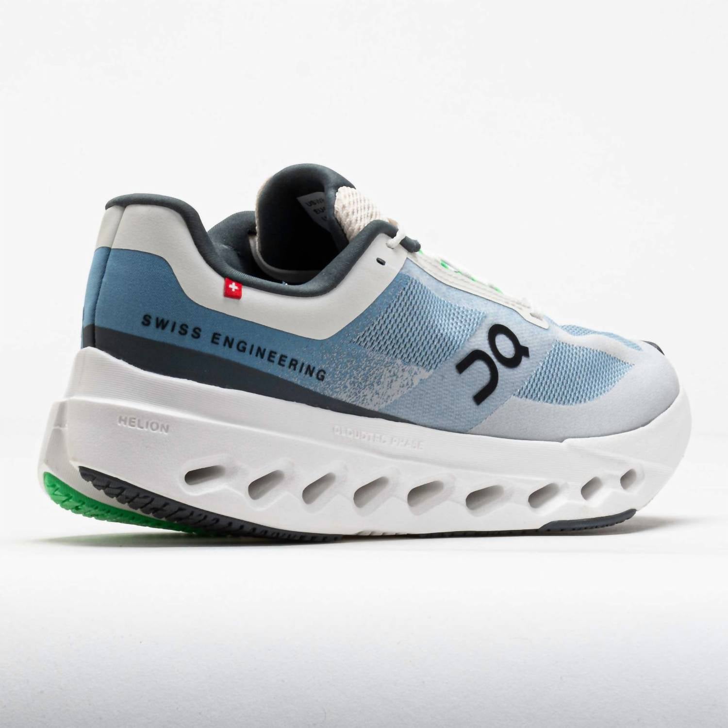 Workout in style with these adorable athletic sneakers. Elevate your run with On Swiss Performance's Women's Cloudsurfer Next Running Shoes, crafted for speed and responsiveness. These black and white road-running shoes are lighter and cushioned for enhanced energy return, making them ideal for a faster ride. Featuring a round toe shape and flat heel, they effortlessly blend athletic performance with athleisure style. Perfect for summer game days or celebrating the 4th of July, these shoes promise comfort and style in every stride.