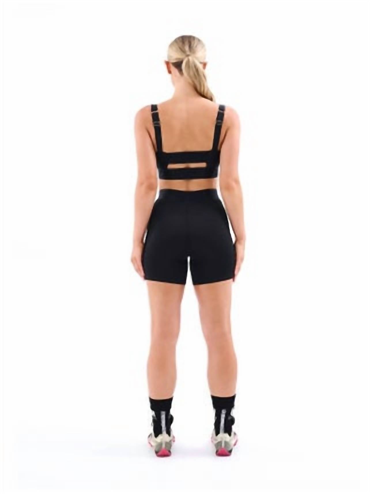 Elevate your workout with the P.E. NATION Backcheck Sports Bra, a medium-impact essential for gym and high-intensity training. Designed with a scoop neckline and adjustable elastic straps featuring gold metal sliders, this bra offers optimal support and customization. Crafted from 82% nylon and 18% elastane, it boasts a lightweight, soft matte finish and includes a branded jacquard elastic band for a touch of modern flair. Perfect for summer fitness sessions, this solid black piece seamlessly combines function and fashion.