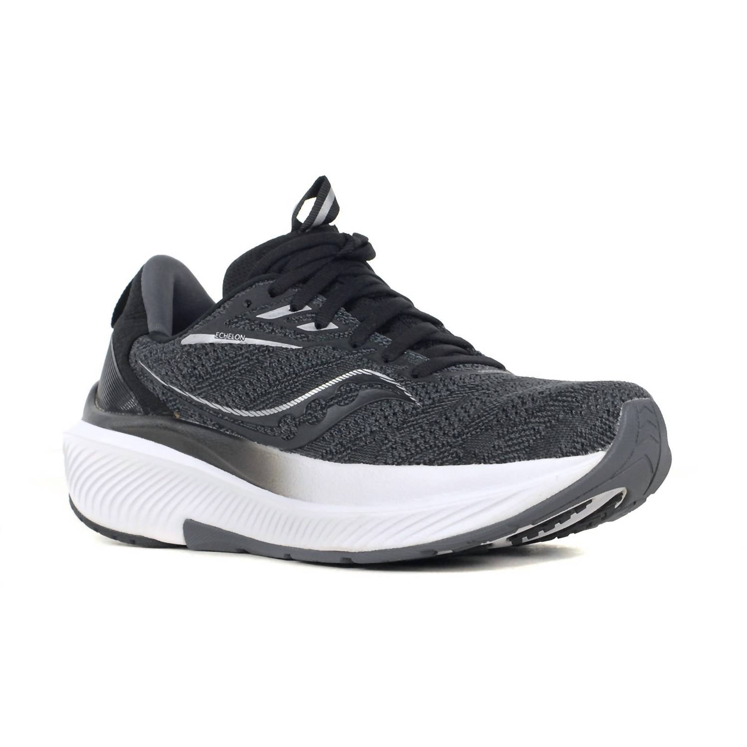 Stylish, comfortable and supportive. These athletic sneakers check all of the boxes. Step into comfort and performance with the Women's Echelon 9 Running Shoes by Saucony, designed for those who crave stability and cushioning. These shoes feature a thicker bed of PWRRUN foam for maximum cushion without weighing you down, ideal for fitness and workout occasions. The round toe and platform heel silhouette offer a modern look, with updates like more toe spring and heel beveling for smooth transitions. Engineered for neutral pronation and those using orthotics, these athletic shoes boast a durable rubber outsole and supportive midfoot wrap, with a weight of 9.5 oz and an 8 mm offset for an enhanced running experience.