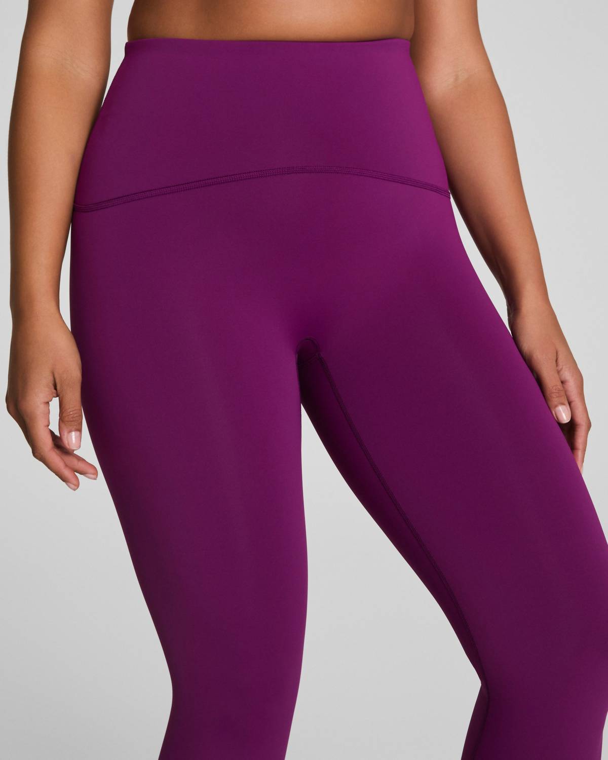 Leggings you can dress up or down for any occasion. Step up your workout game with the Spanx Women's Secret Sweat 7/8 Leggings in the vibrant shade of Light Snapdragon. Perfect for fitness enthusiasts, these leggings feature a solid pattern with a high-rise waist and a sleek skinny leg style for a flattering slim fit. Enjoy the convenience of a pull-on closure and a seamless design without pockets, making them ideal for spring workouts. Note: Specific care instructions are not provided.
