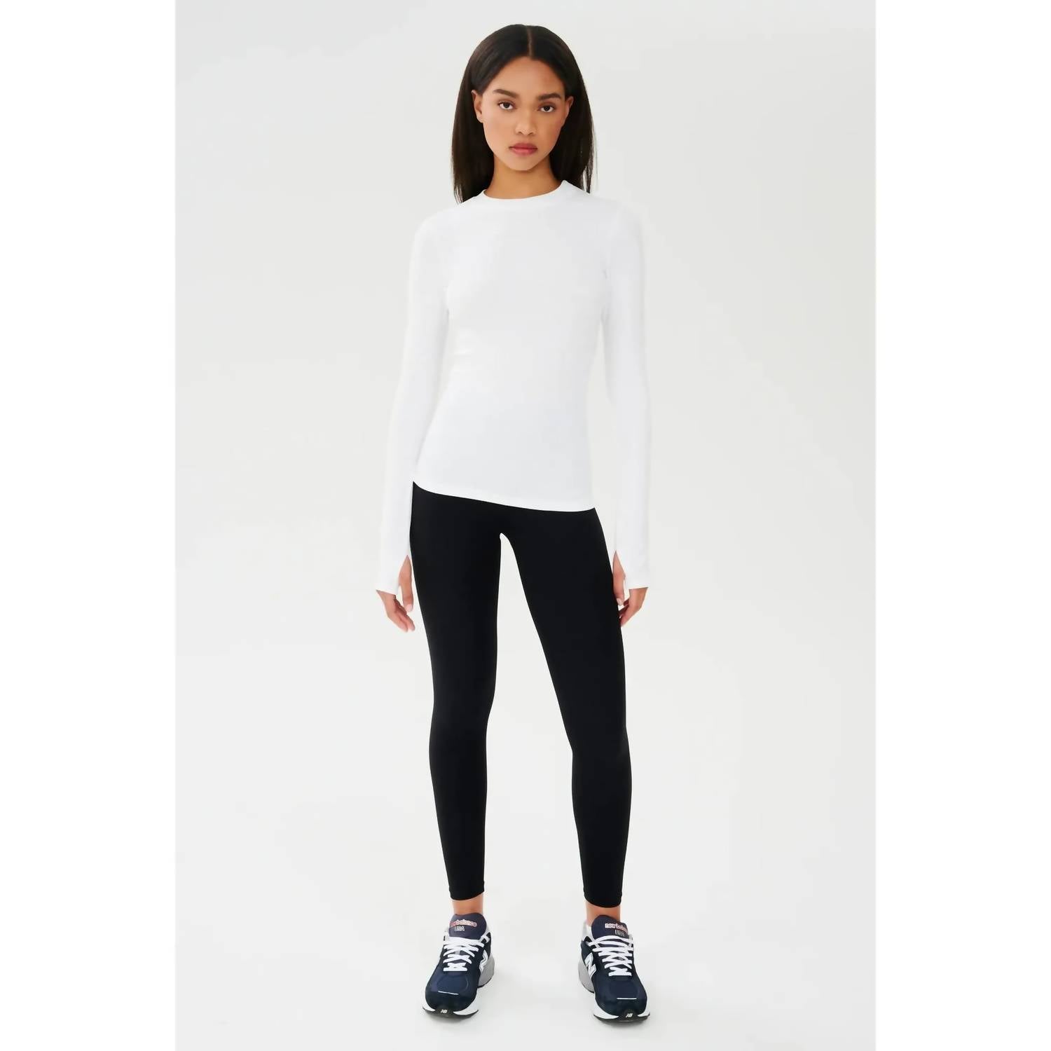 Great fit, cute design, soft fabric. You'll love everything about this long sleeve tee. Discover the Louise Ribbed Top by SPLITS59, a semi-fitted long sleeve shirt that effortlessly transitions from workout to casual wear. Crafted from 95% Tencel and 5% Spandex, its super soft baby rib material ensures a perfect fit for any activity, be it tennis, yoga, or keeping cozy. Featuring advanced moisture-wicking and quick-dry technology, this pull-on style is a go-to for staying comfortable. Elevate your athleisure wardrobe with this solid white essential.