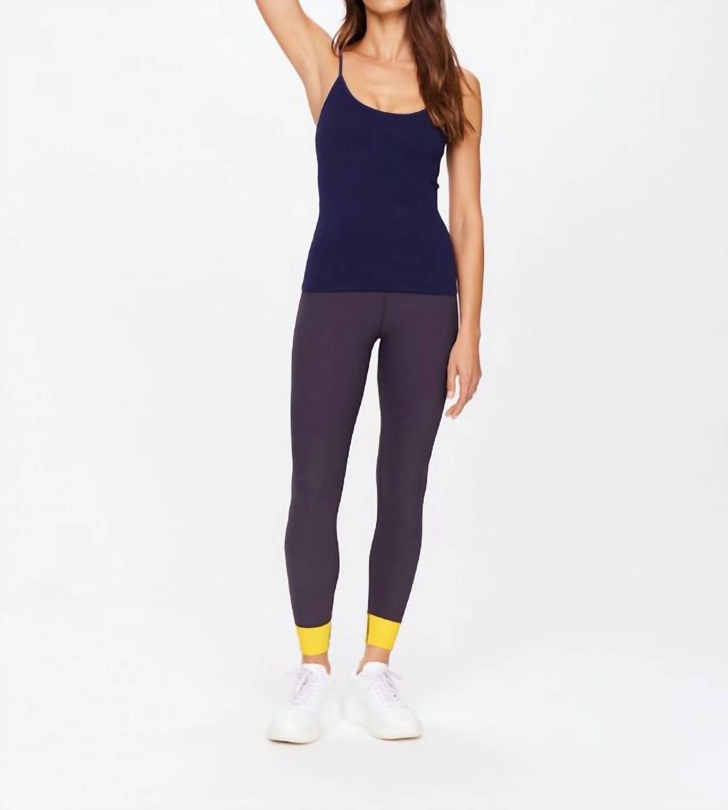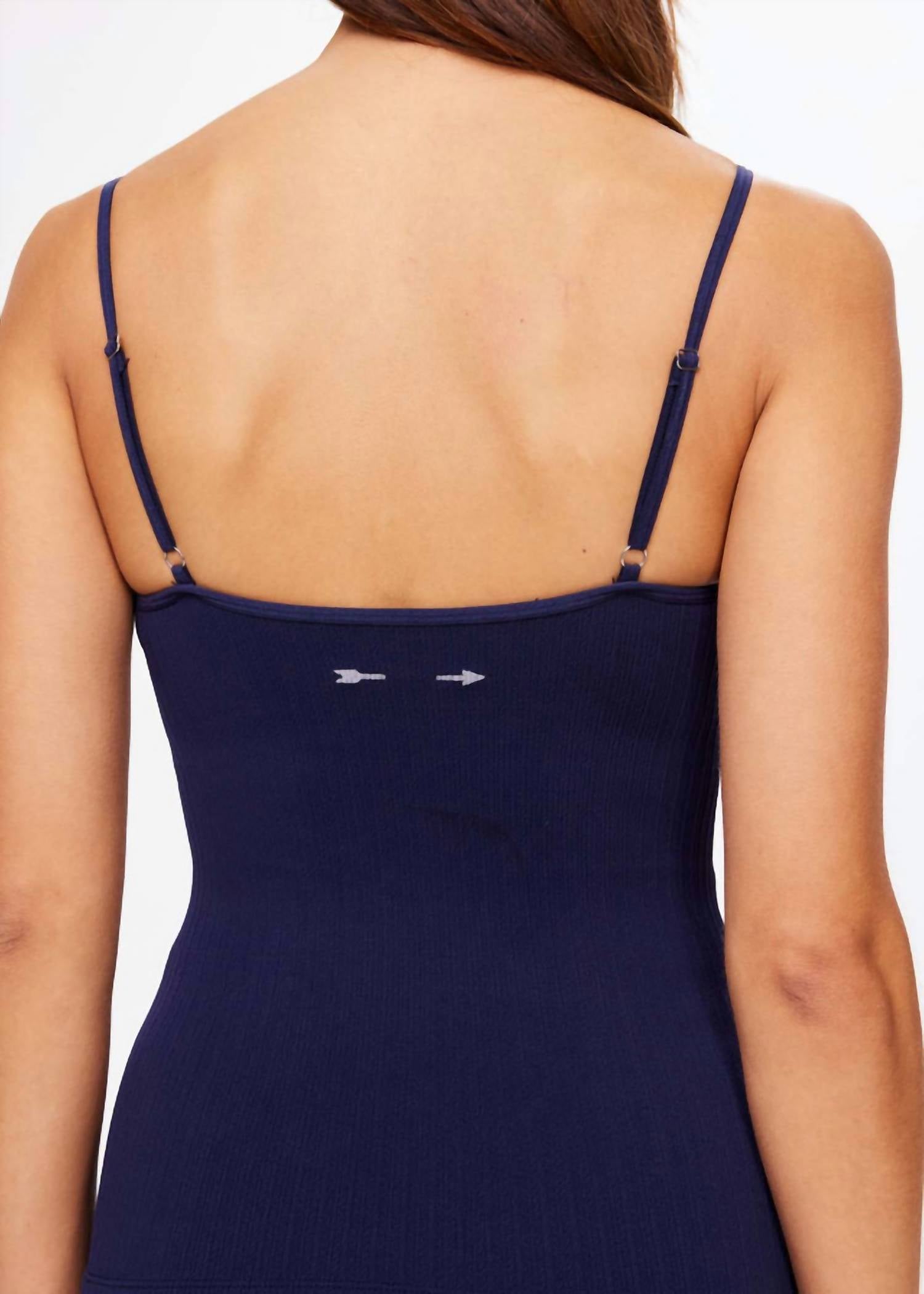 Fit, fabric and functionality. This tank top checks all the boxes. Keep it light 'n easy with our Seamless Hailey Tank Seamless mini cable rib tank in navy Adjustable straps for the perfect fit Form fitting with shelf bra and bra cups for support Contrast arrow logo at back Moisture control properties Please refer to studio images for accurate colour of garment