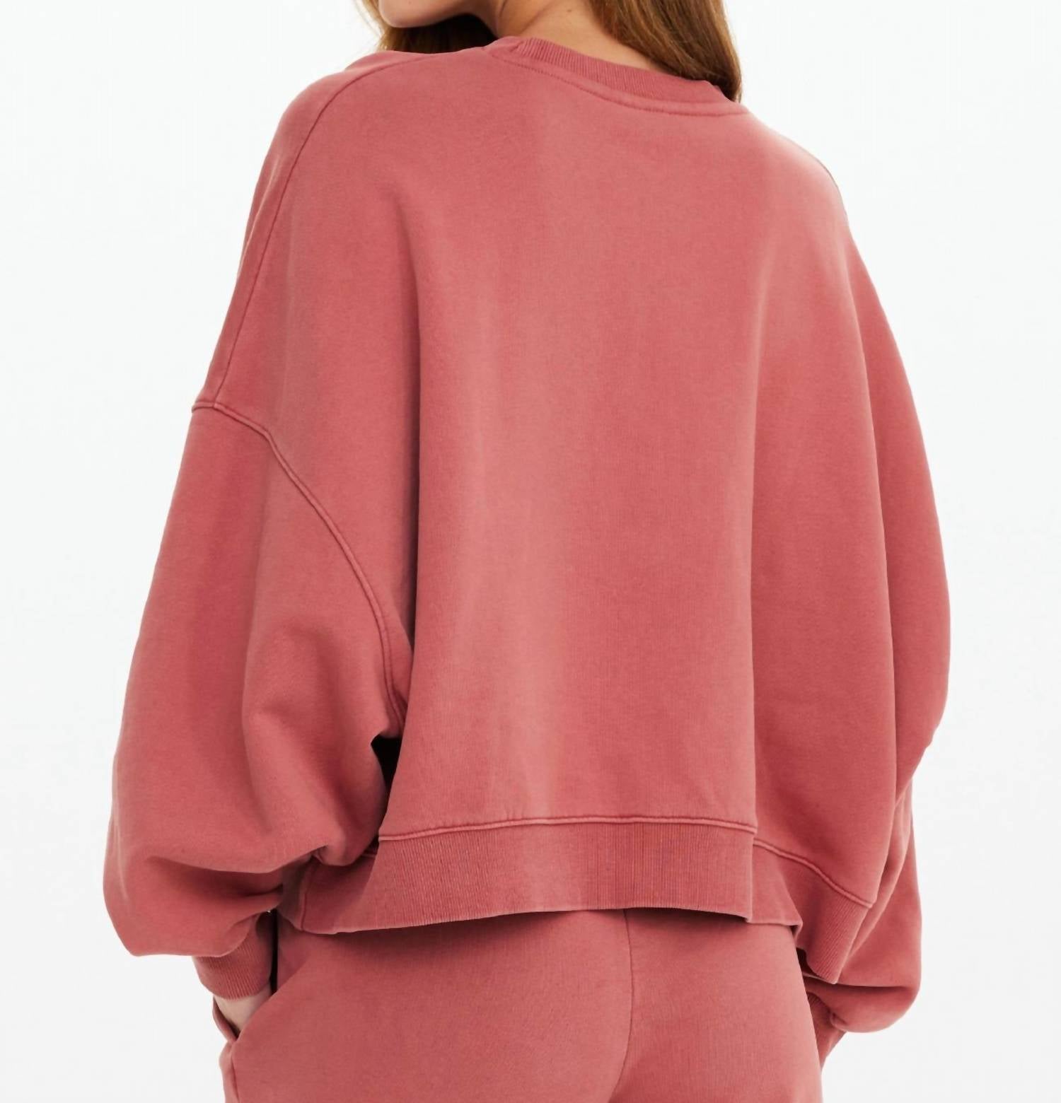 Elevate your casual wardrobe with the Serendipity Paloma Crew by THE UPSIDE, a minimalist staple in a warm sienna hue. Crafted from 100% brushed organic cotton loopback fabrication, this long sleeve crewneck offers luxurious comfort with a drop shoulder design. Adorned with the brand's puff printed logo on the front chest, this pull-on top is perfect for fall and Thanksgiving travel. Care: Machine wash and line dry for easy maintenance.