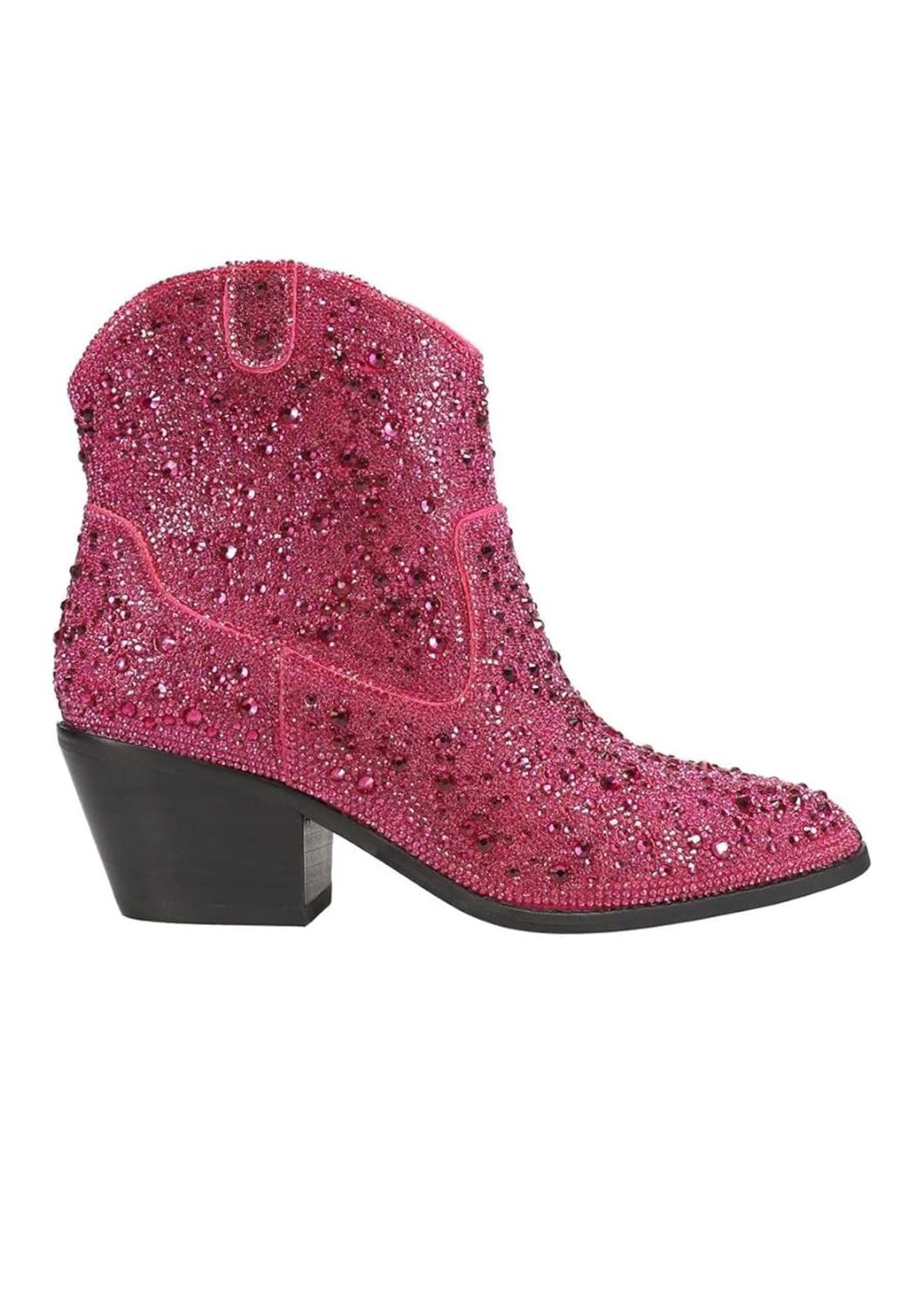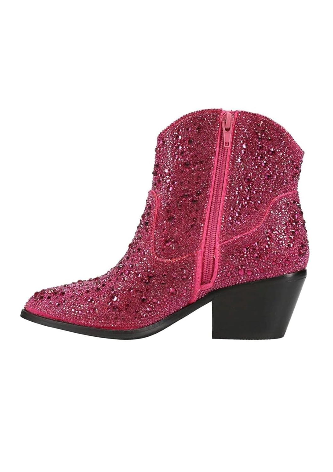 Say hello to the perfect, most versatile boot. The ankle height makes this style easily transition from day to night. Wear them with your favorite skinny jeans and tee for a more laid back look, or pair them with your favorite mini dress and jacket for a night out on the town. Introducing the Women's Shine Bright Bootie by Corkys Footwear, a dazzling choice for any holiday party with its rhinestone finish. These booties feature an elegant almond toe and a comfortable 2.5" mid-block heel, ensuring both style and support. Designed with a practical zipper closure and durable synthetic outsole, they seamlessly blend Western-inspired flair with modern elegance. Perfect for New Year's Eve celebrations and beyond, these booties are an ideal addition to your spring wardrobe.