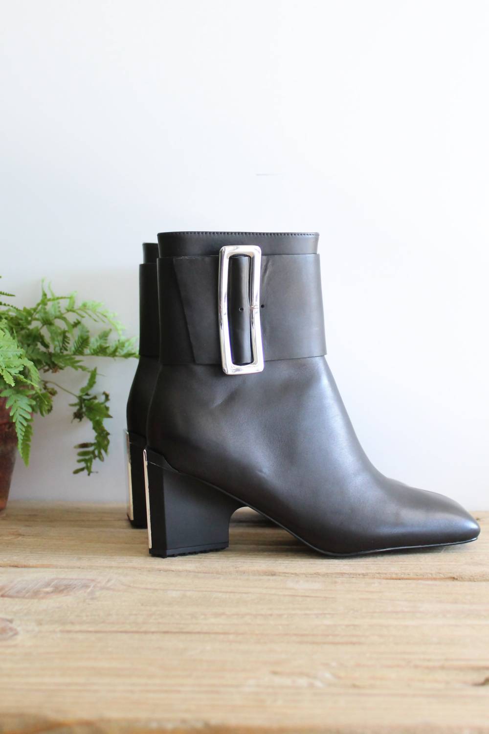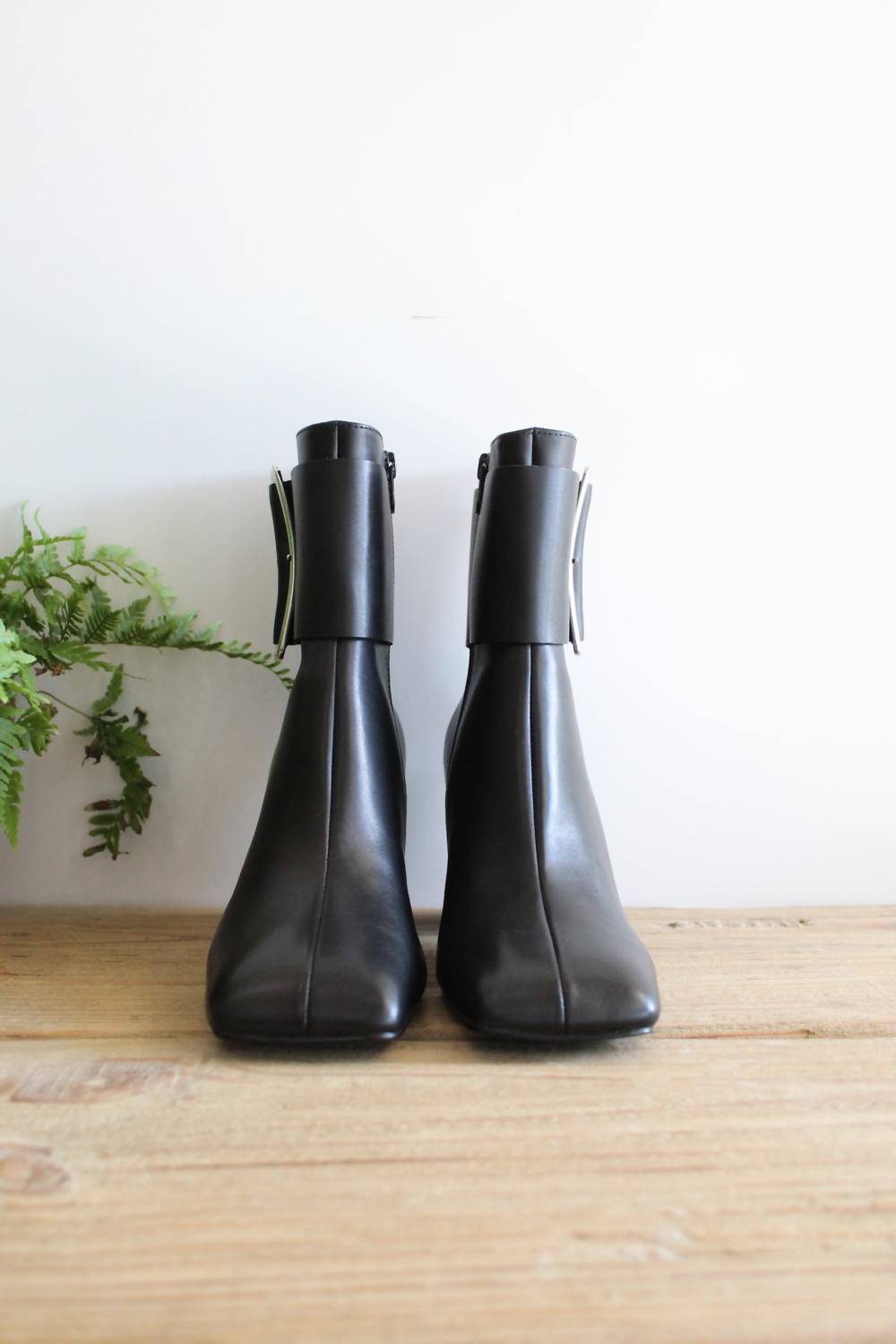 Say hello to the perfect, most versatile boot. The ankle height makes this style easily transition from day to night. Wear them with your favorite skinny jeans and tee for a more laid back look, or pair them with your favorite mini dress and jacket for a night out on the town. Introducing the Women's Mirror Slen Leather Boots by 4CCCCEES, available in a sleek black finish. These ankle boots feature a smooth leather upper with a stylish buckle detail and a convenient side zip closure. Designed for comfort, they include a leather-lined cushioned insole with arch support and a durable rubber sole, perfect for evening events. Crafted for an adult women's audience, these boots embody quiet luxury and are a great choice for the fall season. Imported.