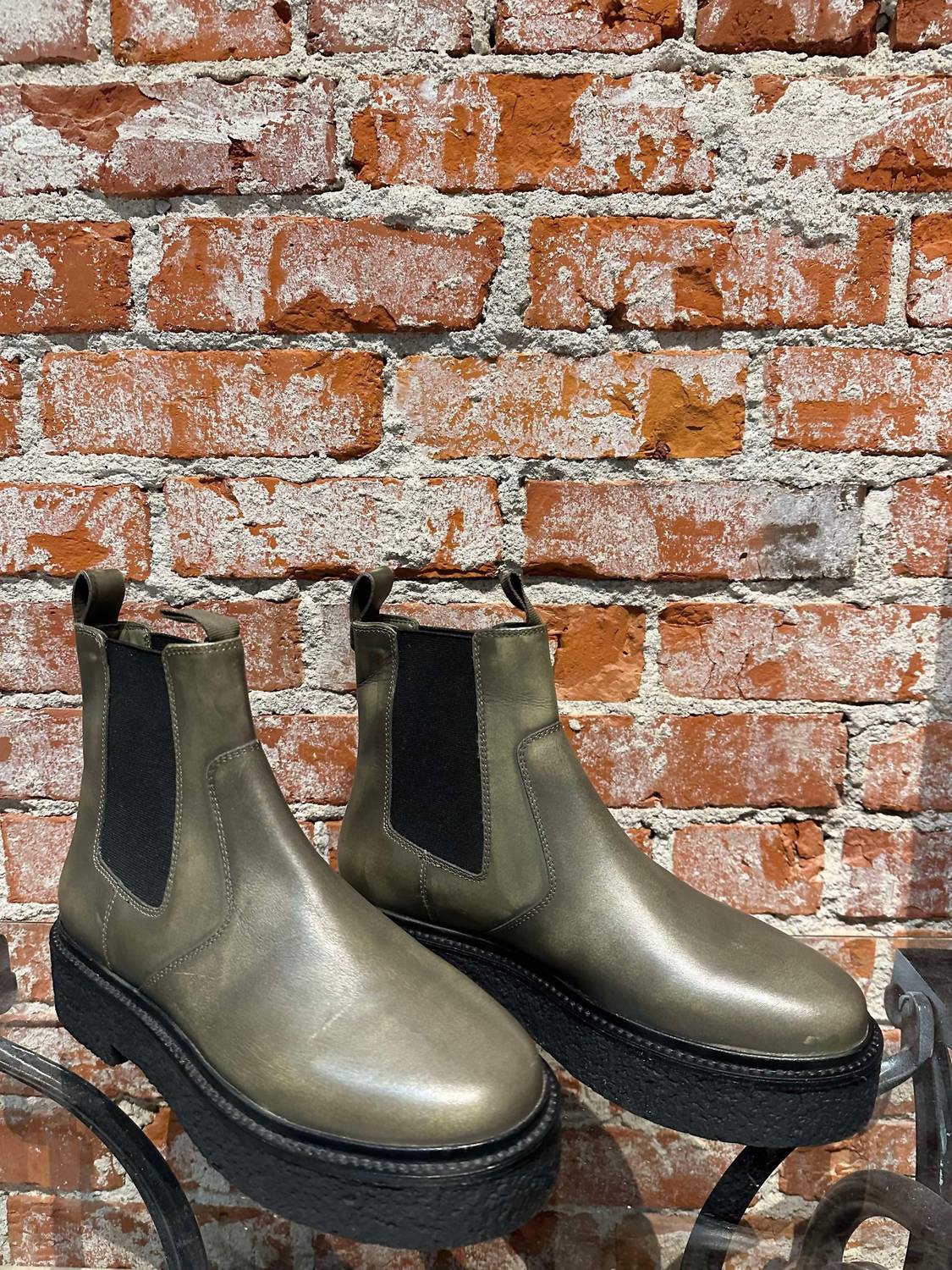 Say hello to the perfect, most versatile boot. The ankle height makes this style easily transition from day to night. Wear them with your favorite skinny jeans and tee for a more laid back look, or pair them with your favorite mini dress and jacket for a night out on the town. Introducing the Women's Chelsea Boot by Free People, a chic addition to your footwear collection. Available in a sophisticated olive hue, these boots are crafted from premium leather, offering both style and durability. Featuring a round toe and a low 1.5-inch platform heel, they effortlessly complement any outfit. Perfect for adult women seeking comfort and elegance in their ankle boots.