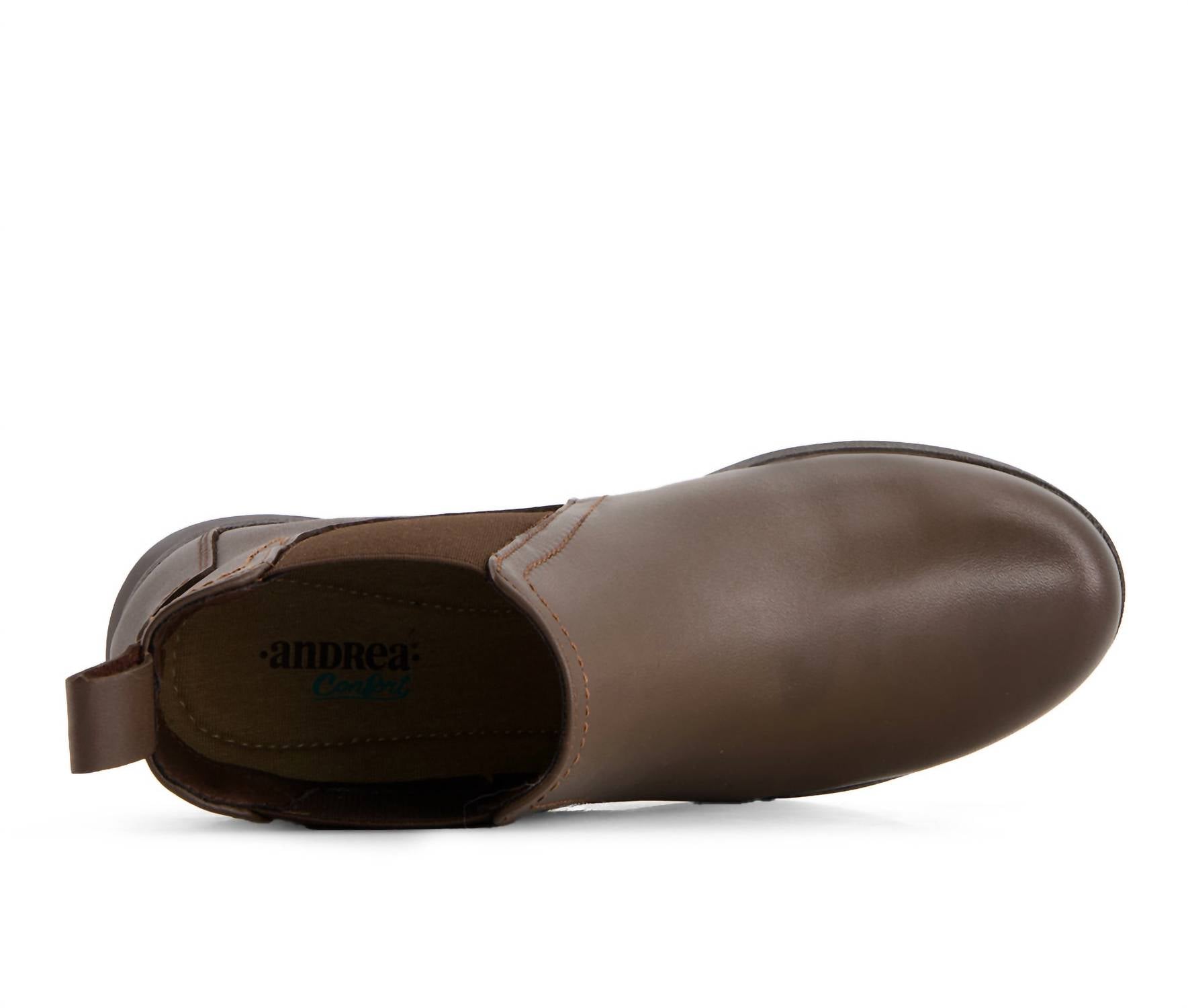 Say hello to the perfect, most versatile boot. The ankle height makes this style easily transition from day to night. Wear them with your favorite skinny jeans and tee for a more laid back look, or pair them with your favorite mini dress and jacket for a night out on the town. Introducing the Women's Leather Short Chelsea Boots by Andrea, designed in a sophisticated brown hue. These ankle boots are crafted from luxurious leather, featuring a round toe and a flat heel under one inch, offering both style and everyday comfort. Perfect for holiday parties and summer gatherings, the lightweight design ensures they are a versatile choice, while the exclusive nature of the boots adds a refined touch to any workwear ensemble. Both stylish and functional, these boots seamlessly blend into your wardrobe.