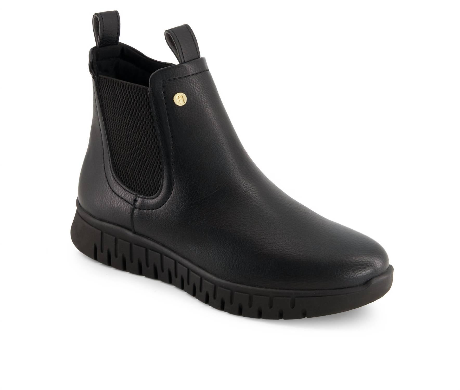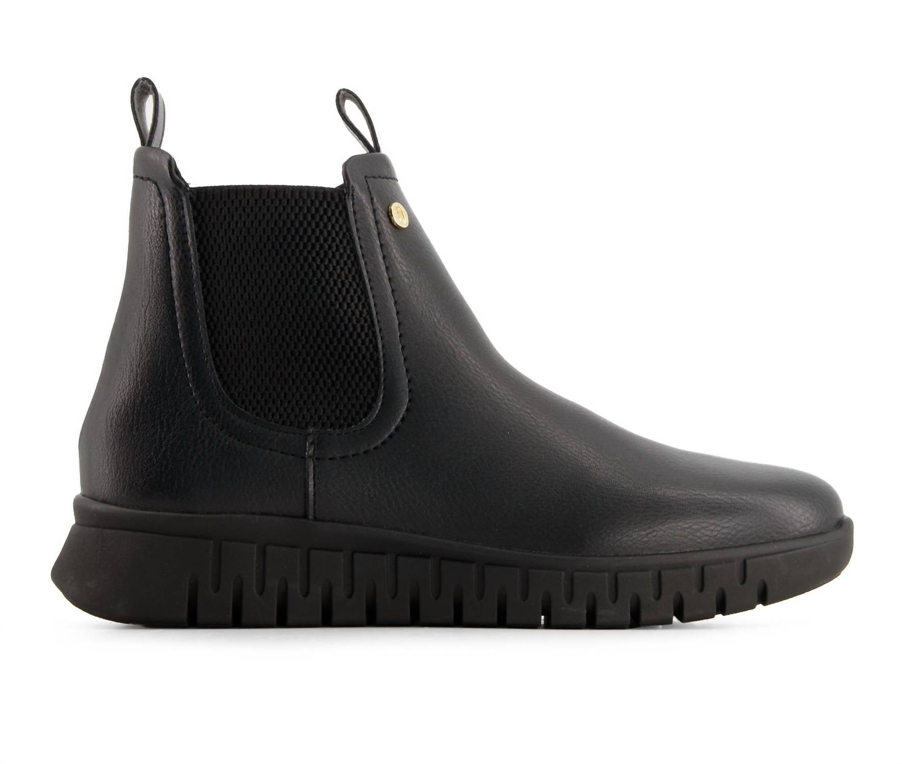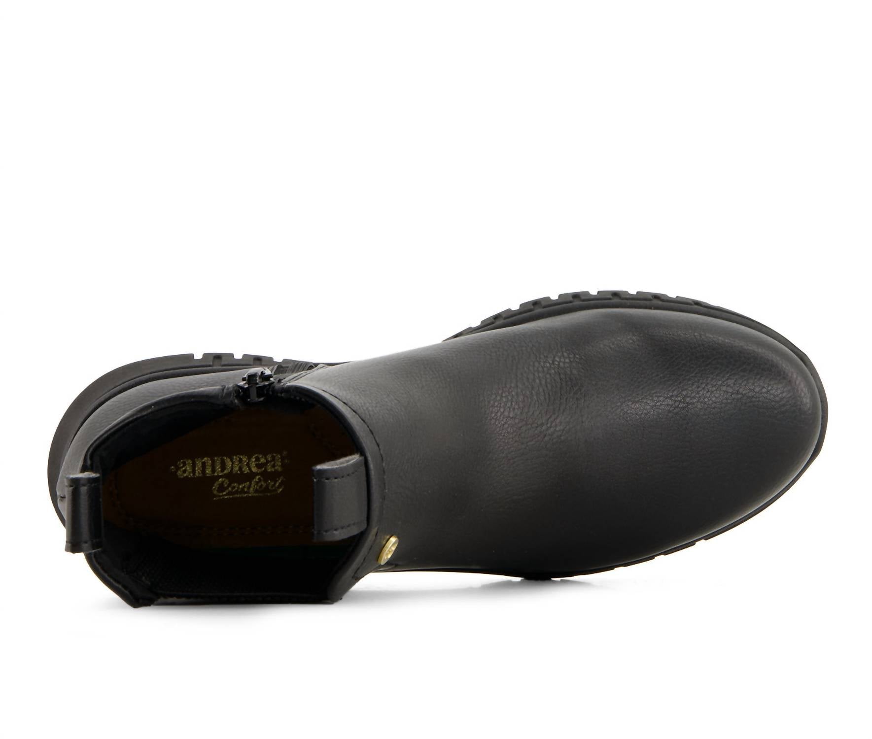 Say hello to the perfect, most versatile boot. The ankle height makes this style easily transition from day to night. Wear them with your favorite skinny jeans and tee for a more laid back look, or pair them with your favorite mini dress and jacket for a night out on the town. Step into sophistication with the Women's Total Comfort Chelsea Booties by Andrea, the perfect choice for a stylish yet comfortable evening. Crafted from luxurious leather, these black ankle booties feature a flat heel of under 1" and a classic round toe design, ideal for a summer dinner party. Embrace the trend of workwear versatility while enjoying the lightweight structure and cushioned foam insole for all-day comfort. Make these your go-to pair for a chic addition to your wardrobe this 4th of July season.