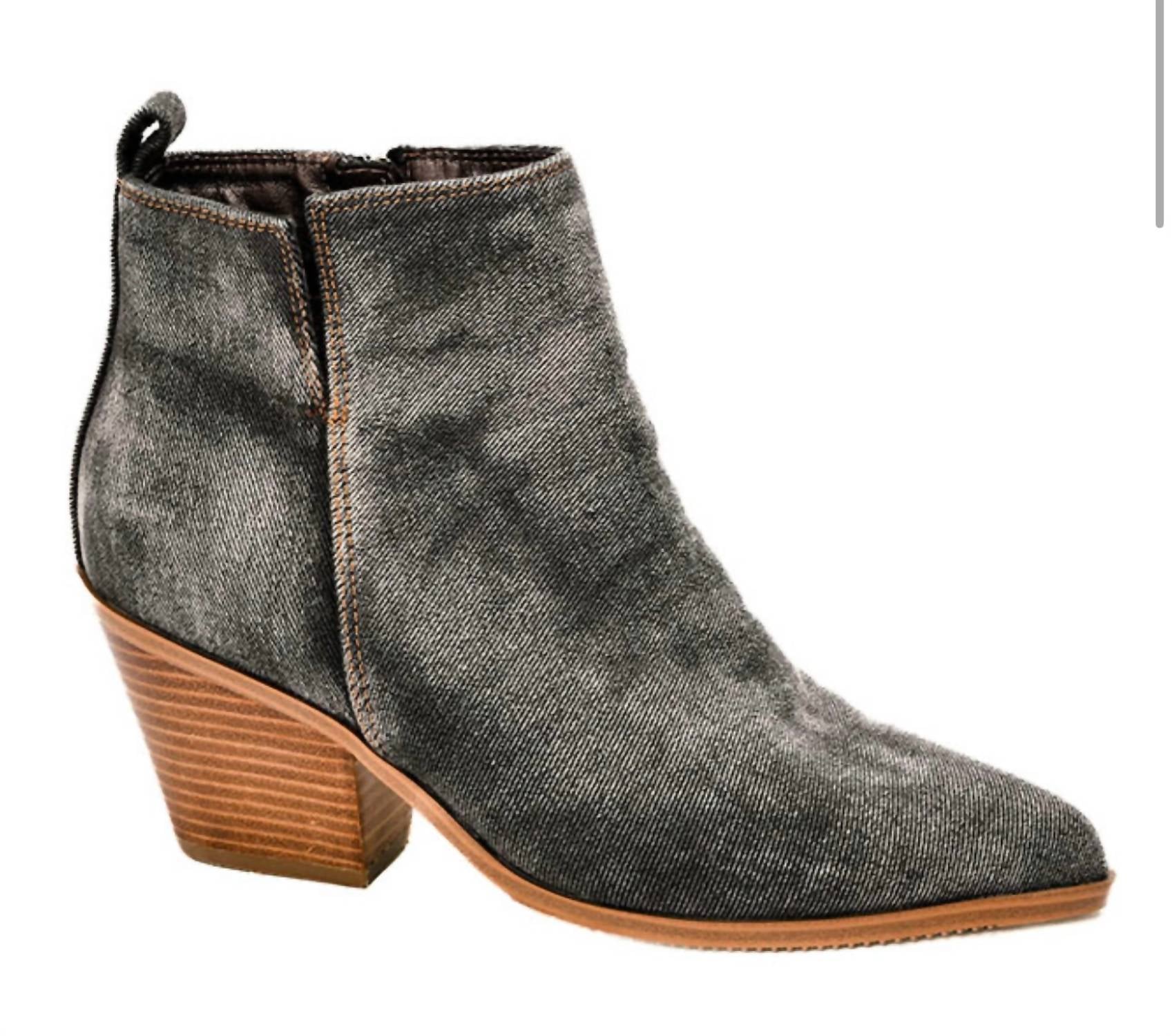 Say hello to the perfect, most versatile boot. The ankle height makes this style easily transition from day to night. Wear them with your favorite skinny jeans and tee for a more laid back look, or pair them with your favorite mini dress and jacket for a night out on the town. Step out in style with the Gimme Sugar Booties by Corkys Footwear, crafted for the modern woman in versatile washed dark blue denim. These booties offer a pointed toe and feature a mid-height block heel measuring 2.75 inches, with a subtle 0.25-inch platform for added comfort. Perfect for a dinner party or any minimalist-inspired ensemble, they effortlessly blend practicality with a touch of edginess. Designed for true-to-size fits, these stylish booties ensure you move through spring with confidence and flair.