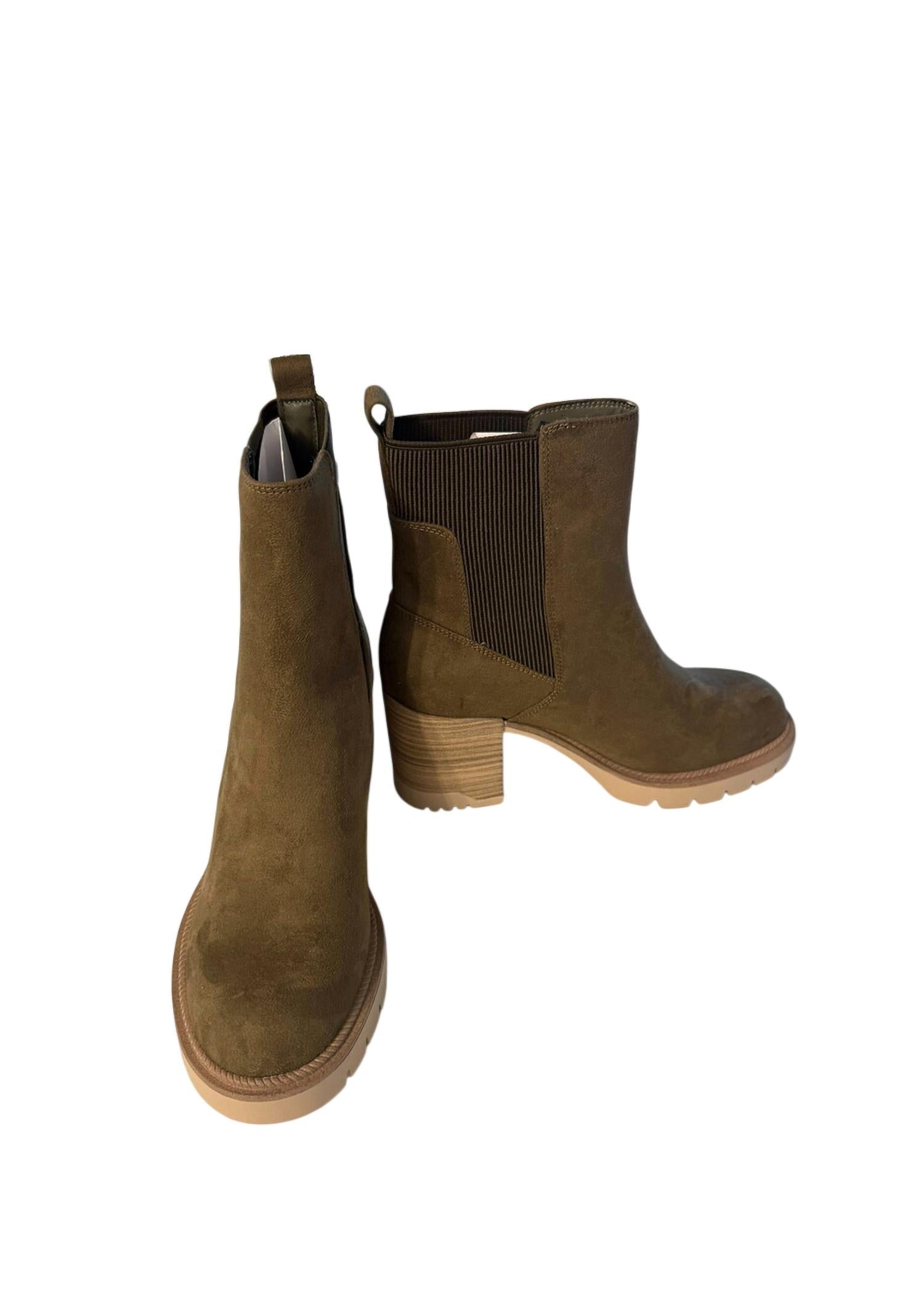 Say hello to the perfect, most versatile boot. The ankle height makes this style easily transition from day to night. Wear them with your favorite skinny jeans and tee for a more laid back look, or pair them with your favorite mini dress and jacket for a night out on the town. Elevate your footwear collection with the MIAâ„¢ Novie Boots, perfect for your fall wardrobe with a chic taupe hue. These ankle boots feature a 3-inch stacked block heel and a round-toe silhouette made from stylish faux suede. Designed for comfort with an anatomical polyurethane insole, the boots also boast elastic gore panels and a pull tab for effortless wear. Origin: Imported. Dimensions: Shaft height 7 inches, circumference 12 inches, platform height 3/4 inch; weight 1 lb 3 oz. Ideal for a boho chic look this New Year's Eve or for travel.