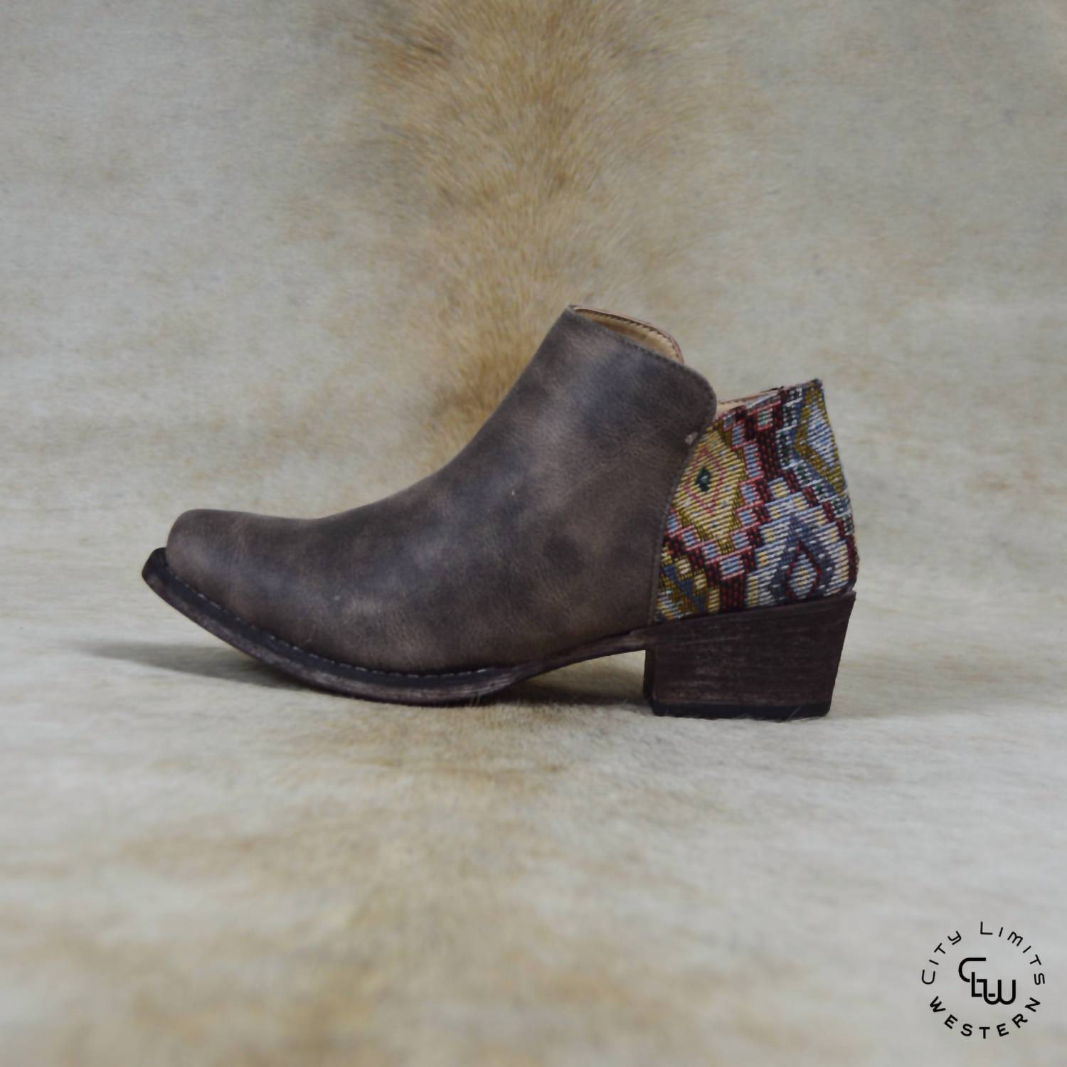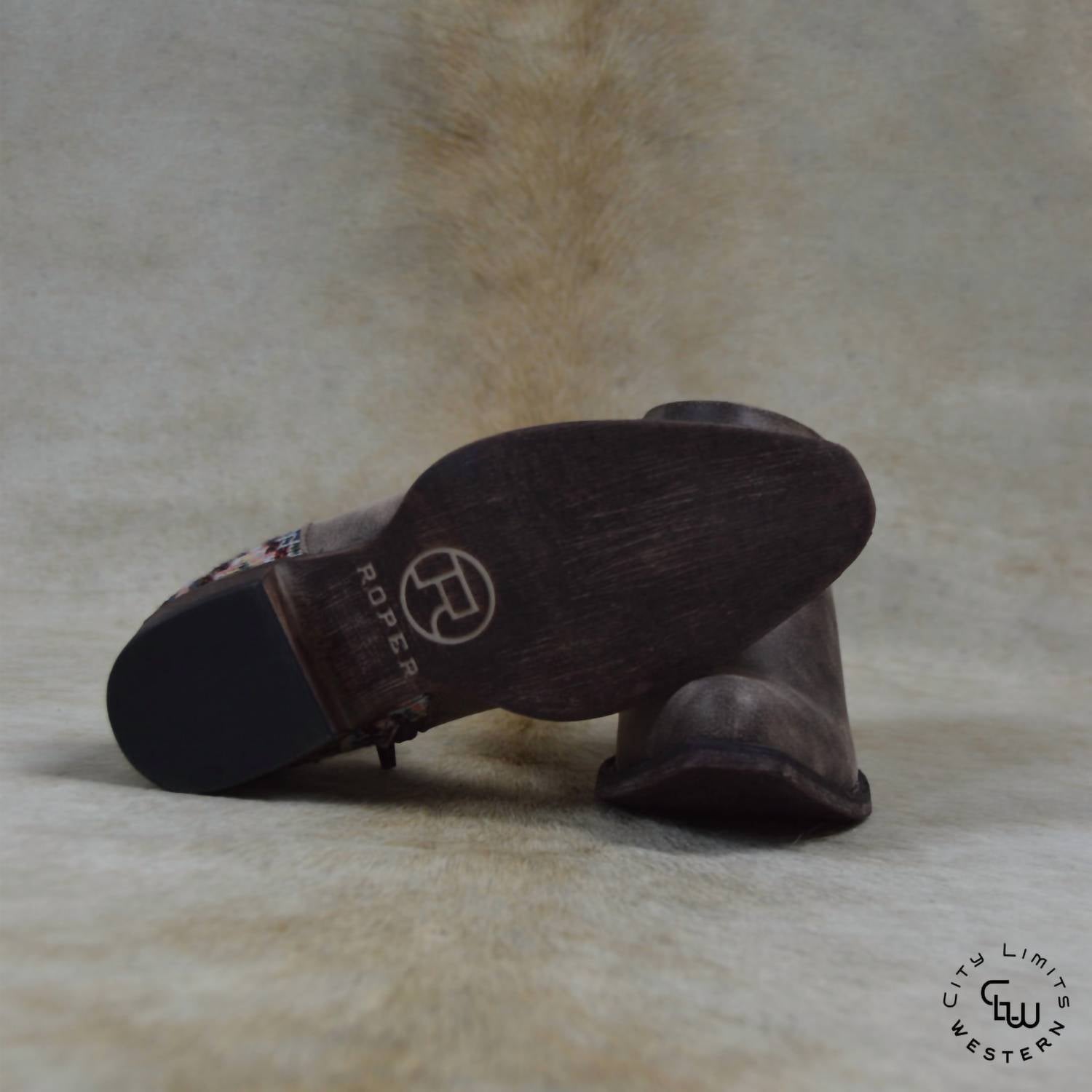 Say hello to the perfect, most versatile boot. The ankle height makes this style easily transition from day to night. Wear them with your favorite skinny jeans and tee for a more laid back look, or pair them with your favorite mini dress and jacket for a night out on the town. Step out in style with the Women's Sedona Snip Toe Serape Booties by ROPER, an exquisite choice for any evening event. These ankle boots boast a charming brown vamp paired with an eye-catching Aztec fabric pattern on the heel, perfectly suited for a Western summer trend. The boot combines a snip toe design with a flexible vintage TPR outsole and padded comfort insole, ensuring both comfort and flair. Closure: Convenient zipper closure. Note that this boot is ideal for those with larger calves.