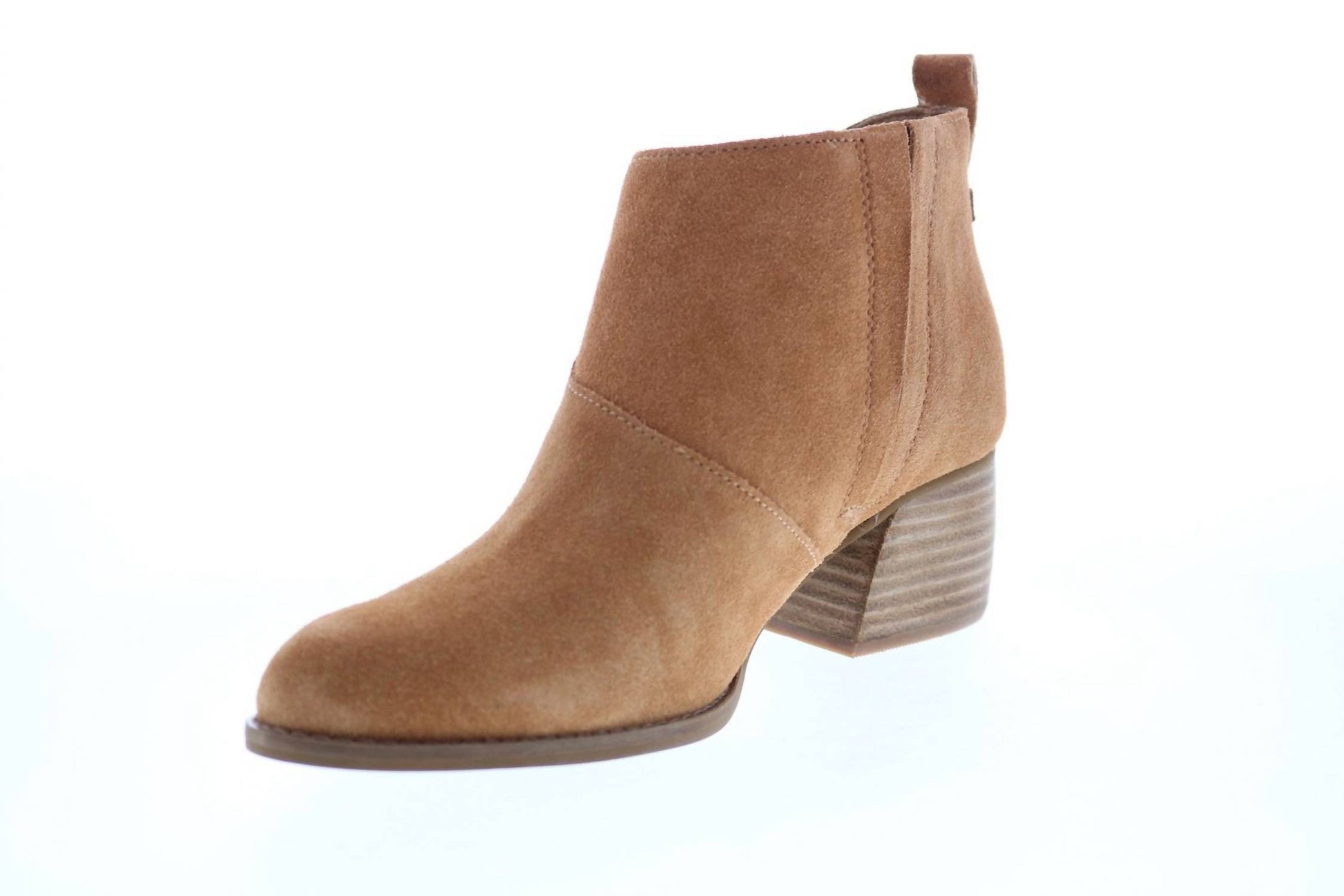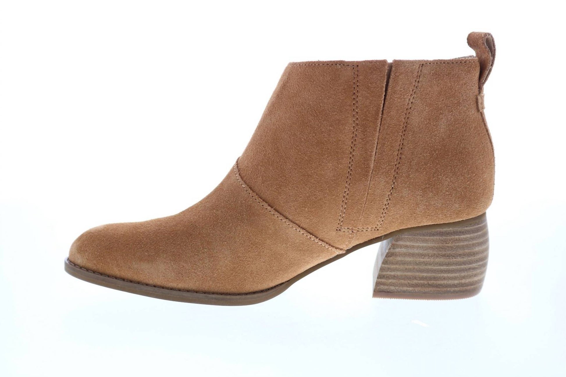 Say hello to the perfect, most versatile boot. The ankle height makes this style easily transition from day to night. Wear them with your favorite skinny jeans and tee for a more laid back look, or pair them with your favorite mini dress and jacket for a night out on the town. Step into style with the Women's Leilani Suede Booties by TOMS, featuring a sophisticated almond toe and a chic 2-inch block heel. Crafted from luxurious Carmel Brown suede, these booties are a perfect addition to your fall wardrobe. Composition: Suede.