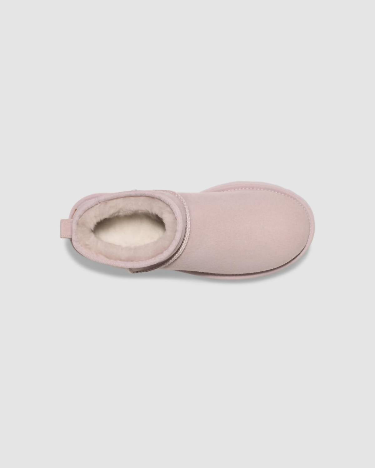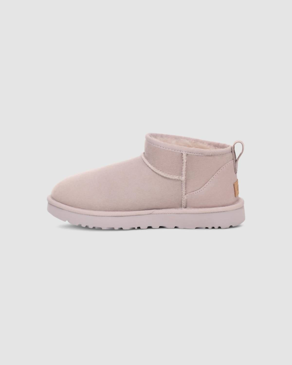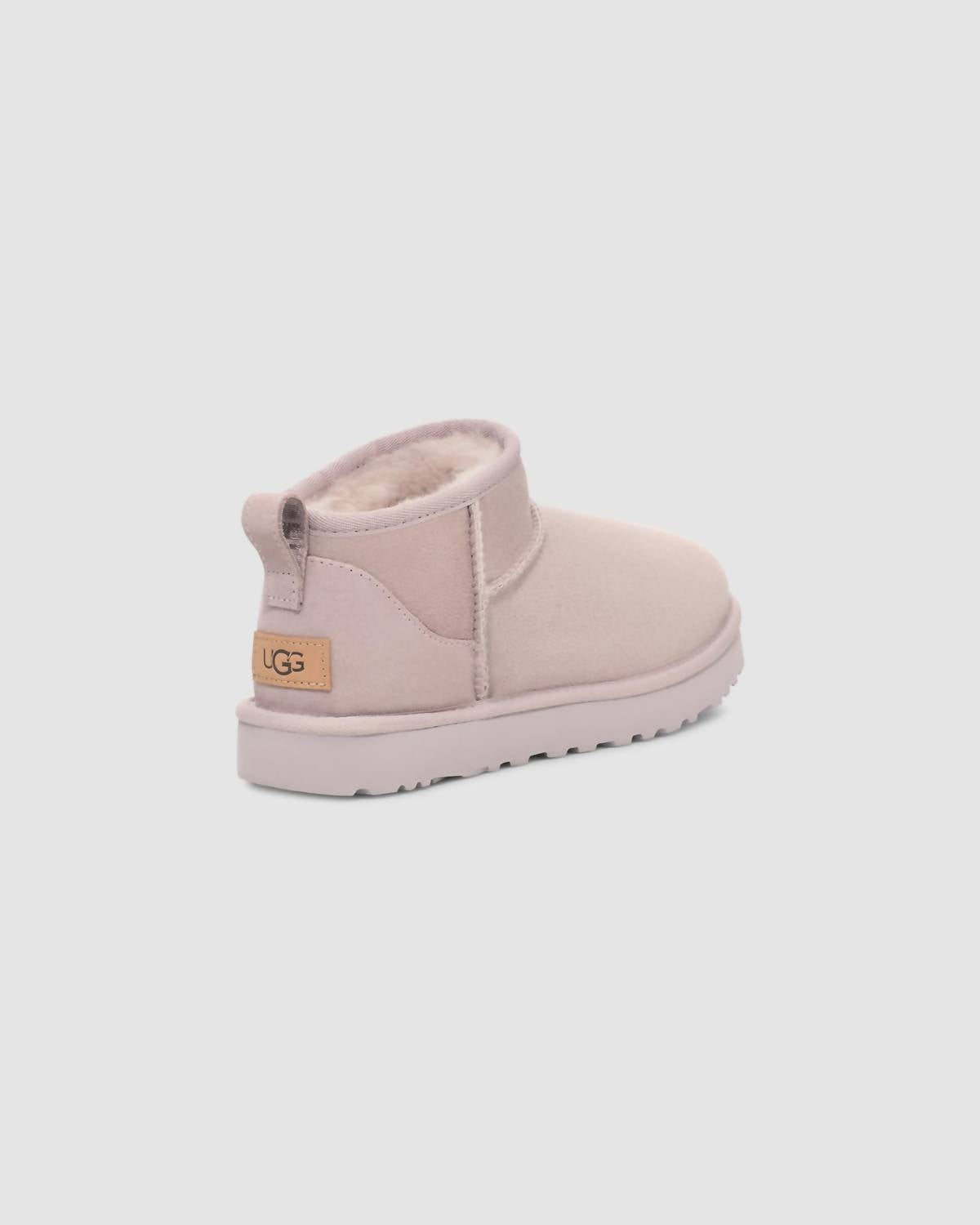 Say hello to the perfect, most versatile boot. The ankle height makes this style easily transition from day to night. Wear them with your favorite skinny jeans and tee for a more laid back look, or pair them with your favorite mini dress and jacket for a night out on the town. Introducing the Women's Classic Ultra Mini Boots by UGG in a chic Pale Smoke hue, perfect for a touch of streetwear style. With a 17mm Twinface sheepskin upper and suede heel counter, it ensures comfort and durability. The flexible and lightweight sole comes in either Treadlite by UGGâ„¢ for superior cushioning and traction, or SugarSoleâ„¢ EVA outsole for an eco-friendly option. The versatile design includes a 17mm UGGplushâ„¢ insole and a flat heel, ideal for fall travel or Thanksgiving outings, complete with a textile binding of 100% recycled polyester fibers.