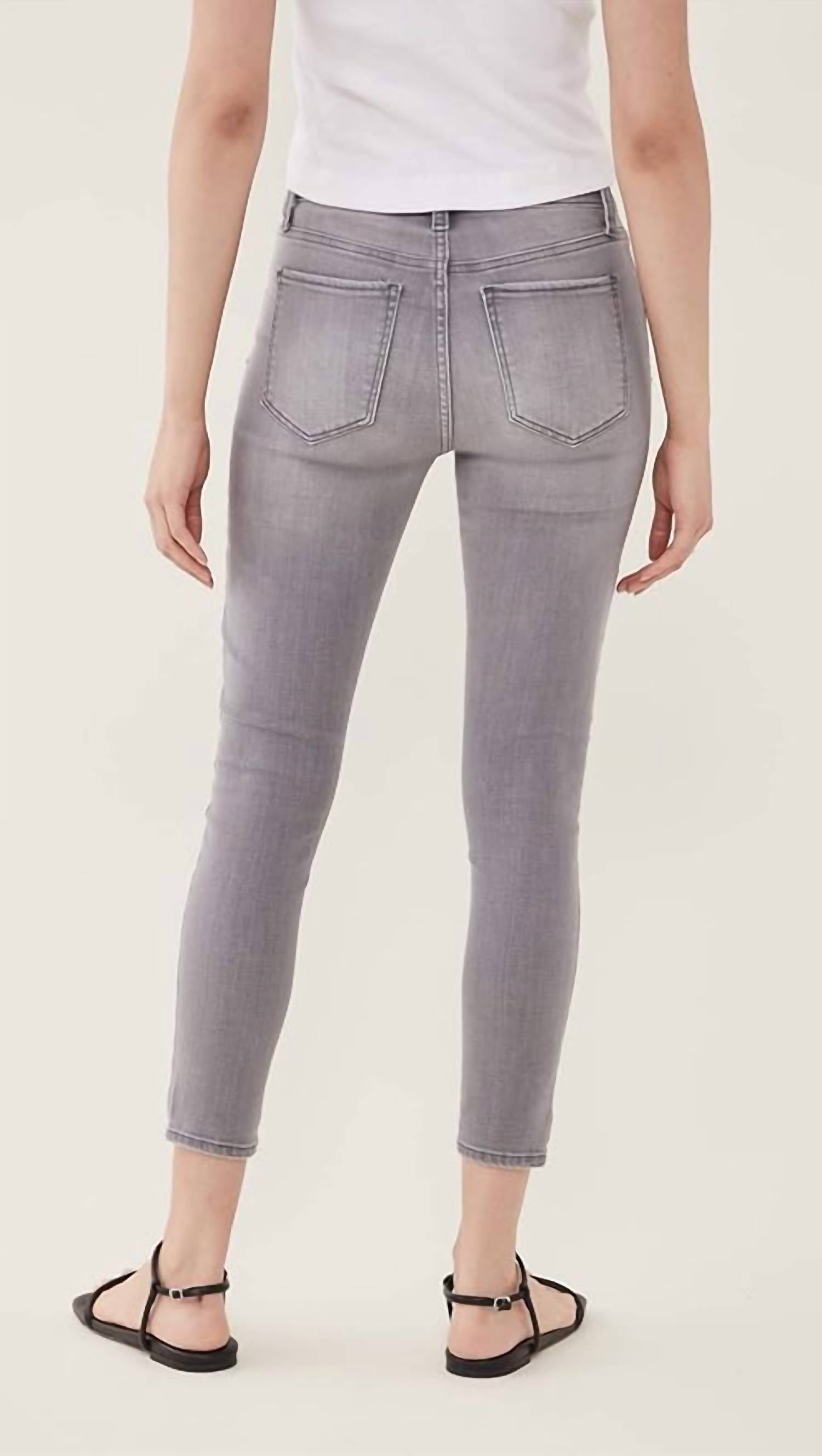 High-rise skinny jean. Flawless stretch denim. Grey wash. Fading accents. 5-pocket style. Shell: 78% cotton, 20% polyester, 2% spandex. Care instructions: Wash cold. Leg style: Cropped. About this item: Fabric: Mid-weight stretch denim. Whiskering. Rise: 9.75in / 25cm. Inseam: 26in / 66cm. Leg opening: 9.5in / 24cm.