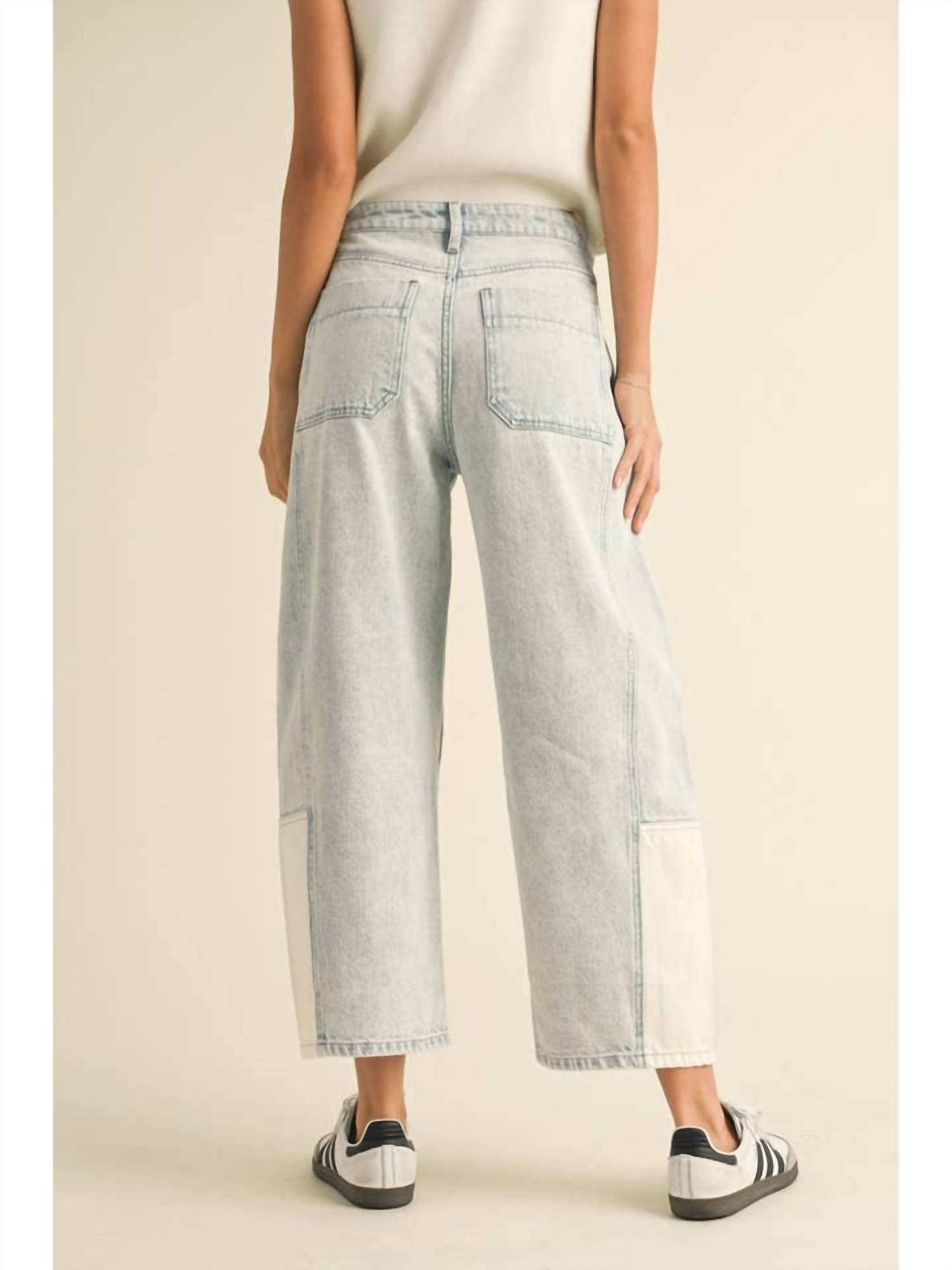 Comfortable and stylish, we love this cropped jean for all of the obvious reasons. Introducing the Color Combo Barrel Pants by Miou Muse, perfect for adding a stylish touch to your wardrobe. These blue, solid-patterned pants feature a relaxed fit with a straight leg style that offers comfort and sophistication. Equipped with pockets and a convenient zip closure, they are ideal for both casual and special occasions. Care for them with ease by machine washing and tumble drying.