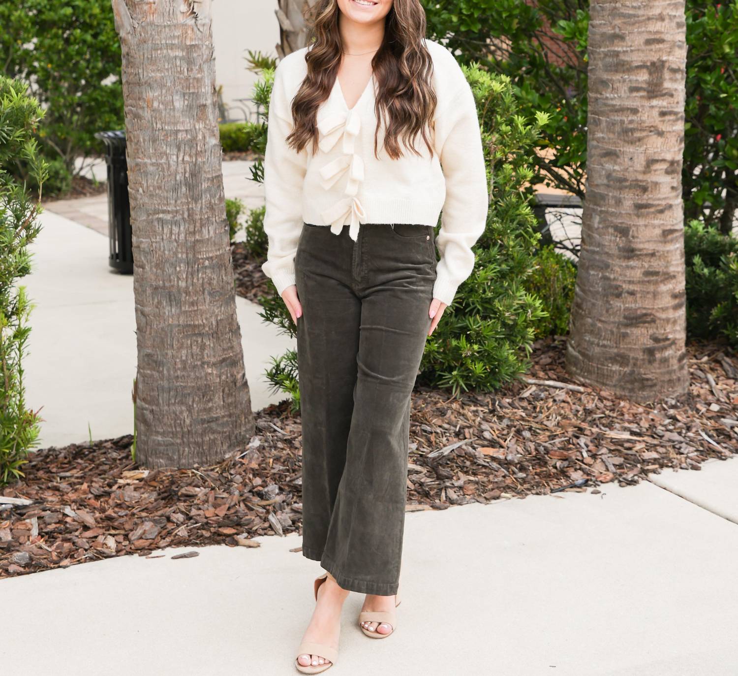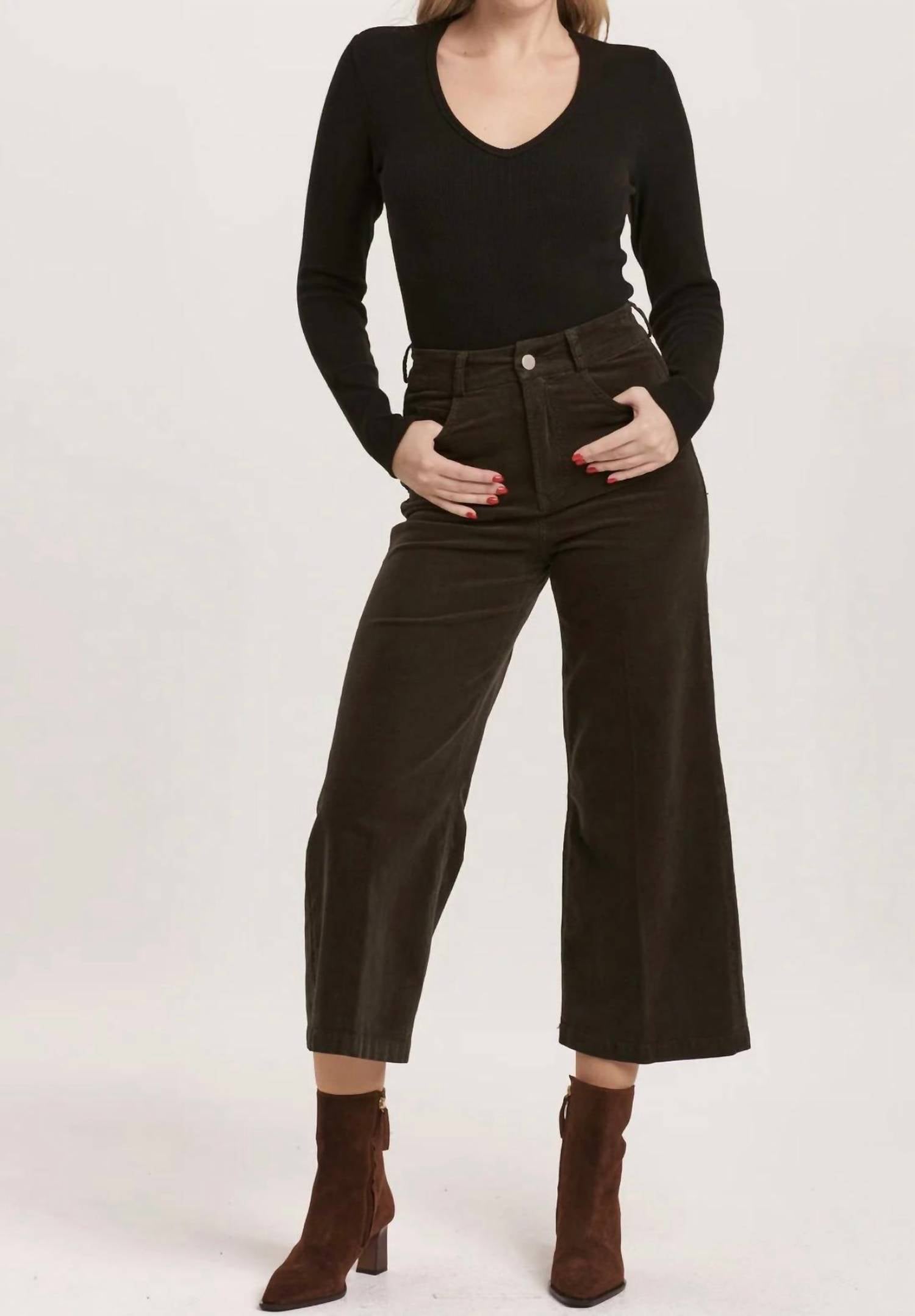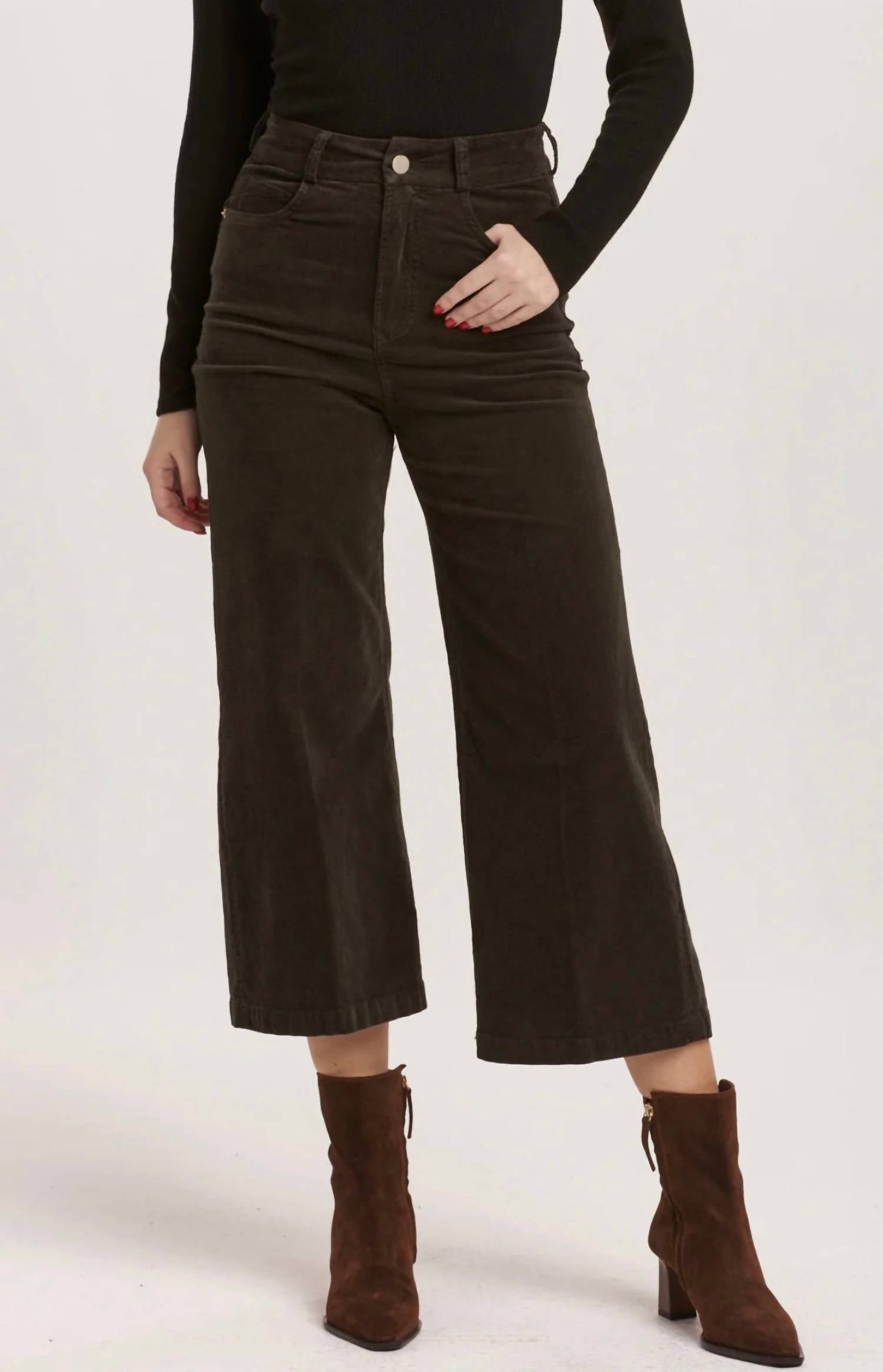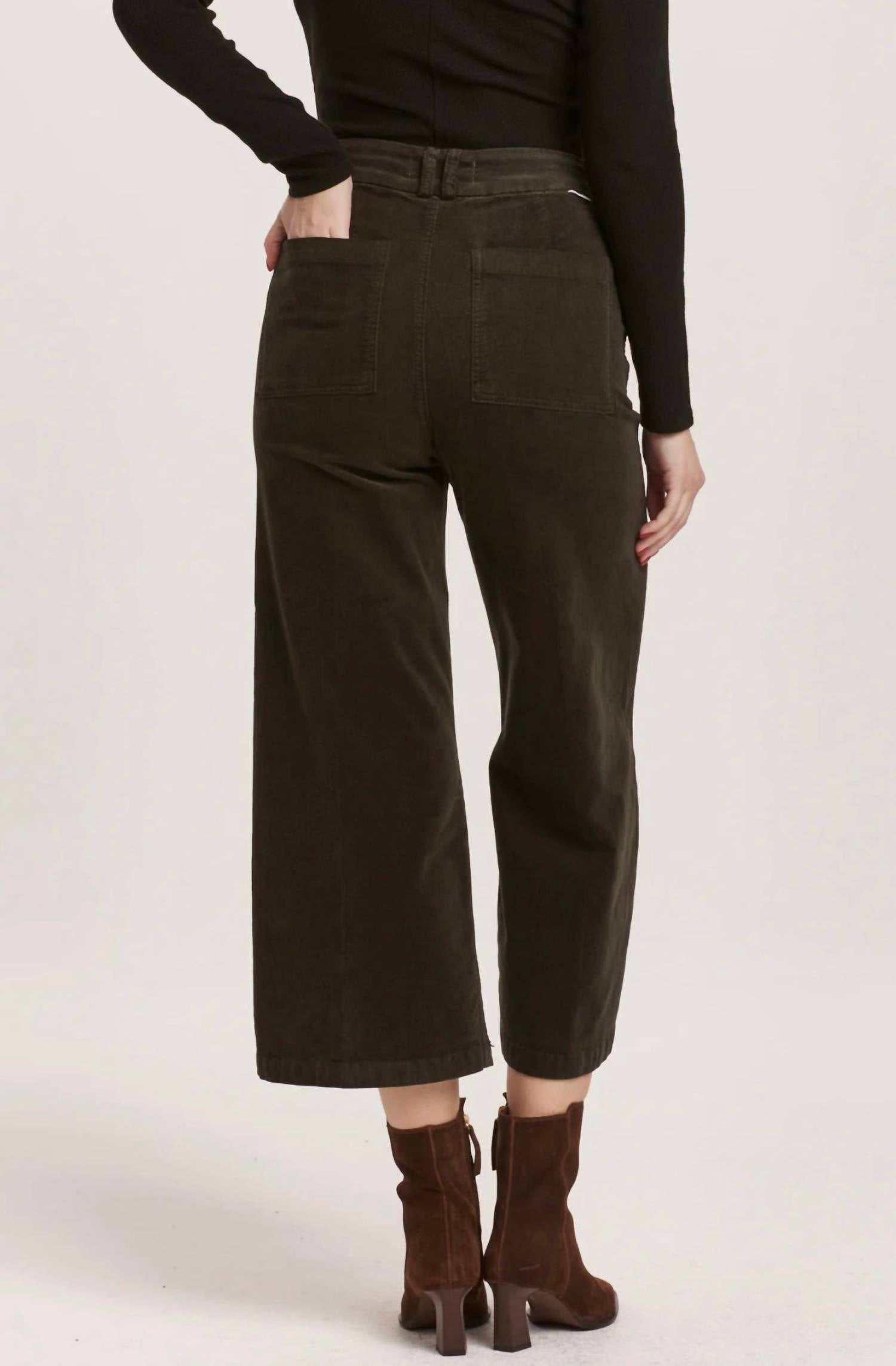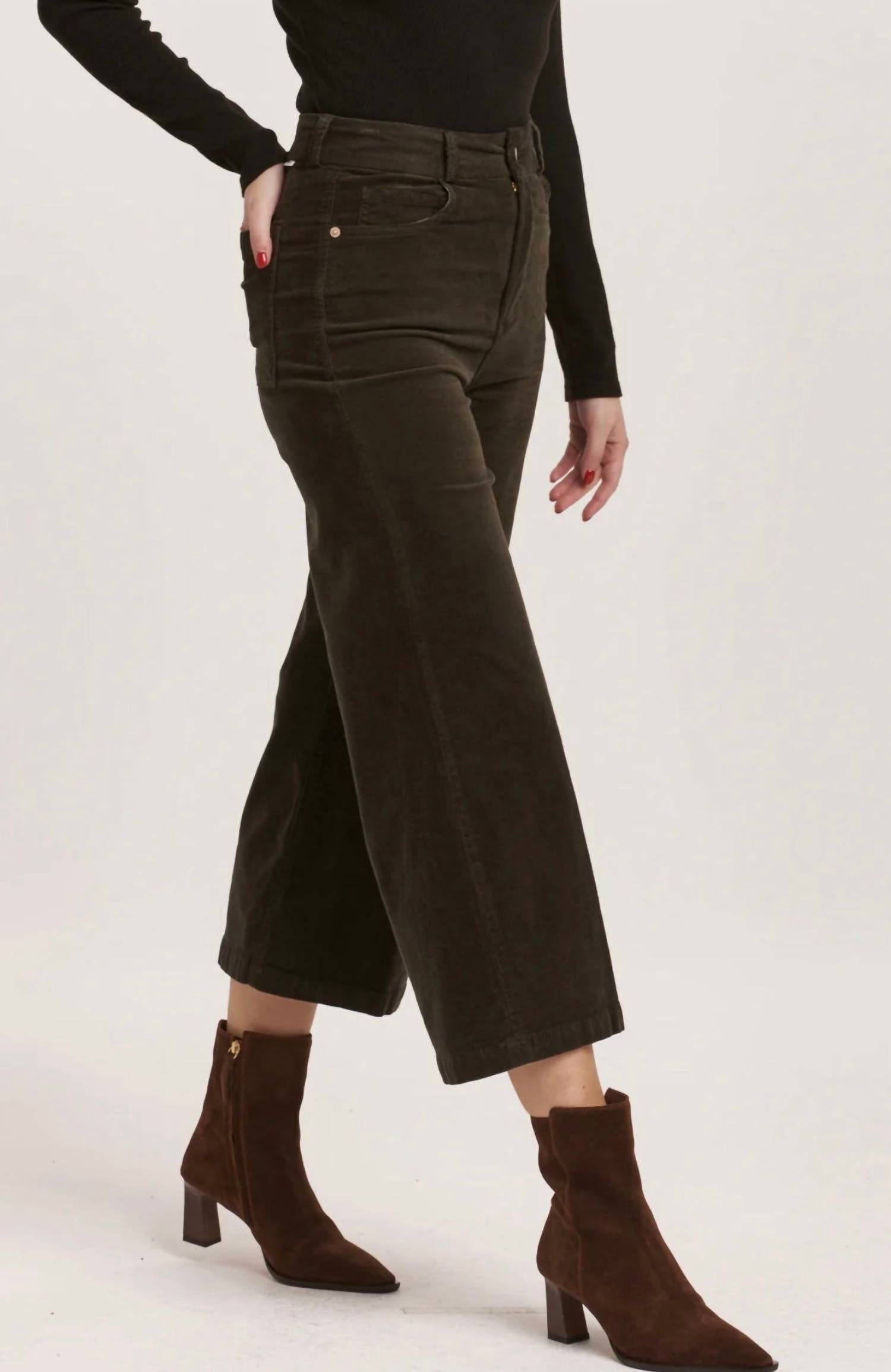 We especially love this cropped jean with a cute pair of slides or sandals. Introducing the Audrey Cropped Corduroy by DEAR JOHN DENIM, designed to elevate your style with its chic Olive Green hue and textured finish. These women’s ankle & cropped pants made from mini-corduroy bring a modern twist to classic comfort with their wide-leg style. Crafted from 98% cotton and 2% spandex for slight stretch, they feature a high rise with a 12 1/2" front rise, 23" leg opening, and 25" inseam in size 27. With a zip fly and button closure, these imported pants can be machine washed cold and tumbled dry low, promising effortless care.