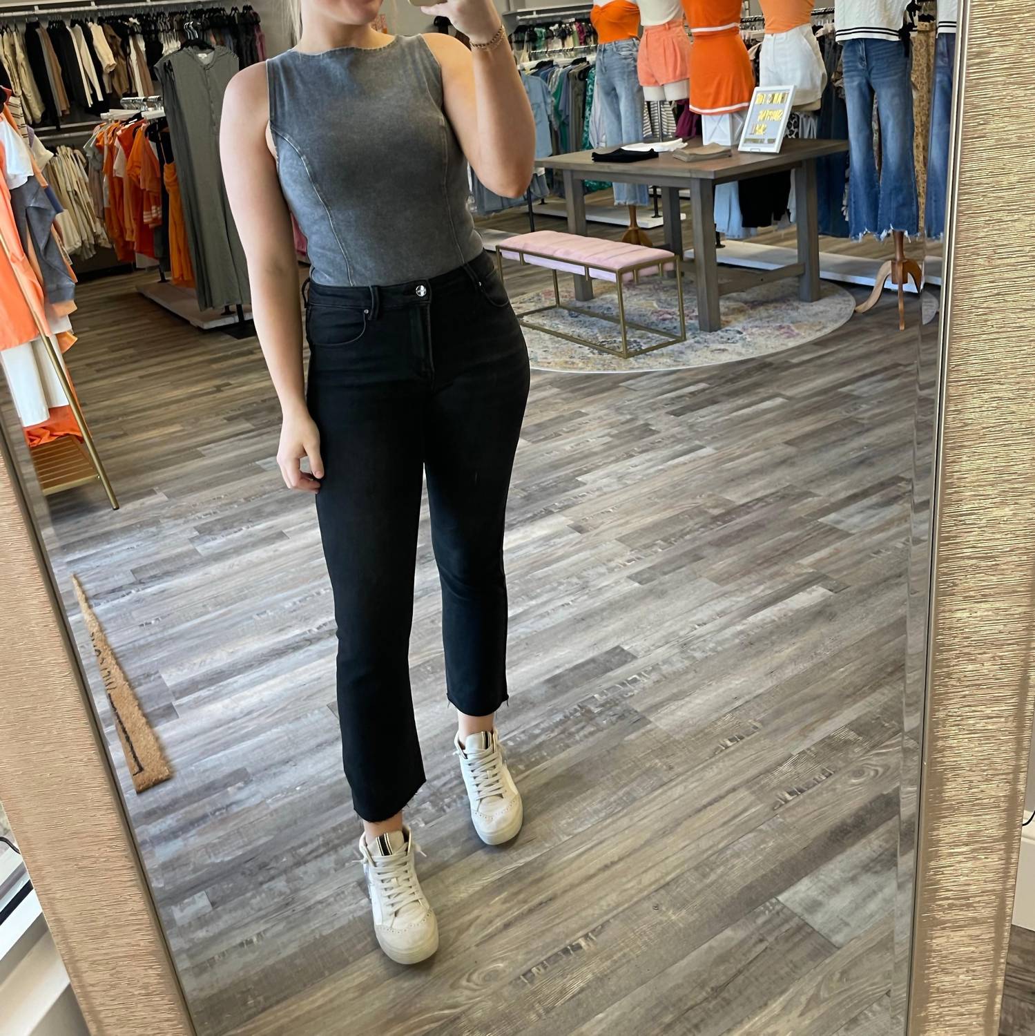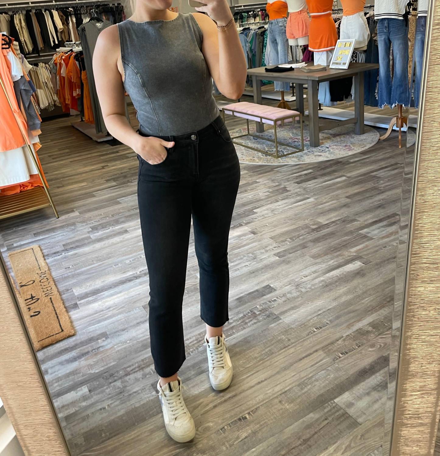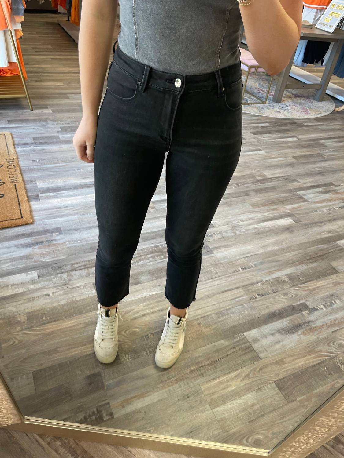 Comfortable and stylish, we love this cropped jean for all of the obvious reasons. Introducing the Mid-rise Straight Cropped Jeans by RISEN, your essential go-to in solid black. With a mid-rise fit and straight legs, these jeans effortlessly achieve a cropped ankle silhouette. The style includes a button closure and practical pockets, while the raw bottom hem allows for personalized adjustment. Care for them easily with machine wash and tumble dry instructions.
