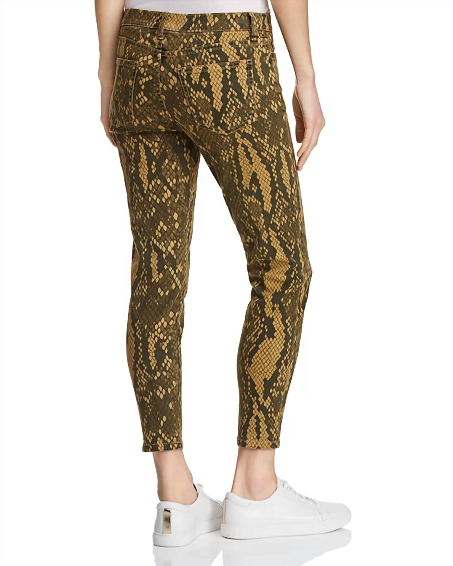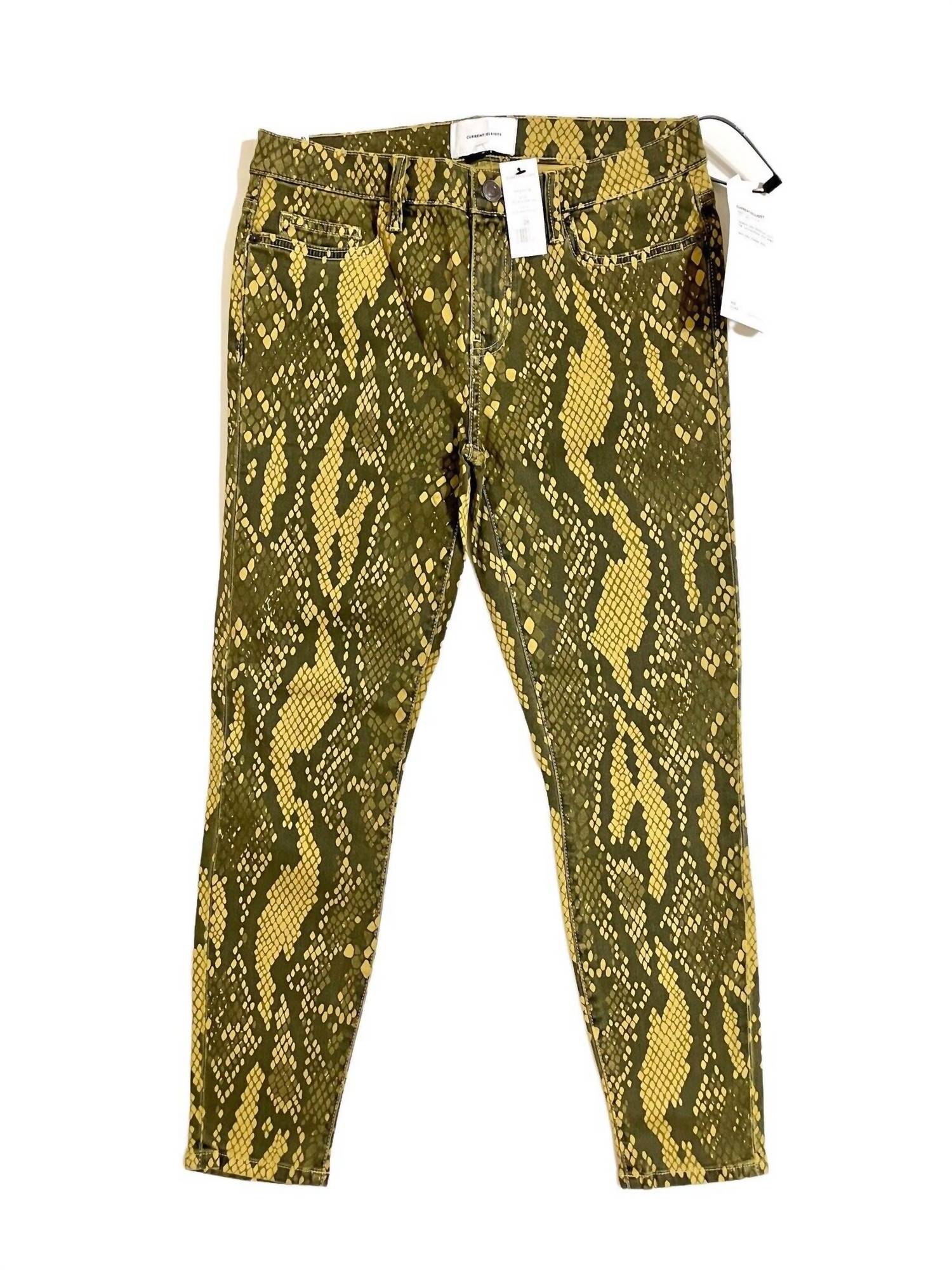 Experience the all-new Stiletto Snake Print Jeans by CURRENT/ELLIOTT, a bold addition to your denim collection with its unique Burmese Python pattern. These ankle & cropped skinnies are crafted from a comfortable cotton blend, incorporating 79% cotton, 20% rayon, and 1% Lycra® spandex, offering the perfect touch of stretch. The jeans feature a classic five-pocket style and a secure zip fly with button closure. Inseam measures 26.5", with a front rise of 9.25" and a back rise of 13", perfectly balancing style with comfort. Hand wash and dry flat to maintain their fierce, true-to-size fit.