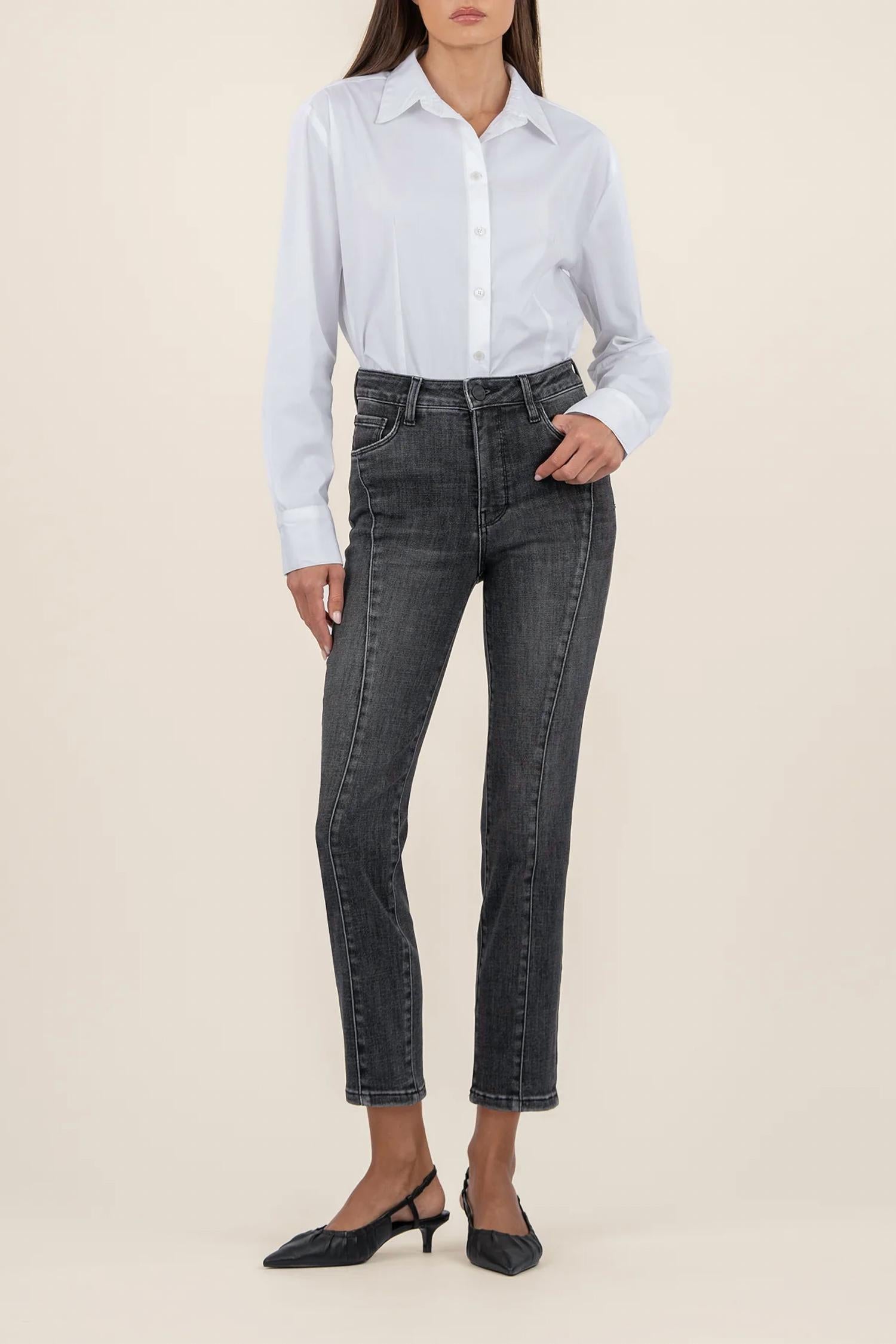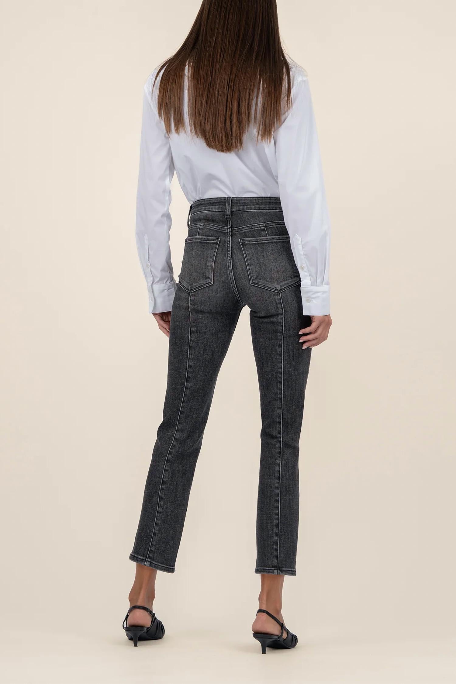 We especially love this cropped jean with a cute pair of slides or sandals. Introducing the Reese High Rise Fab Pants by KUT FROM THE KLOTH, crafted for a sleek, vintage vibe. These ankle & cropped pants are composed of 68% cotton, delivering super soft stretch denim with seam details and fab ab front pockets for a smoothing fit. Featuring a high rise of 10 inches, a 27-inch inseam, and a straight leg with a 13 3/4 inch leg opening, they come in a stylish Create W/ Grey Base Wash color. Closure: Zip closure. Care: Machine wash and tumble dry.