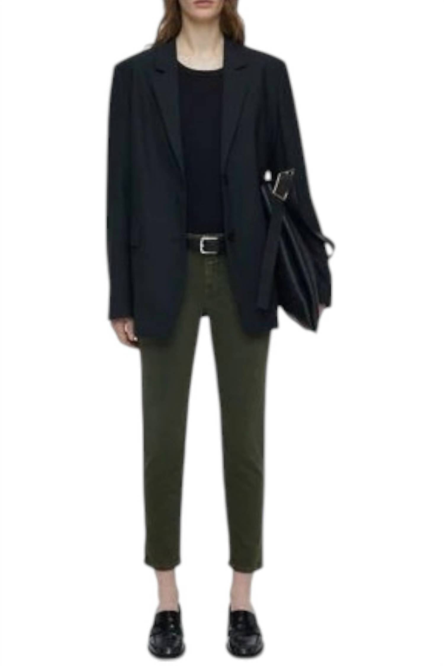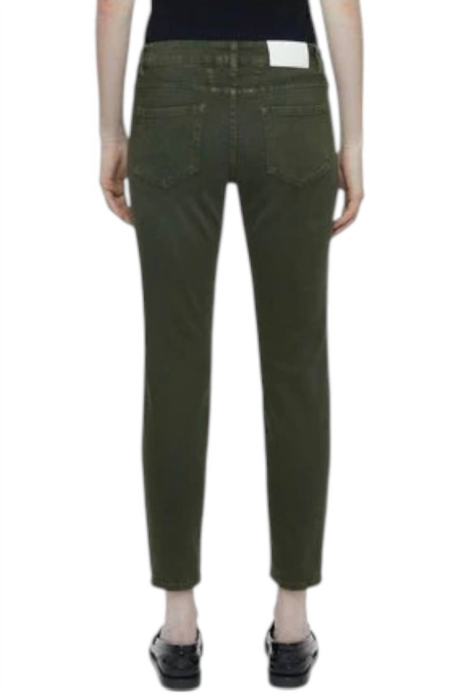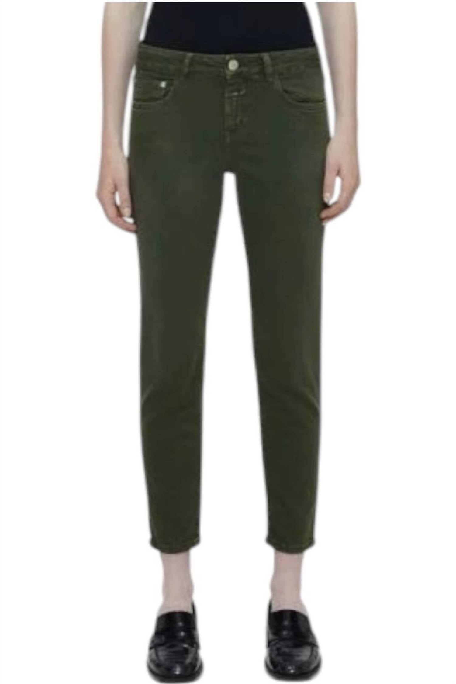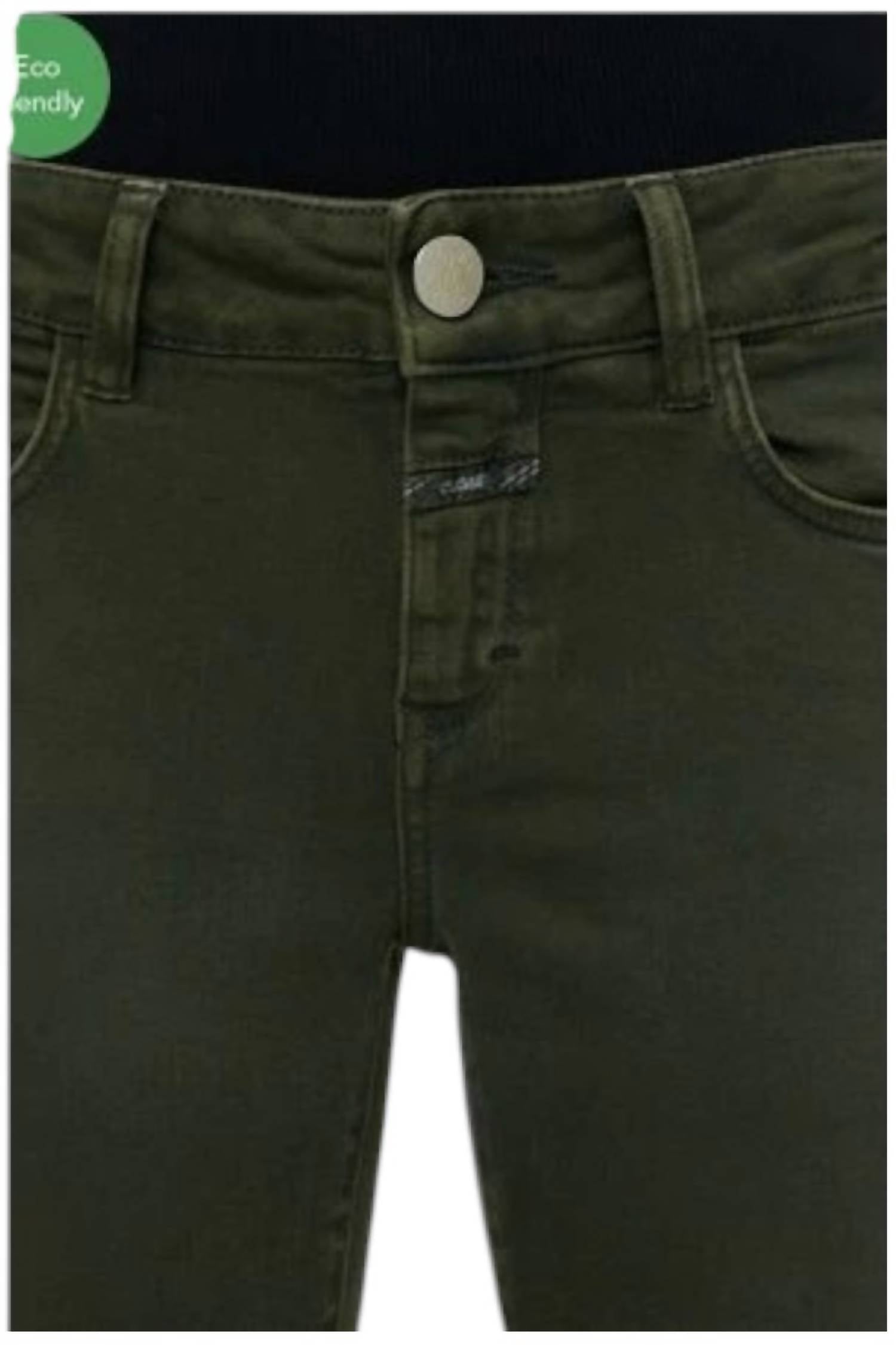 Comfortable and stylish, we love this cropped jean for all of the obvious reasons. Discover the Baker Mid Rise Crop Jean by CLOSED, crafted for a sleek and sustainable wardrobe addition. These slim fit jeans in a striking Weed Green feature an ankle-cropped length and are made from a premium Cotton Blend with 97% organic cotton and 3% Roica(TM)V550 elastane for up to 40% elasticity. The jeans boast a button closure, five-pocket design, and are proudly made in Italy. Care for these eco-friendly jeans with ease - machine wash and tumble dry as needed. Model is 5'11" and wears size 27, with an inner leg length of approximately 27.6 inches.