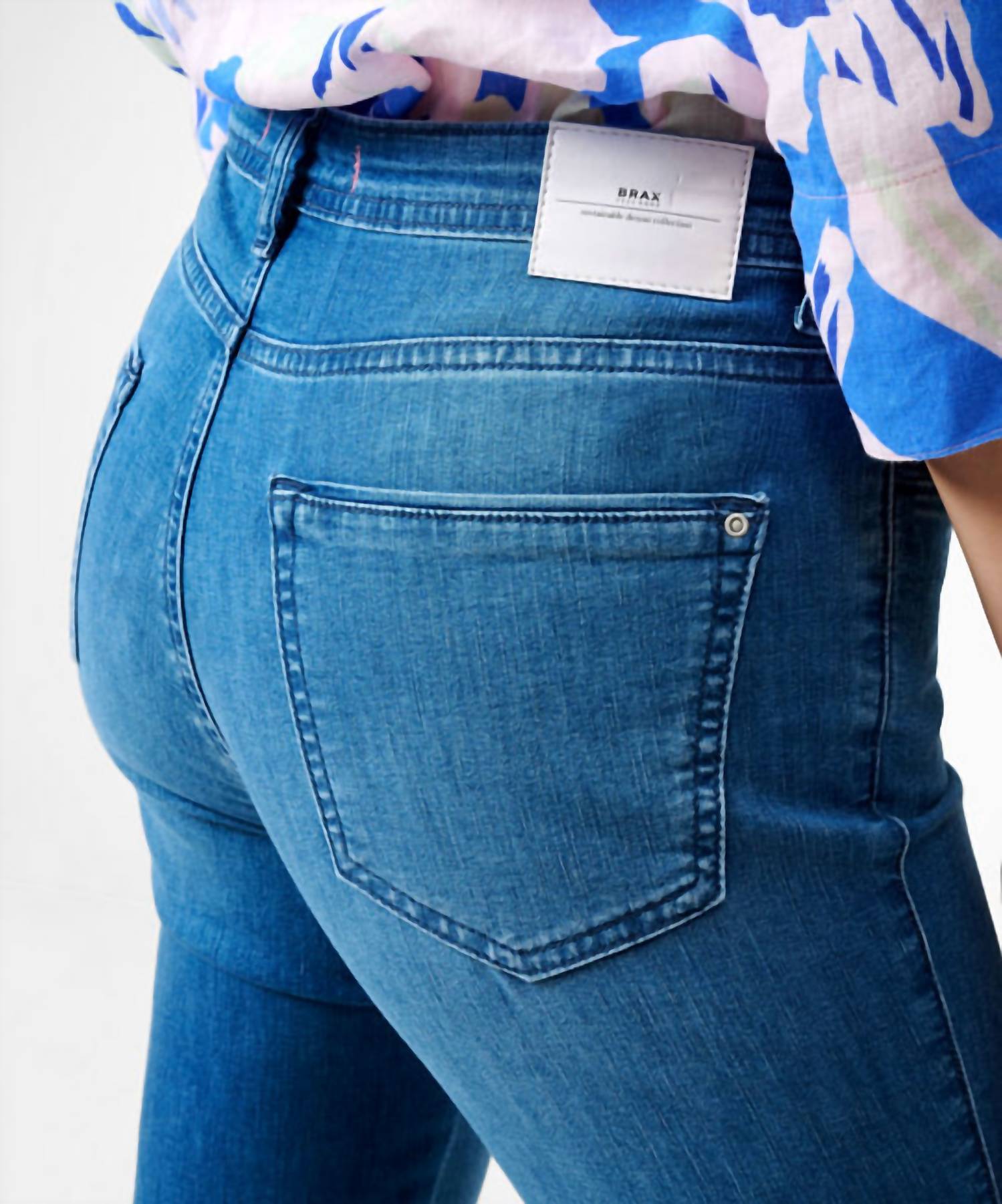We especially love this cropped jean with a cute pair of slides or sandals. Introducing the Brax Mary S Cropped Ultra Light Summer Jeans, perfect for effortlessly chic looks in a light wash and Used Reg Blue color. Crafted for women, these straight-leg jeans offer a relaxed fit and are ideal for workwear and anniversary occasions. They feature a convenient zip closure and functional pockets. Care for them with ease by machine washing and tumble drying.