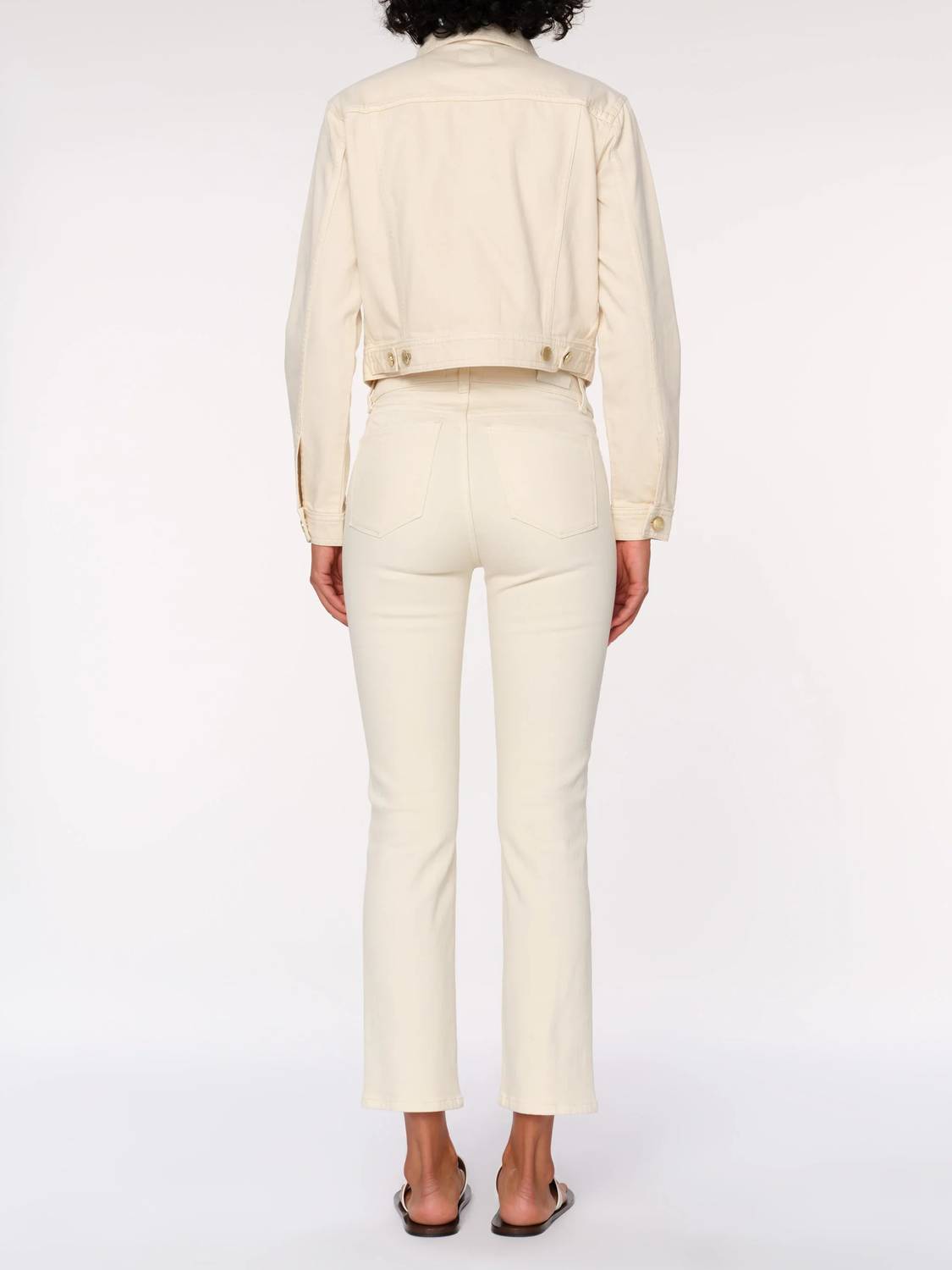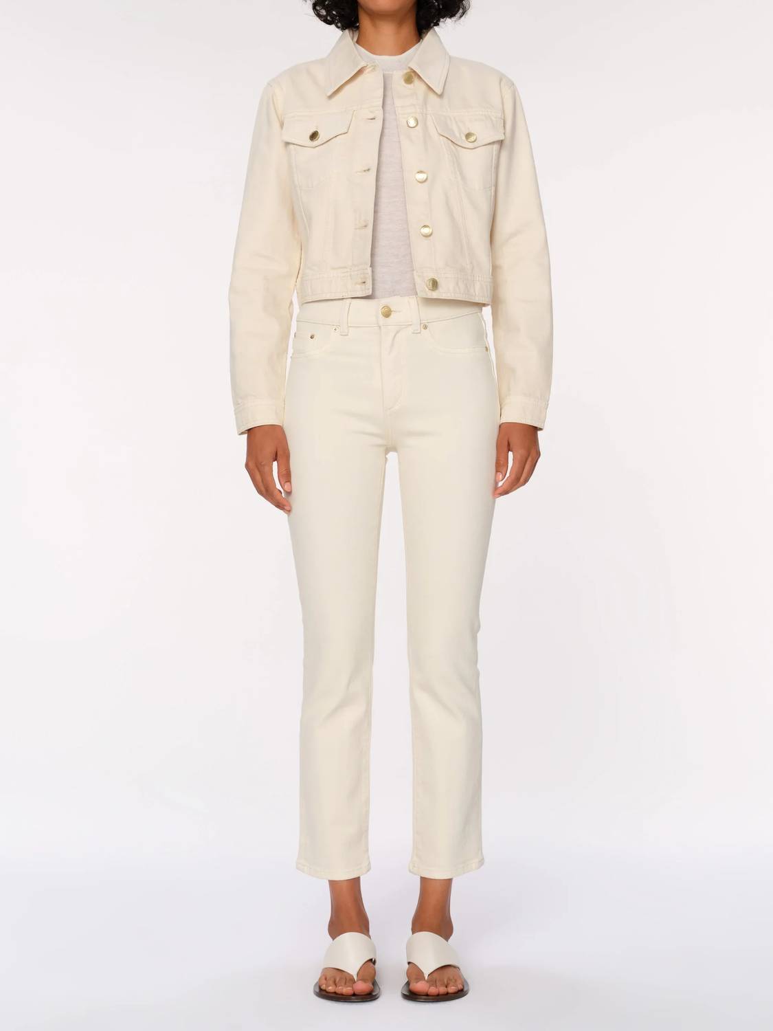 The perfect cropped jean for those transitional seasons. Elevate your wardrobe with the Mara Straight Mid Rise Instasculpt Ankle Jeans in Ecru by DL1961, crafted for a flawless fit. These mid-rise, straight leg jeans feature Instasculpt™ technology that smooths and contours your body along with eye-catching gold hardware. Made from a blend of 93% Cotton, 6% Elasterell-p, and 1% Lycra, they provide both comfort and style. With a convenient zip closure, these jeans are perfect for spring travels, and require machine washing and line drying for easy maintenance.