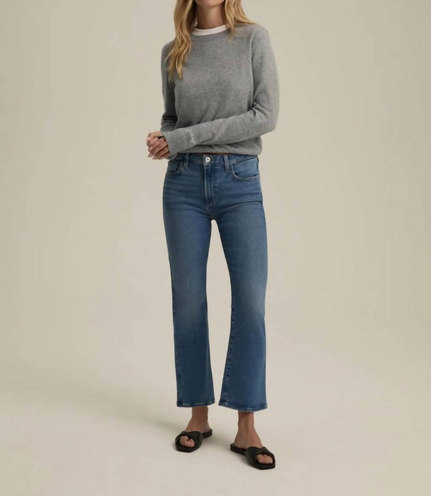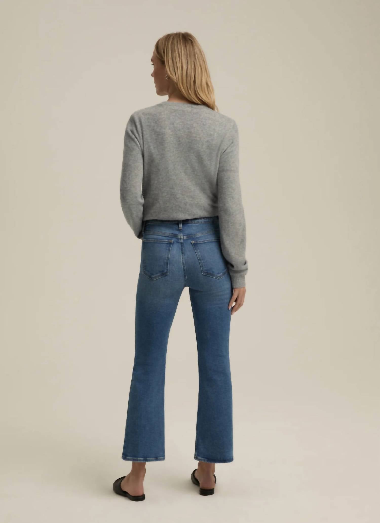 The perfect cropped jean for those transitional seasons. Step into style with the Erin Crop Boot Jean by Favorite Daughter, a must-have for any wardrobe. This medium wash denim features a high-rise 10.5” fit and a 26.5” inseam, perfect for a sleek Y2K look. Crafted from a blend of cotton, modal, polyester, and elastane, these jeans ensure comfort with their high-stretch quality while the kick-flare bootcut leg adds a chic touch. Closure: Zip. Care: Machine wash, tumble dry.