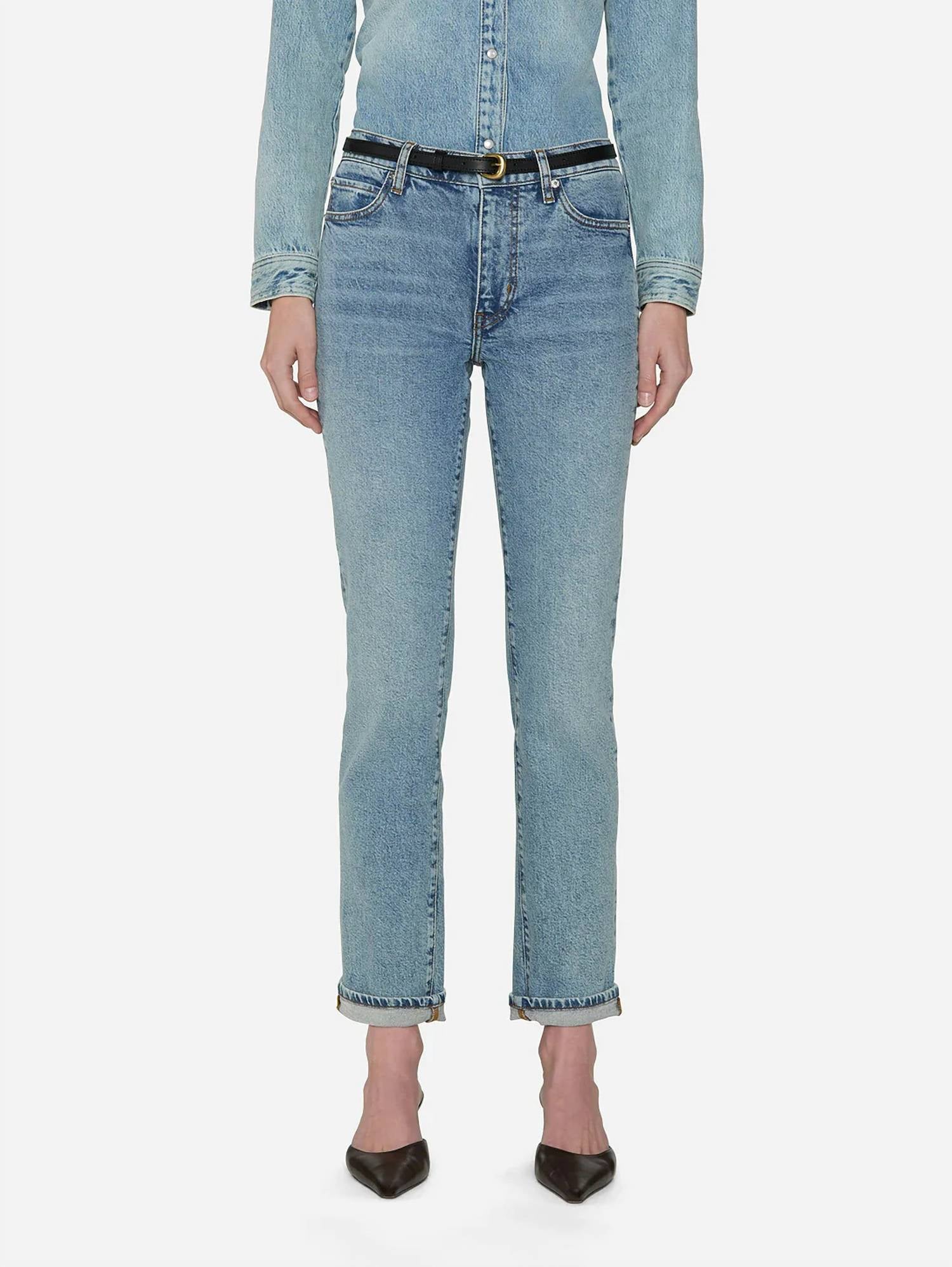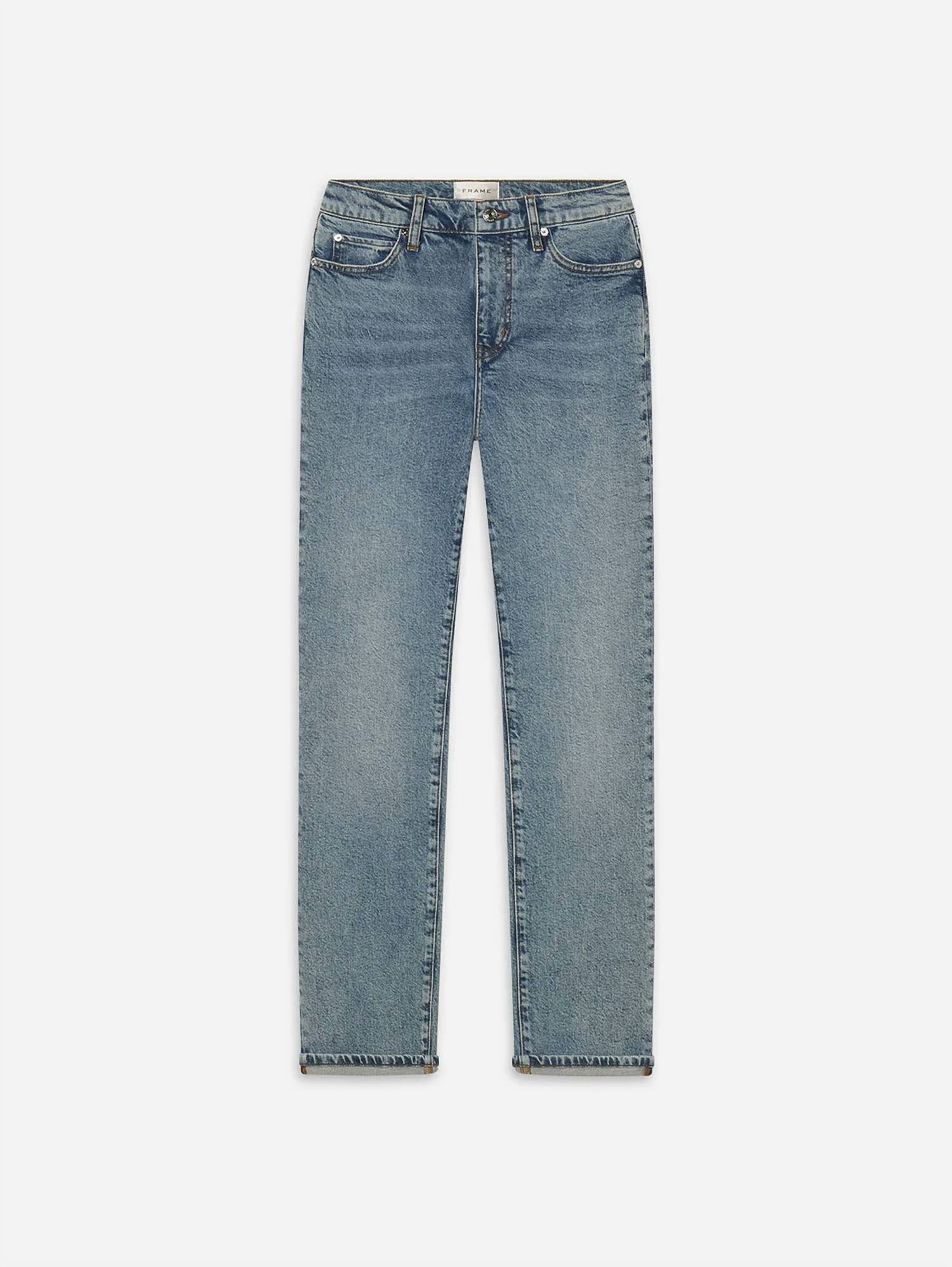 Comfortable and stylish, we love this cropped jean for all of the obvious reasons. Meet the Borrowed Mid-rise Ankle Jeans by FRAME, a modern twist on the classic boyfriend jean. These jeans boast a zip closure and feature a flattering mid-rise with a 10.25" front rise, straight leg, and 28" inseam. Crafted from 99% cotton and 1% elastane in a structured stretch denim, they offer a light wash with a touch of vintage style, complete with fading and whiskering for added character. Made for comfort and style, they're machine wash-friendly and perfect for spring travel.