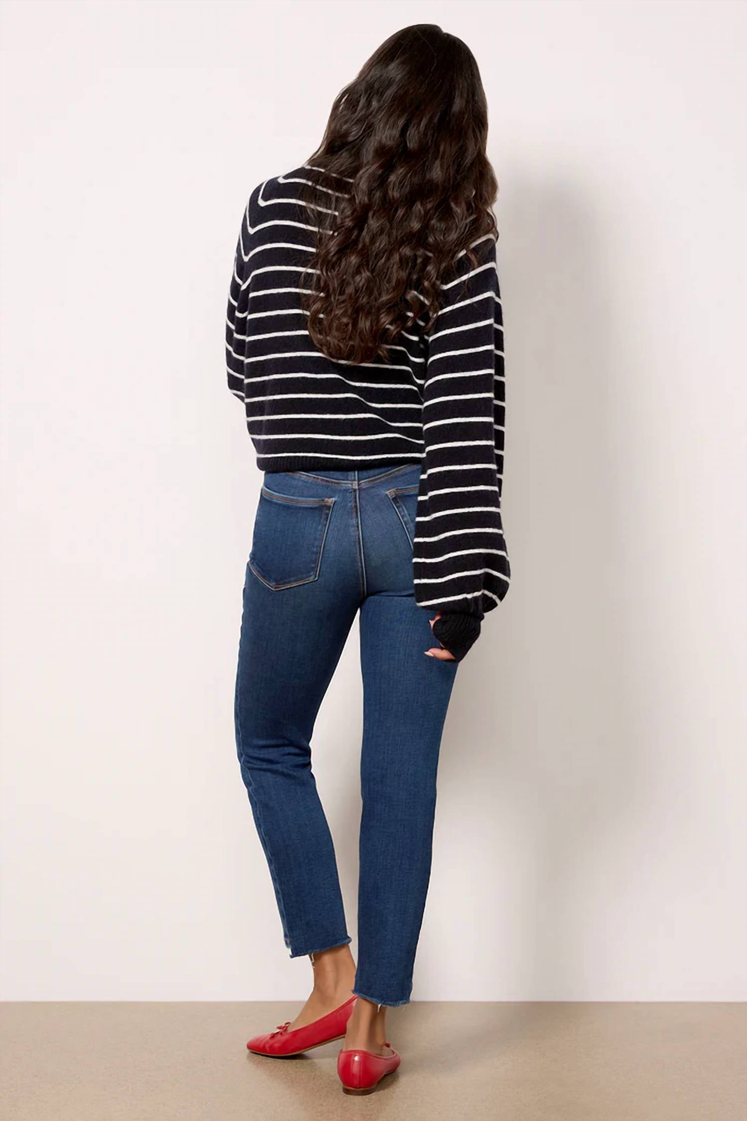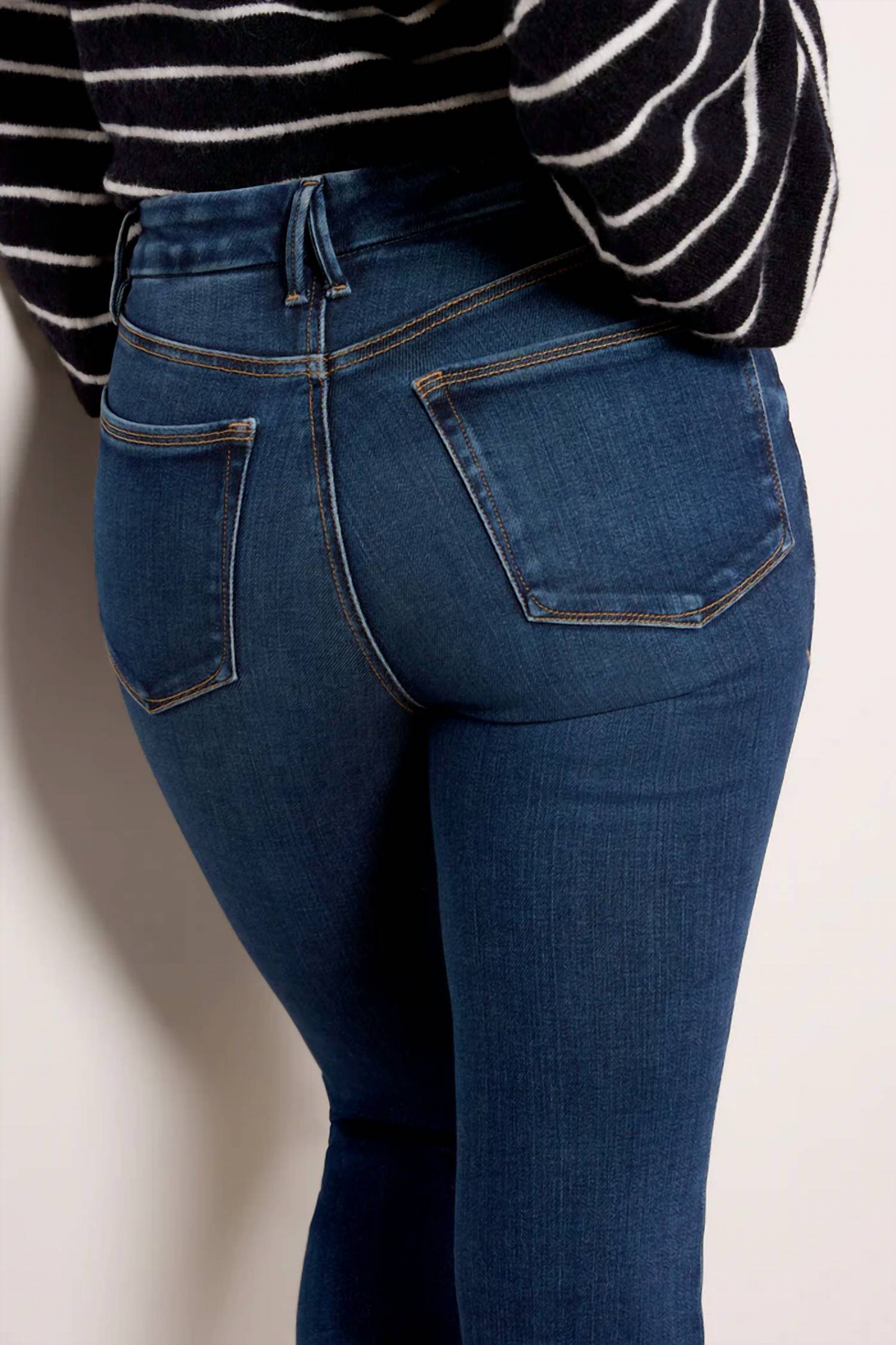The perfect cropped jean for those transitional seasons. Introducing the Good Classic Slim Jean by Good American, the epitome of versatility and modern style in a solid blue hue. These women’s ankle-length jeans feature a slim fit and high-rise waist, with a straight leg design enhanced by stylish step hems. Crafted from a premium stretch denim composition of 93% Cotton, 5% Polyester, and 2% Lycra, these jeans offer both comfort and style. Originating from PY, they close with a zip closure and feature distressing at the pocket, with care instructions recommending a machine wash cold and line dry to maintain their medium wash finish. Inseam: 28". Perfect for fall travel occasions.
