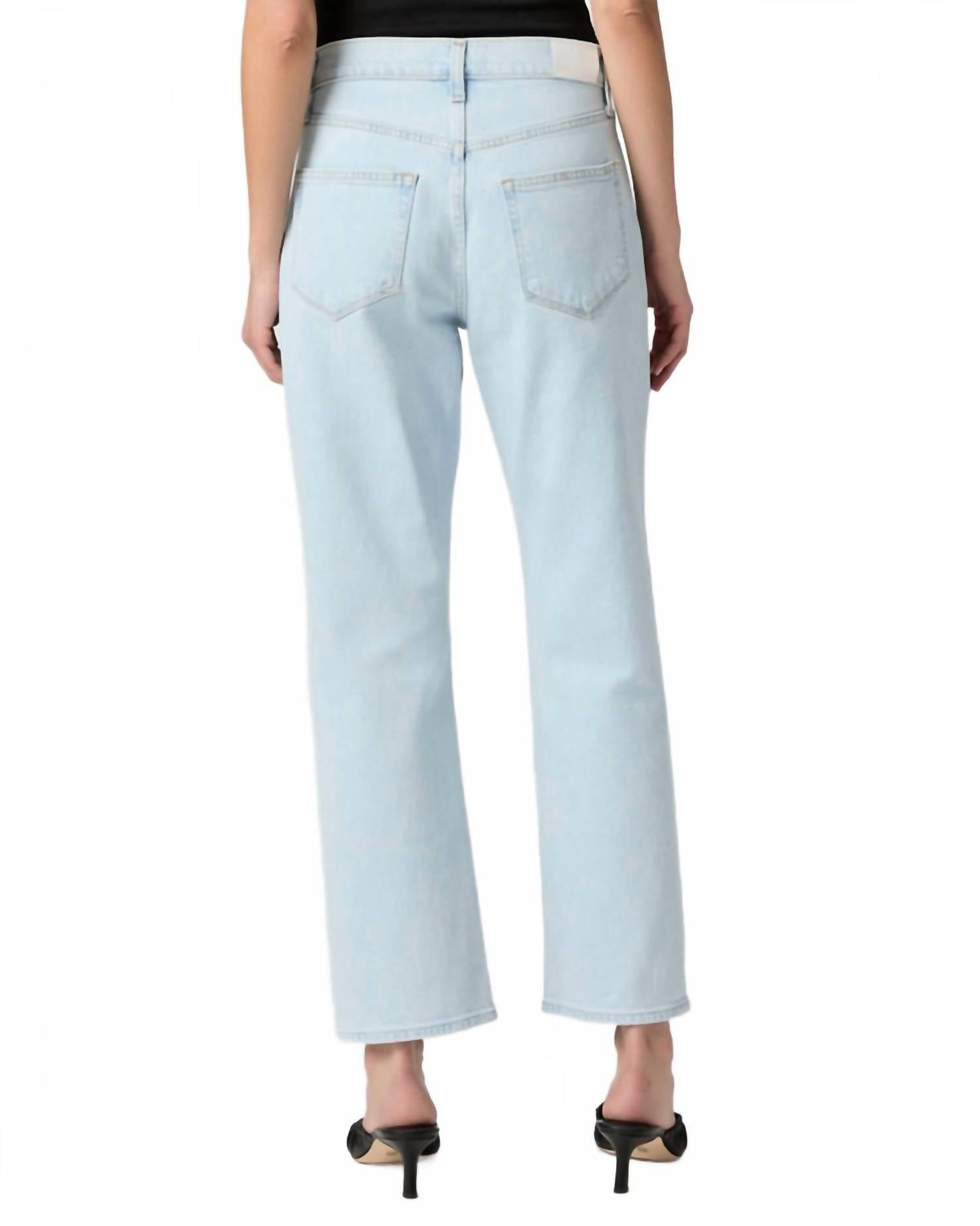 Embrace timeless style with the Paige Morgan Ankle Jeans in Windward, crafted from a blend of 98% Cotton and 2% Elastane for a comfortable fit. These ankle-length jeans feature a straight leg style with a mid-rise waist and boast a zip front closure along with a classic five-pocket design. With a rise of 10.5 inches, an inseam of 27 inches, and a 16.25-inch leg opening, they're tailored for a relaxed fit that's perfect for travel and spring occasions. The jeans are easy to care for with machine wash instructions, offering a light denim wash that complements any outfit.
