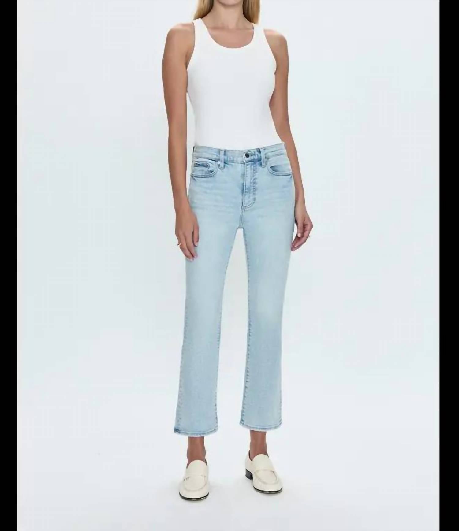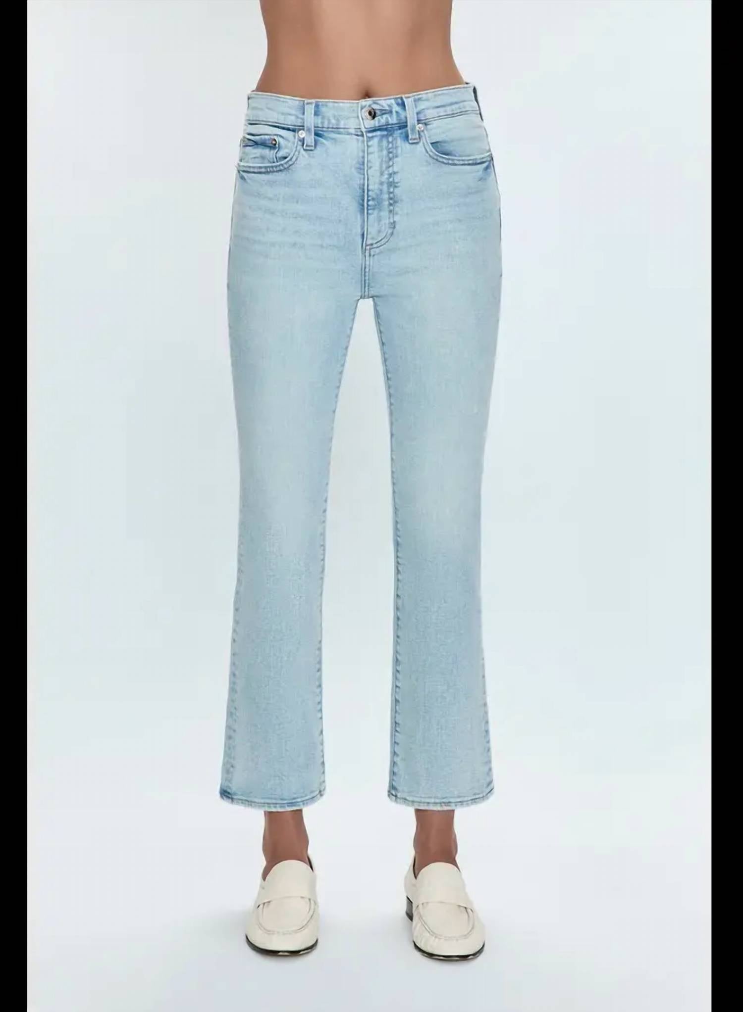 Comfortable and stylish, we love this cropped jean for all of the obvious reasons. Jean from the Pistola collection High rise waist With a boot cut leg silhouette Cropped ankle hem Crafted from best selling comfort-stretch denim Inseam: 27" Composition: 94% Cotton, 5% Polyester, 1% Elastane