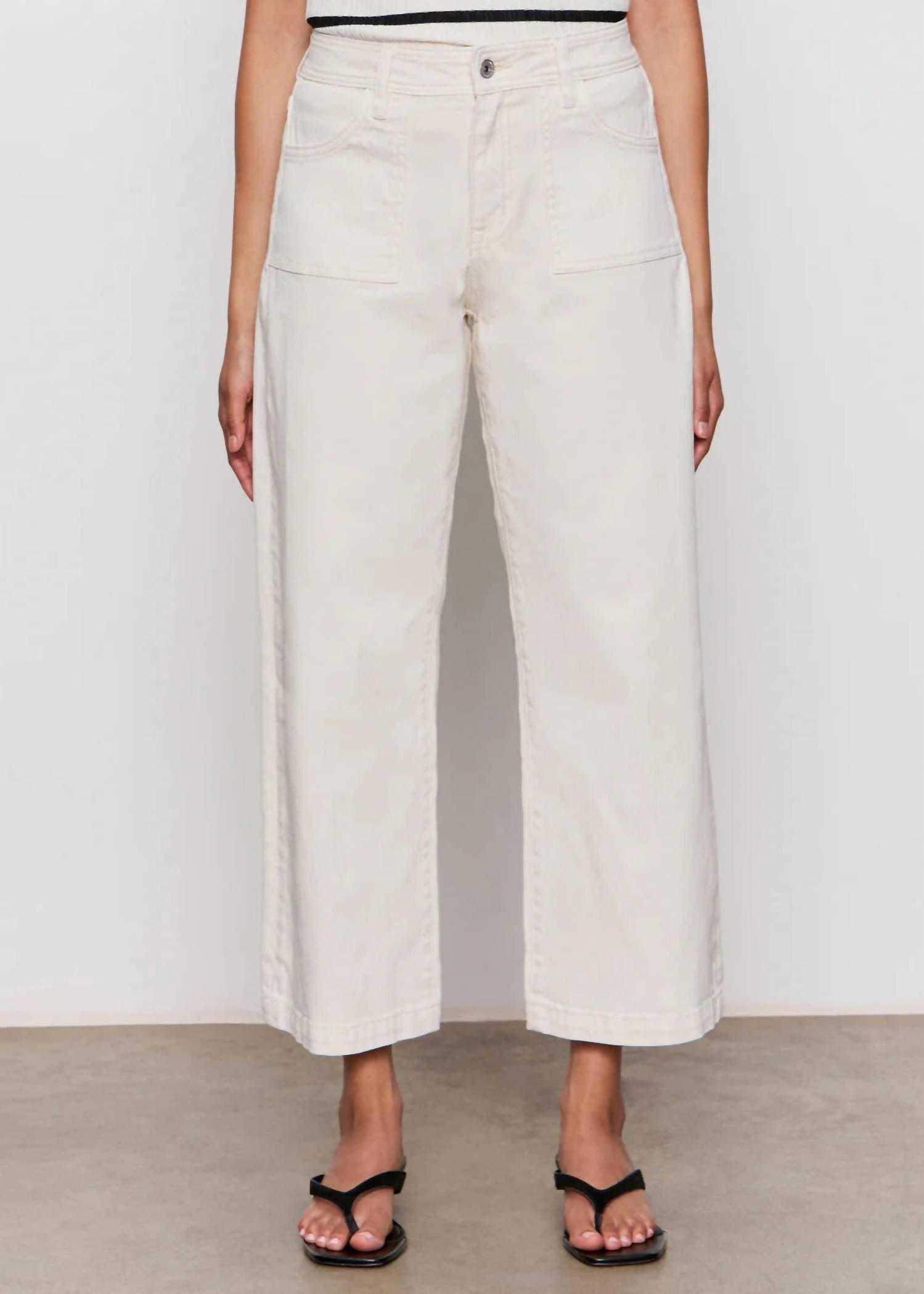 We especially love this cropped jean with a cute pair of slides or sandals. Elevate your seasonal wardrobe with the League Crop Jeans by Sanctuary Clothing, crafted for a relaxed fit in a light oat color. These wide-leg jeans are made from a comfortable cotton blend and feature a mid-rise with a standard fit, perfect for minimalist style lovers. They come with a button closure and classic five-pocket styling, including two front and two back pockets. For easy care, simply machine wash and tumble dry.