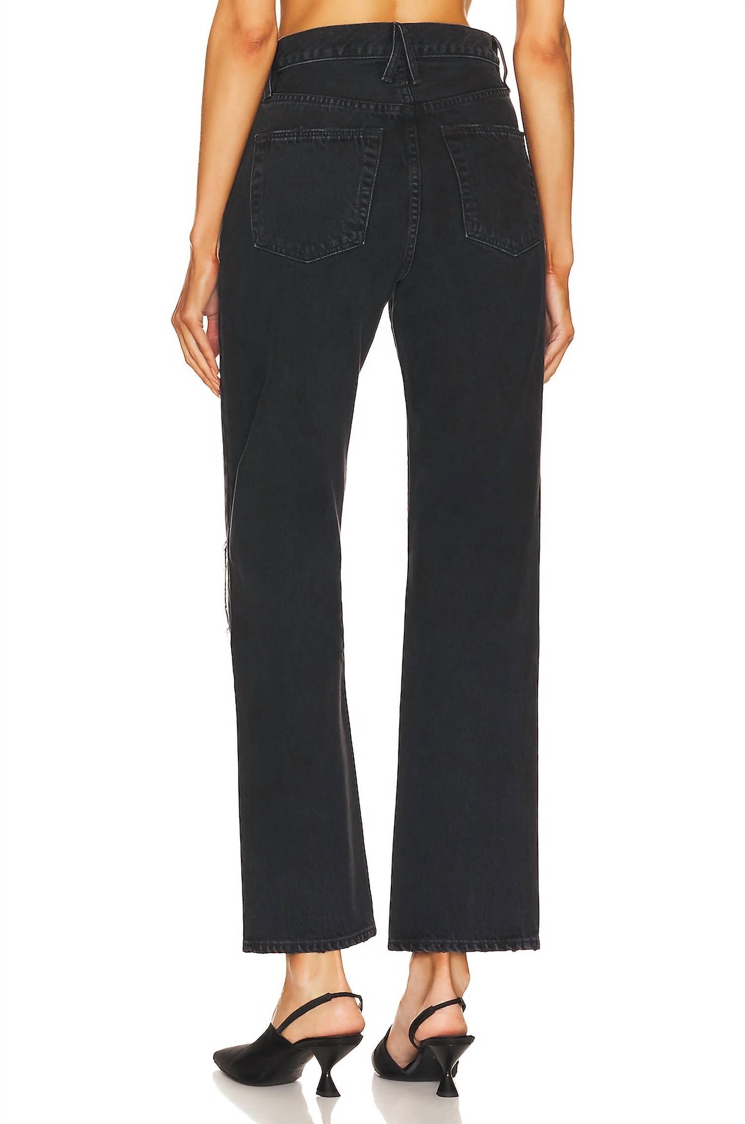 Comfortable and stylish, we love this cropped jean for all of the obvious reasons. Complete your evening ensemble with the SLVRLAKE London Crop Jeans in Long Gone, a vintage-inspired staple crafted for the fall season. These high-rise jeans feature a cropped length and a straight leg style, offering a chic silhouette. Made in the USA from 100% structured denim cotton, they include a zip fly with button closure and classic 5-pocket styling, complemented by intentionally distressed areas for added character. Care is simple with machine wash instructions, making these jeans a practical yet stylish choice for any occasion. Inseam: 30", Rise: 10.5".