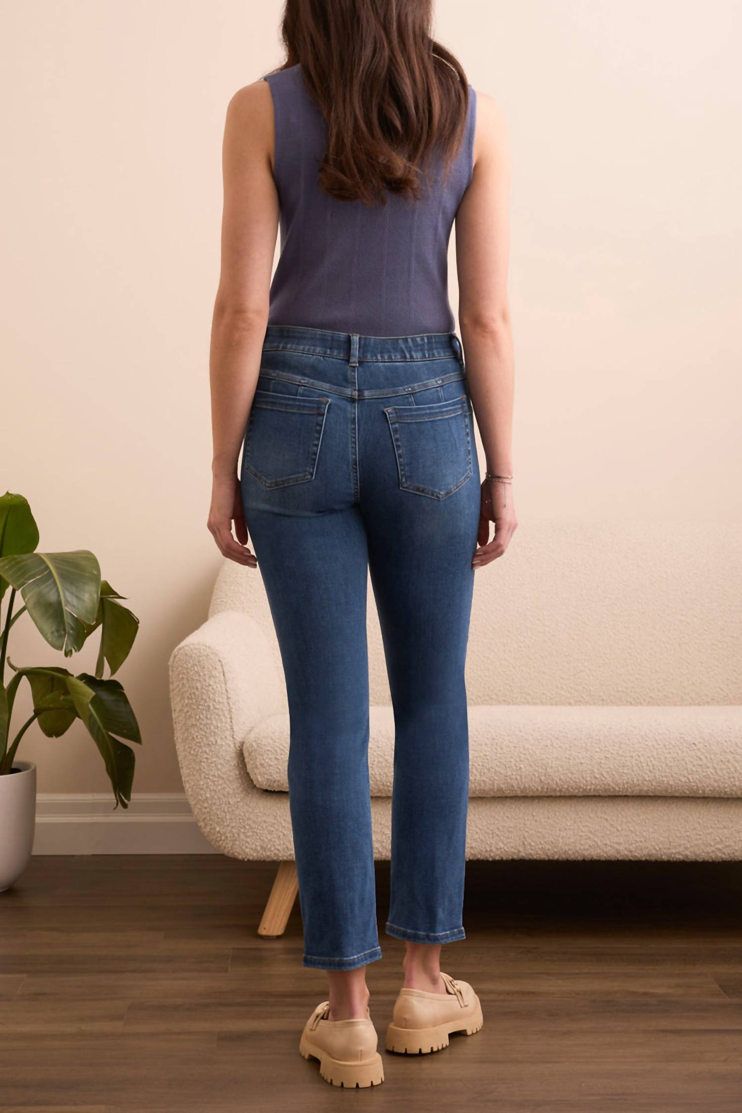 Comfortable and stylish, we love this cropped jean for all of the obvious reasons. Elevate your style with the TRIBAL Sophia Pull-On Slim Crop Jeans, expertly crafted from premium denim in a sophisticated faded blue. These women's jeans offer a flattering high-rise waist and a sleek skinny leg silhouette, making them an essential choice for a holiday party or spring outing. Designed with a convenient pull-on closure, they combine effortless style with optimal comfort. The medium wash and solid pattern enhance their versatile appeal, while functional pockets add practicality to this wardrobe staple.