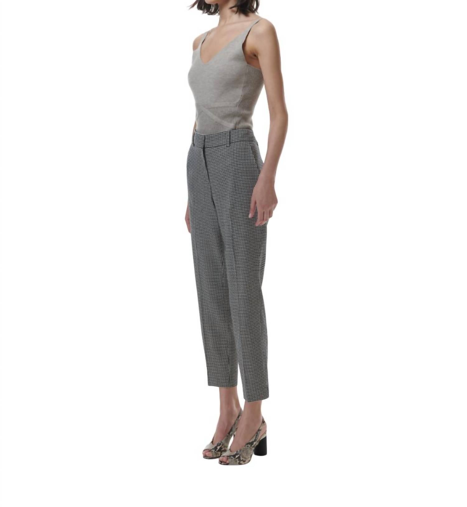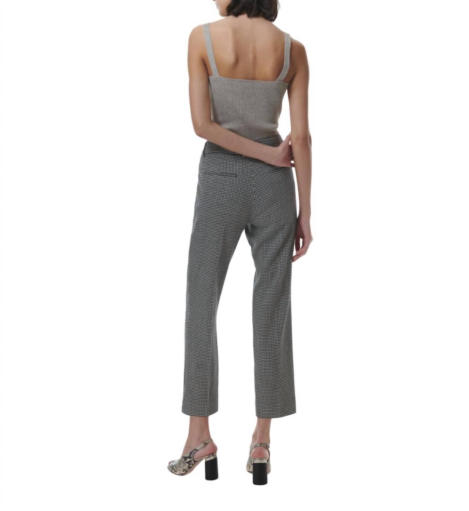Tailored pants feature a classic and timeless hounds tooth print. True to size. Model is 5'9" wearing a size 4. Dry clean only. 63% Polyester, 34% Viscose, 3% Elastane.