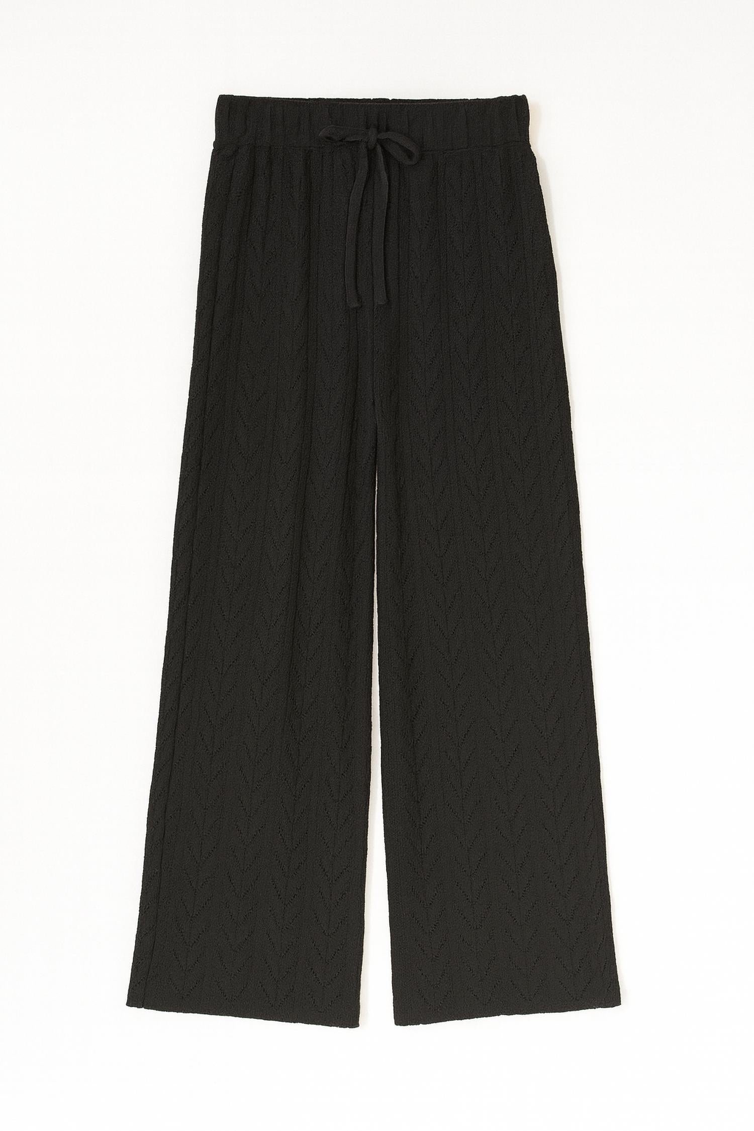 Stay on-trend and showcase your impeccable taste with these adaptable and stylish cropped pants. The perfect length to wear with your favorite mules. You'll love the fit! Introducing the Sweatersoft Pants by Splendid, the perfect blend of comfort and style in a sleek black hue. These mid-rise, wide-leg pants feature a relaxed fit and are crafted from a Viscose blend (47% Viscose, 33% Polyester, 19% Nylon, 1% Elastane) with a chevron pointelle pattern for added texture. Designed for a minimalist look, they offer easy pull-on styling with an adjustable drawstring waist. Proudly imported and perfect for any Thanksgiving vacation, these pants should be hand washed cold for best care.