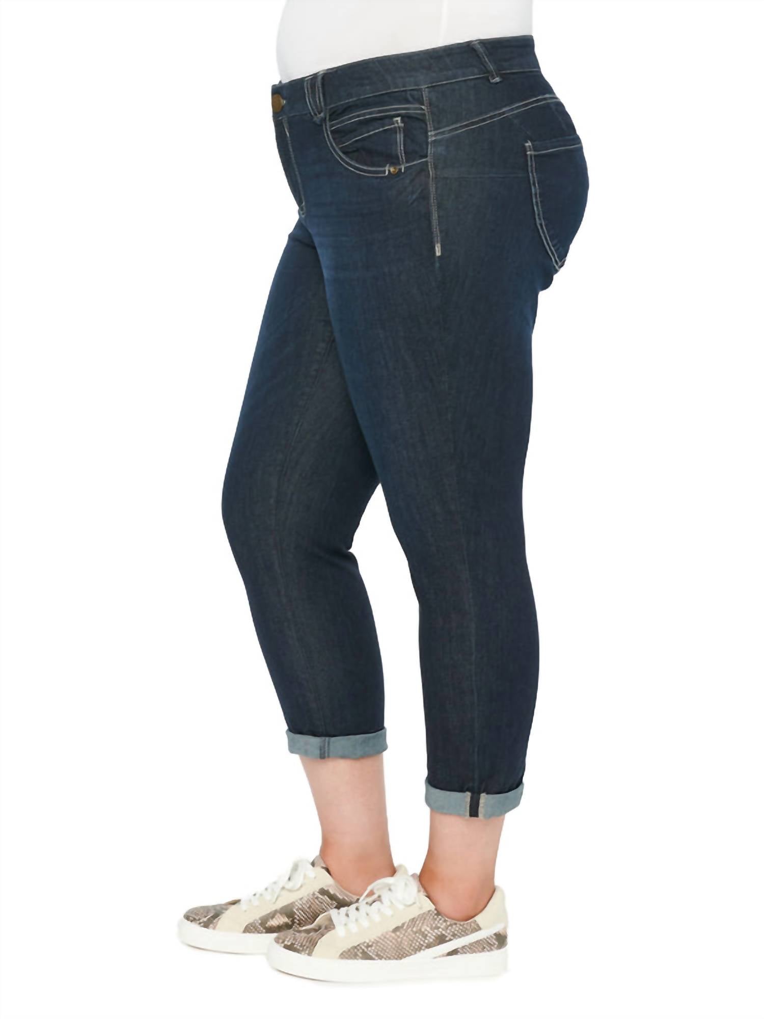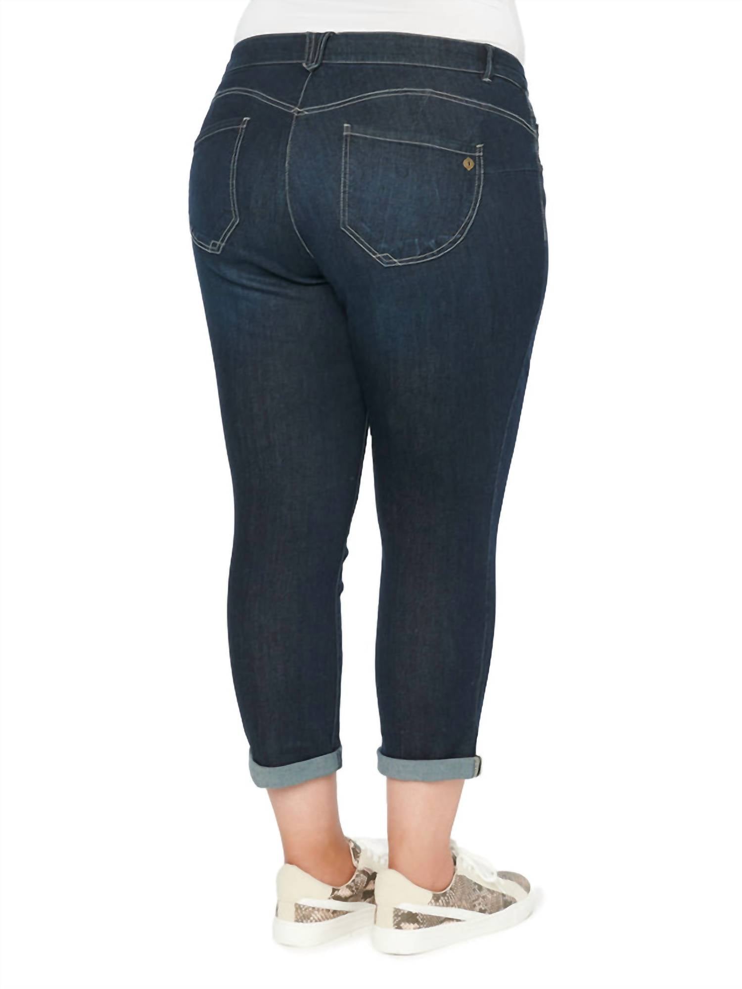 Upgrade your wardrobe with these cropped pants, designed to merge sophistication and wearability. The tailored fit ensures ultimate comfort during long days or nights out. Indigo skinny leg fit. Plus-size pair. Features practical front and back pockets. Ensuring both style and functionality. With a convenient button closure. Machine washable, making care a breeze. Enjoy the signature comfort and sleek look.